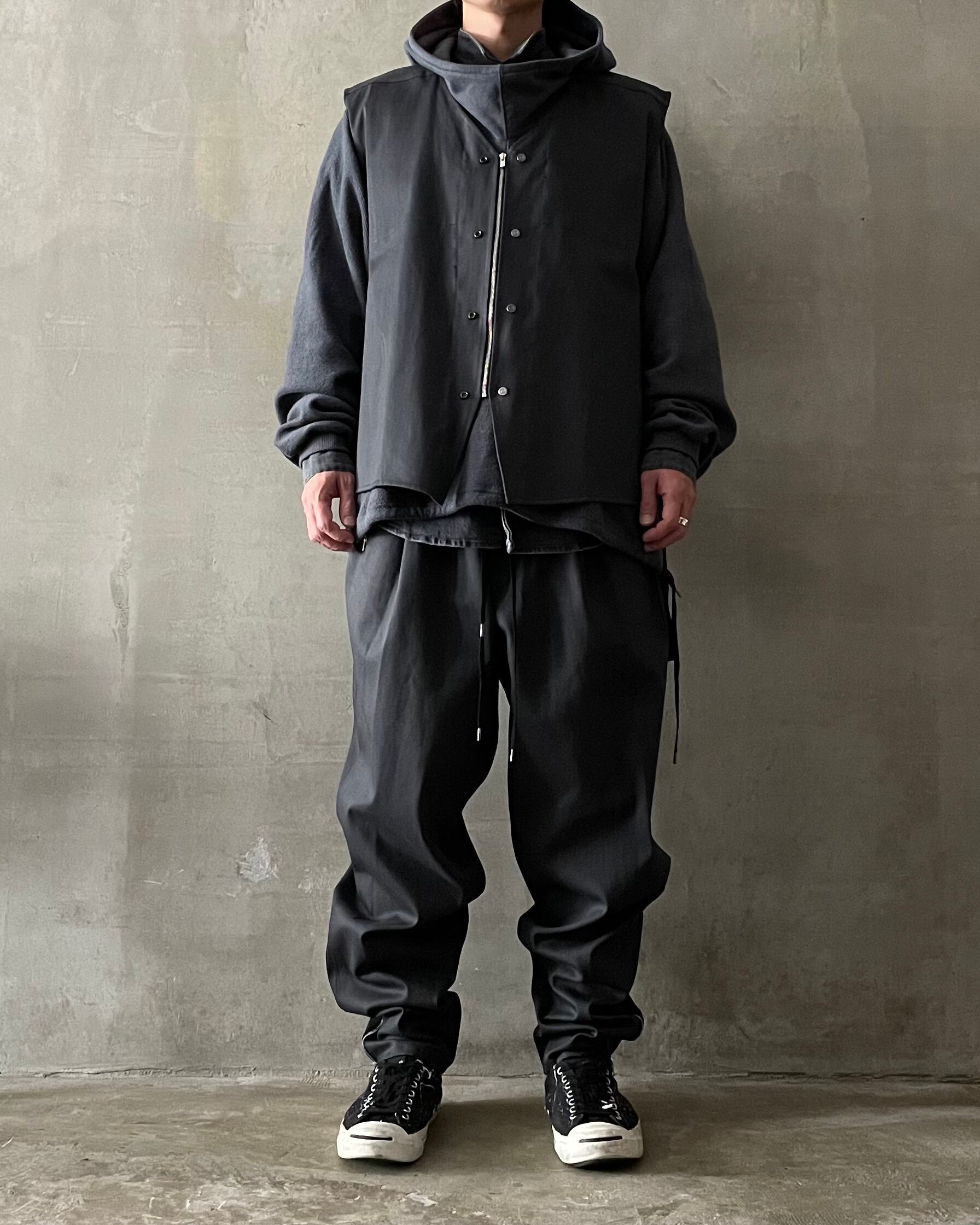 セットアップ : T/f Lv3 stretch light denim side zip baggy tapered pants - imperfection black