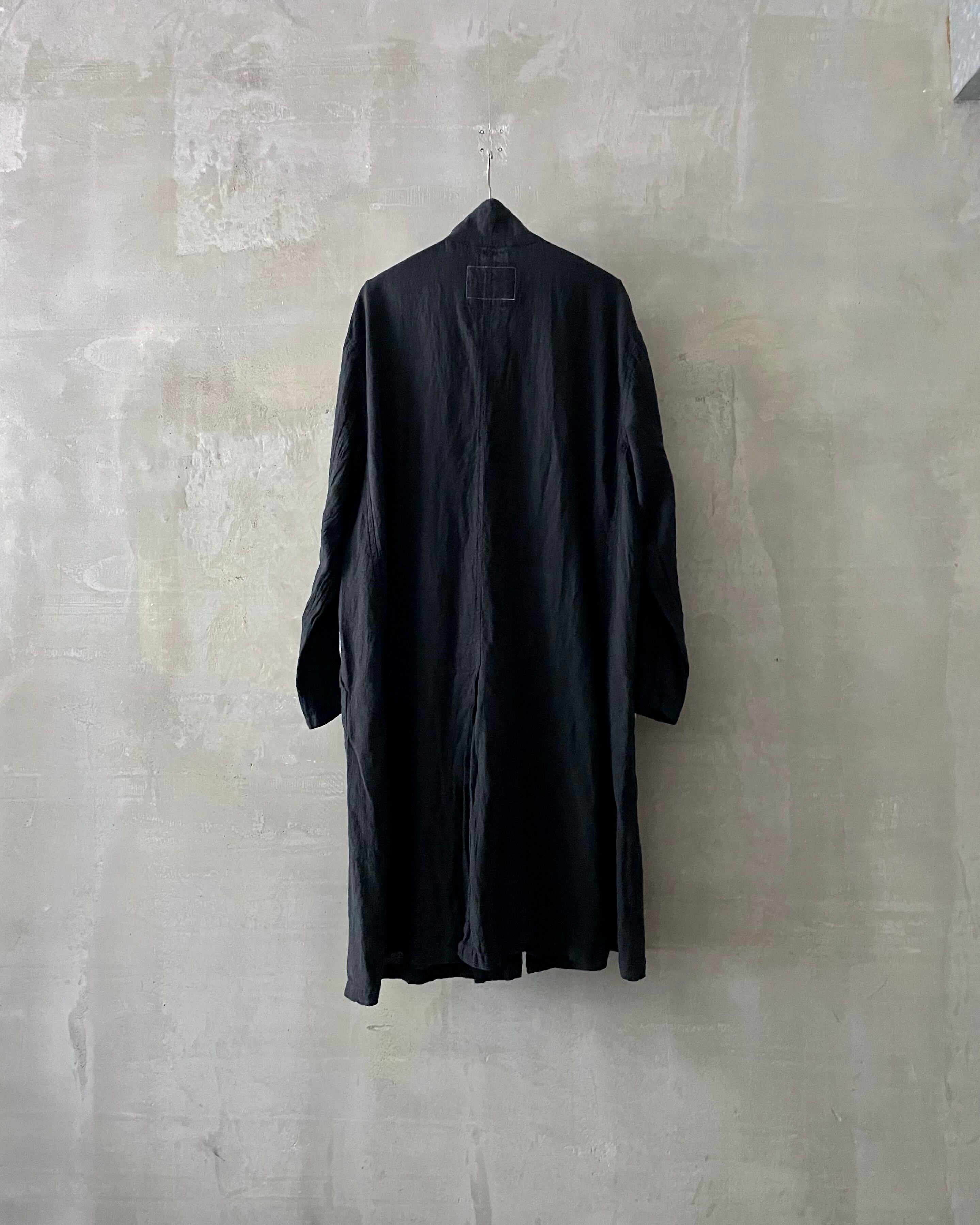 TrAnsference metallic pockets light cotton linen work coat - complete black garment dyed