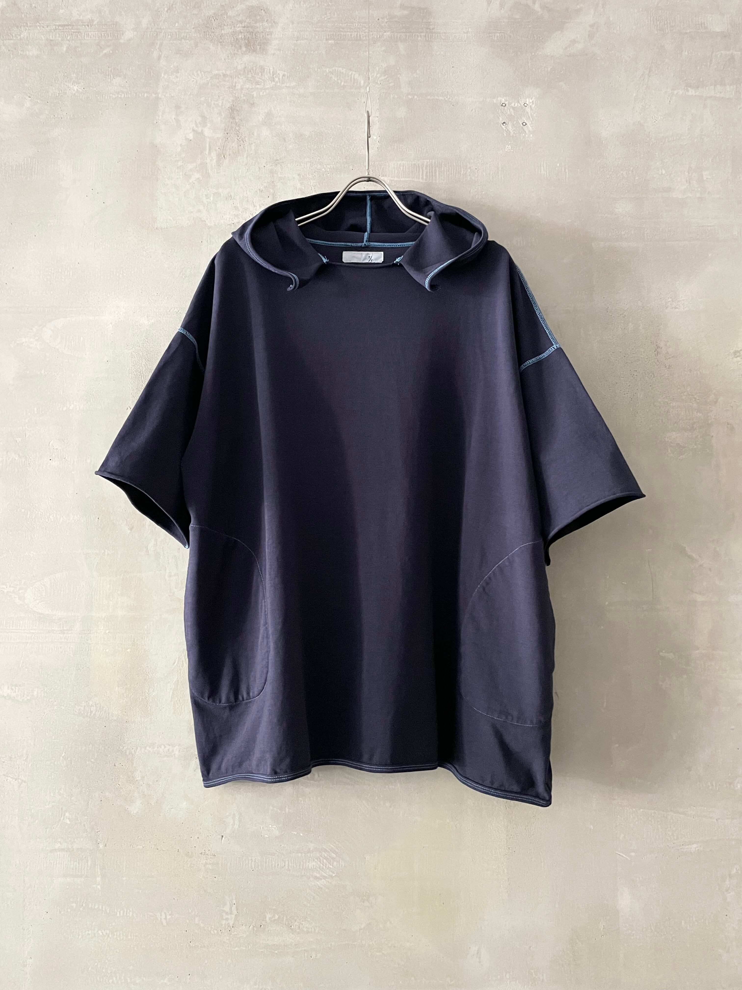 T/f Lv3 high density jersey half sleeve hoodie - deep sea garment dyed