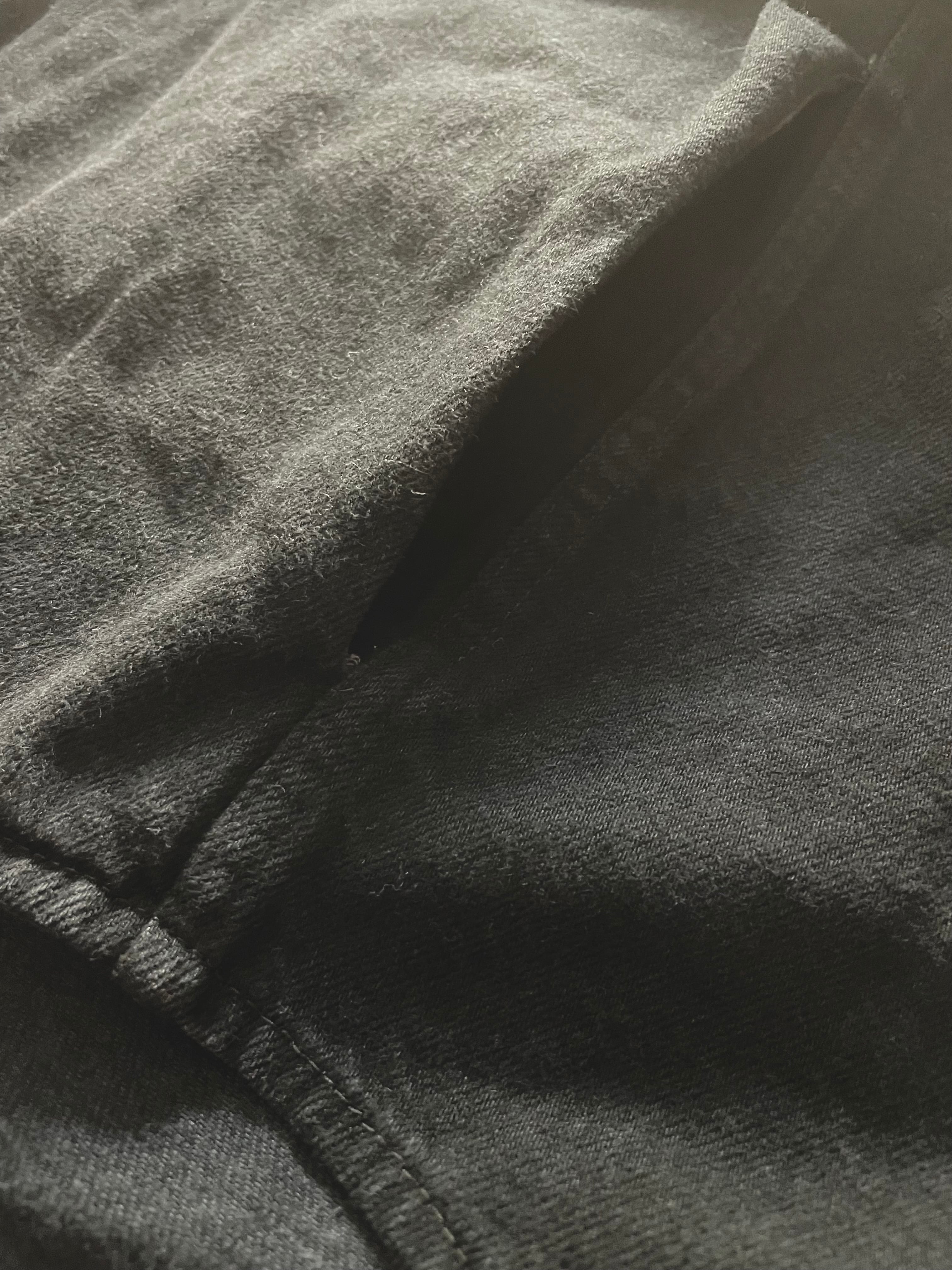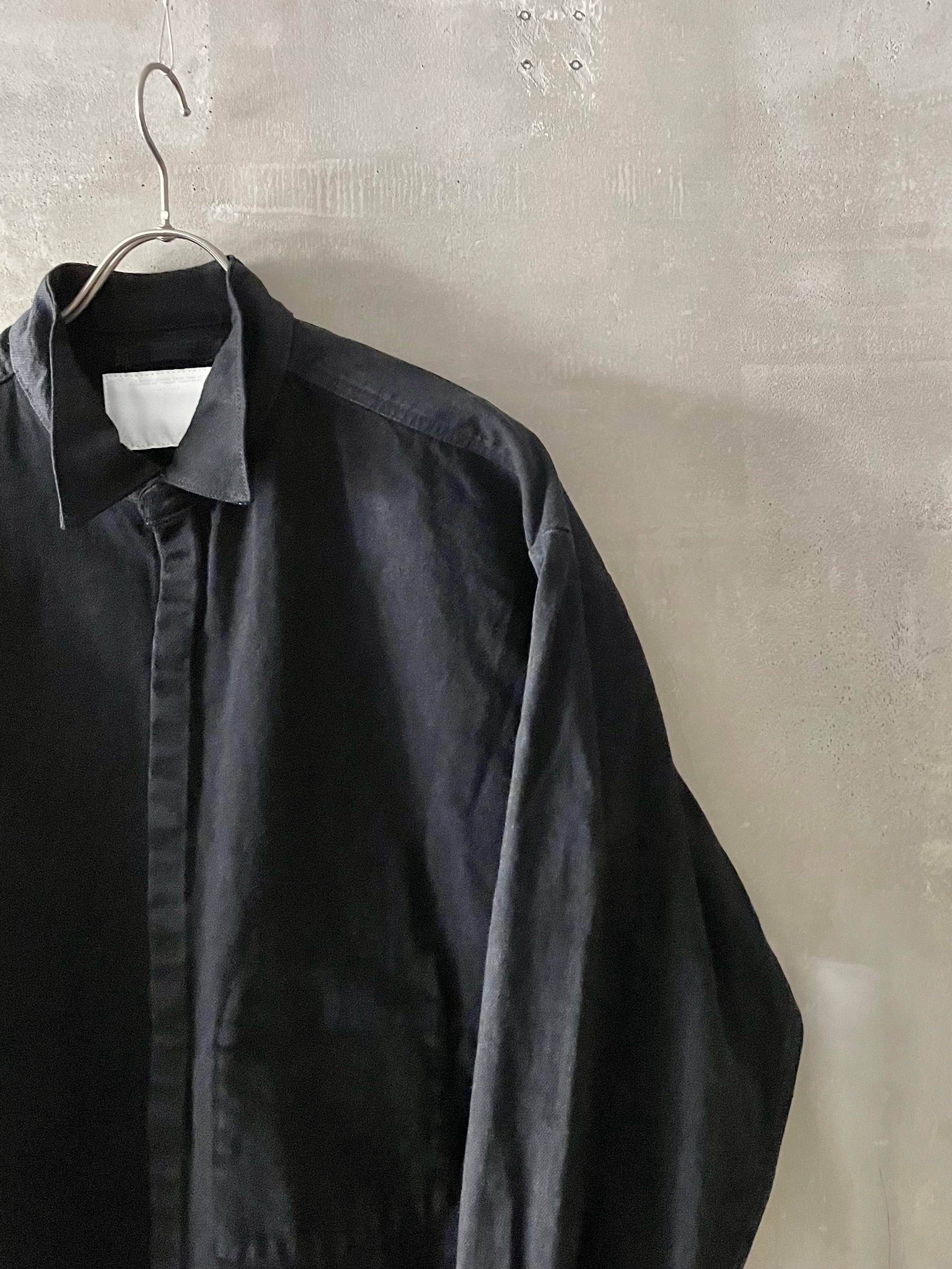 T/f Lv5 biostone wash fly front dot button wing collar denim shirt - combined black