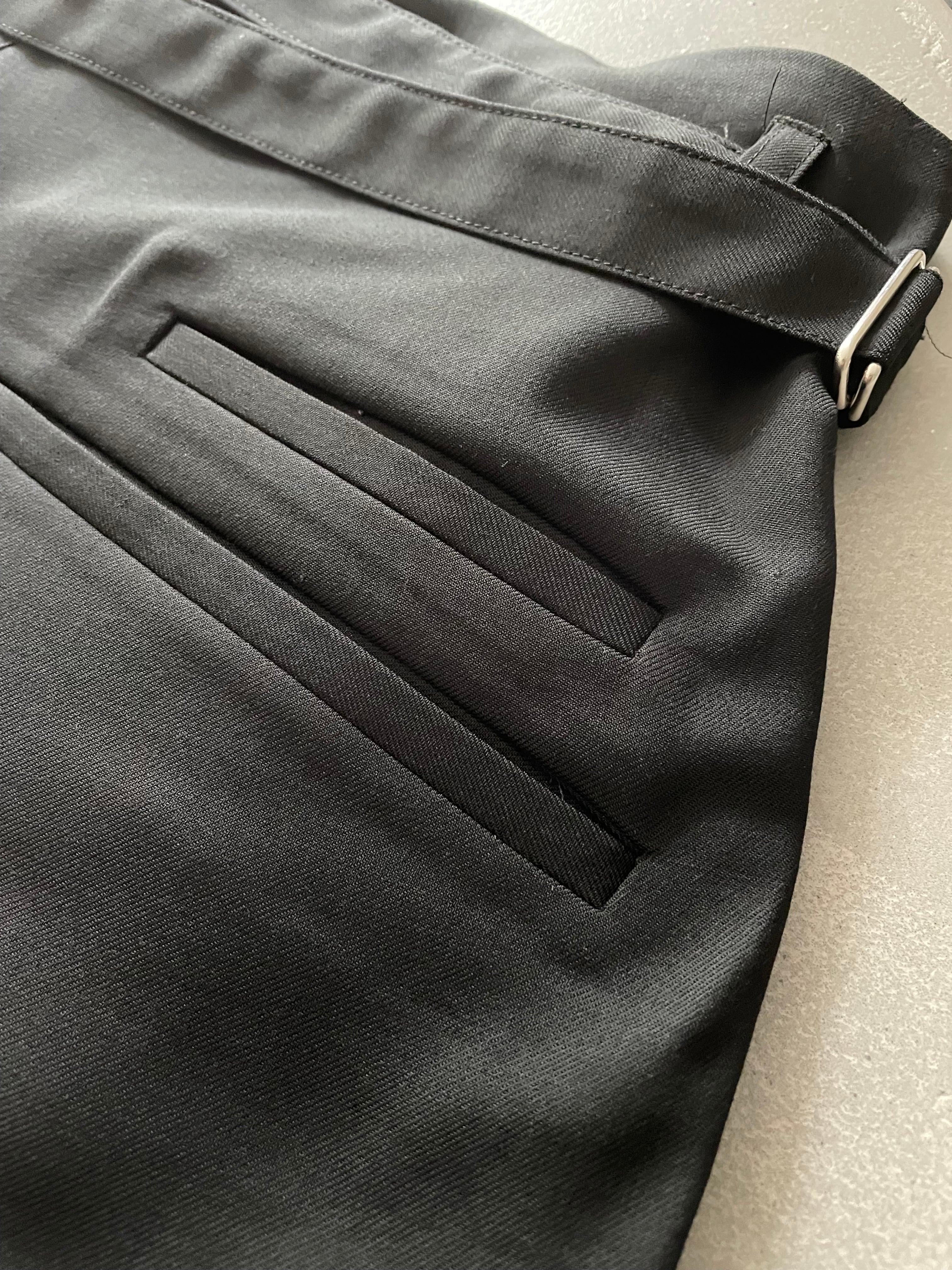 : waist ウエスト 94cm(共地ベルト付属/着脱可) / rise 股上 42cm/ inseam 股下 69cm