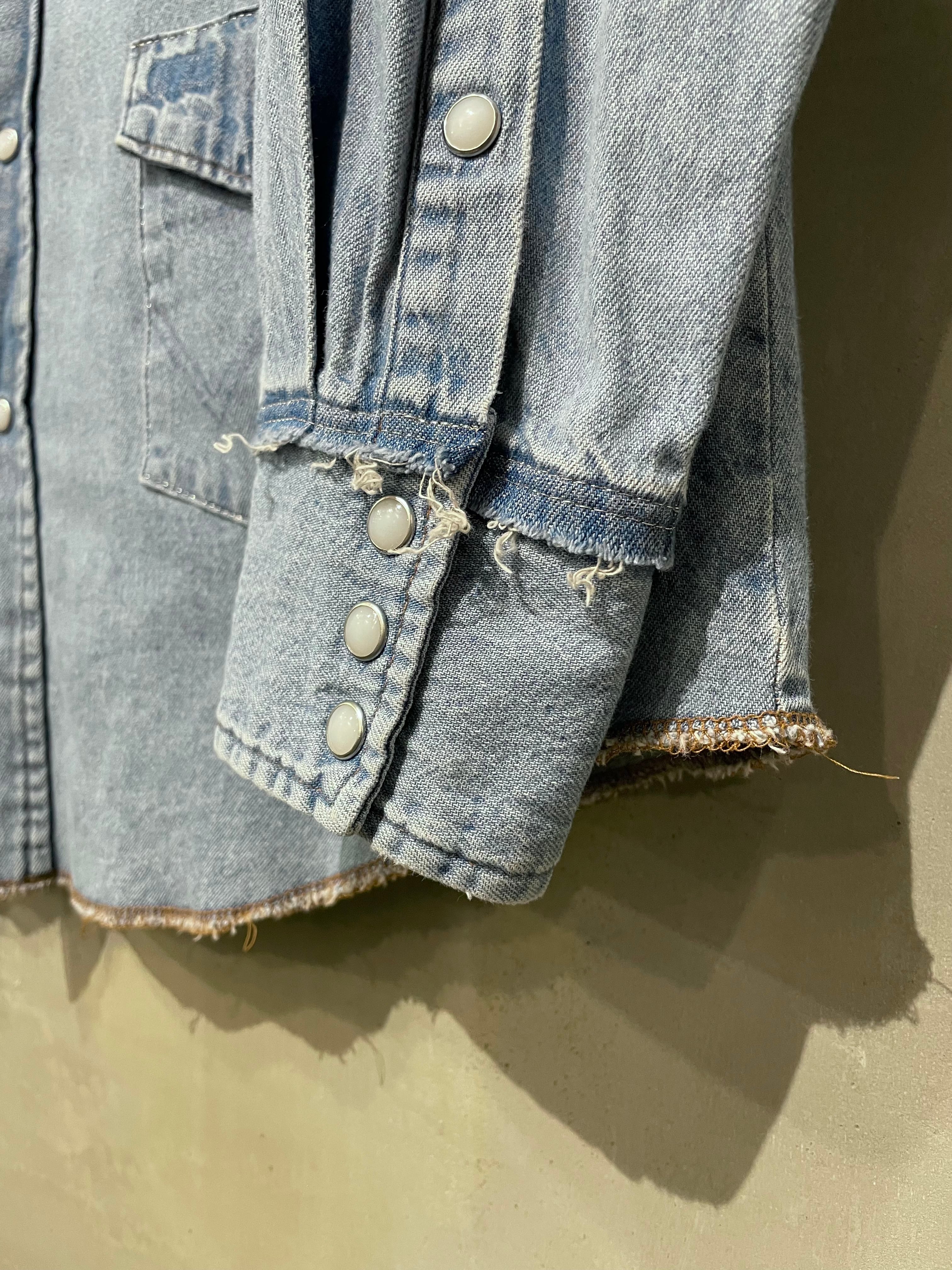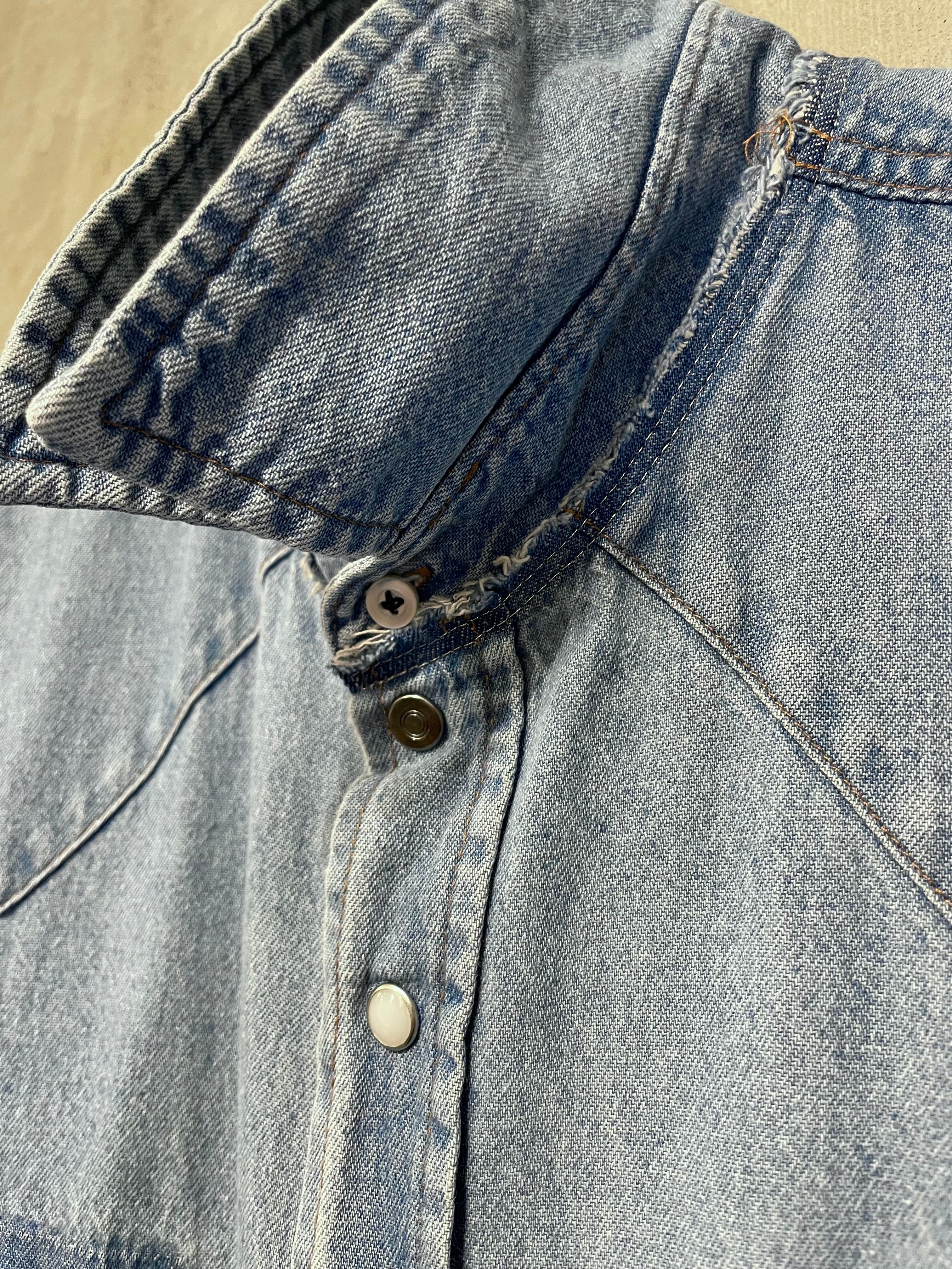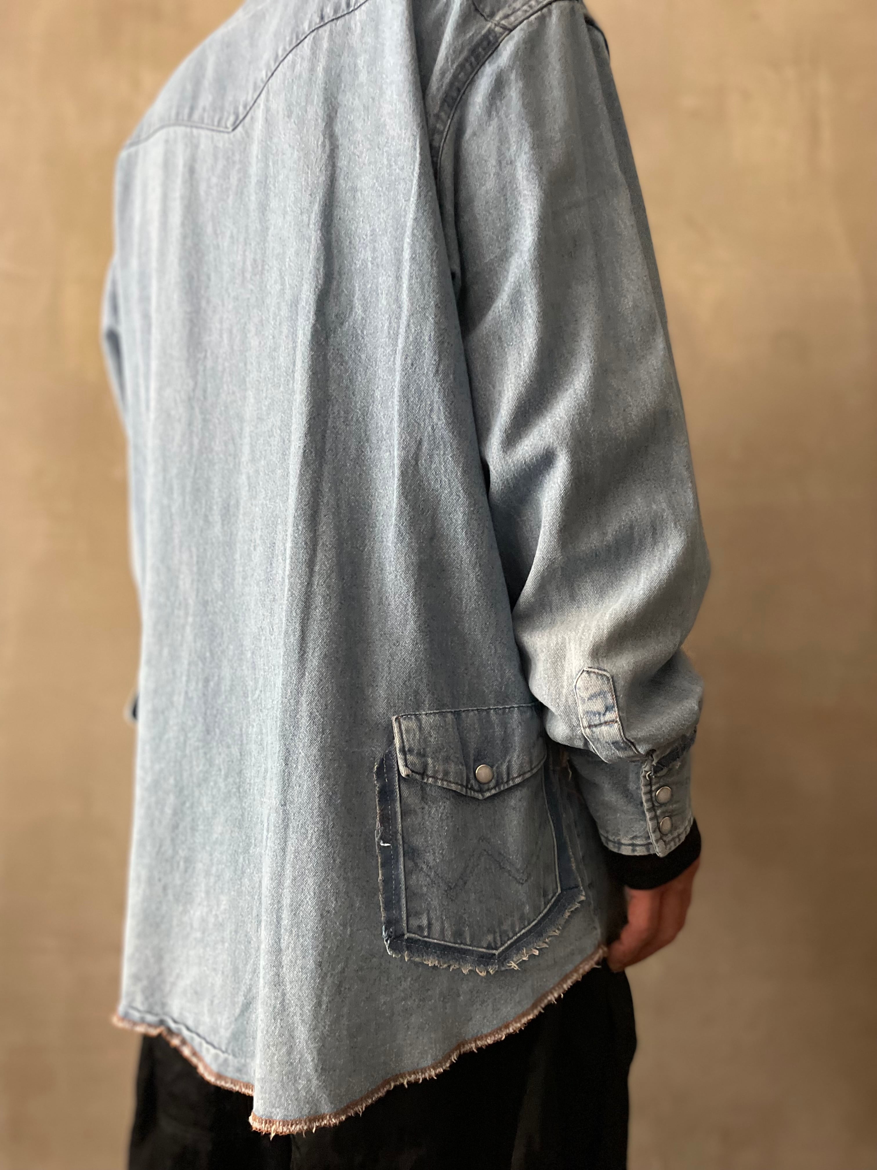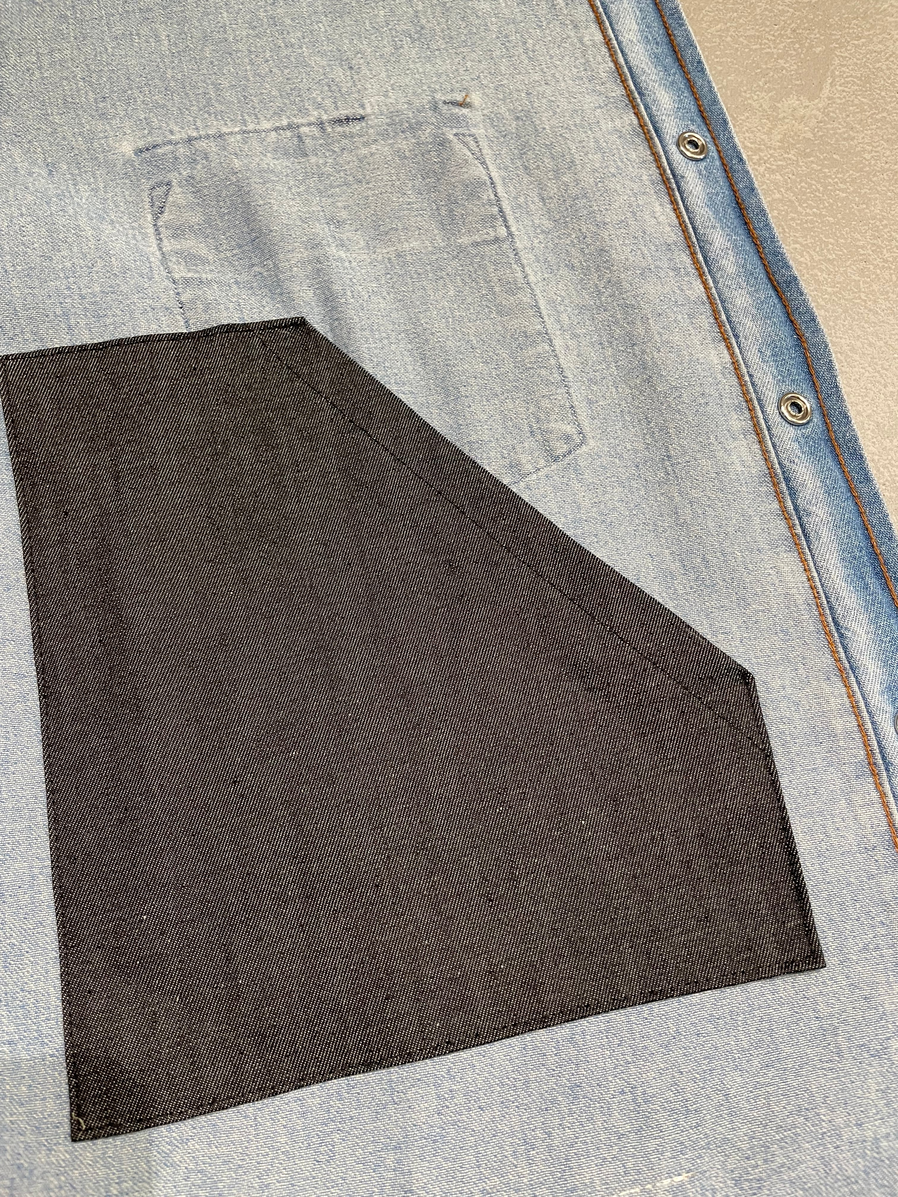 TrAnsference silver stitch replaced pockets denim western shirt
