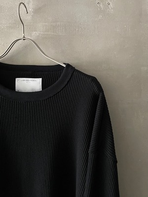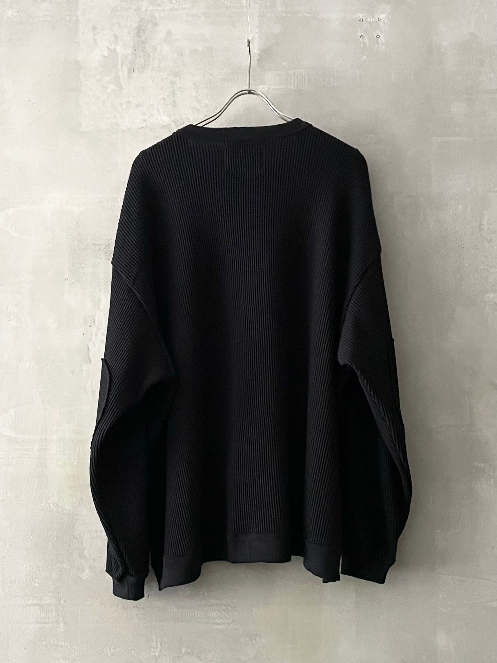 T/f Lv4 loose fit elbow patch waffle long sleeve top - black