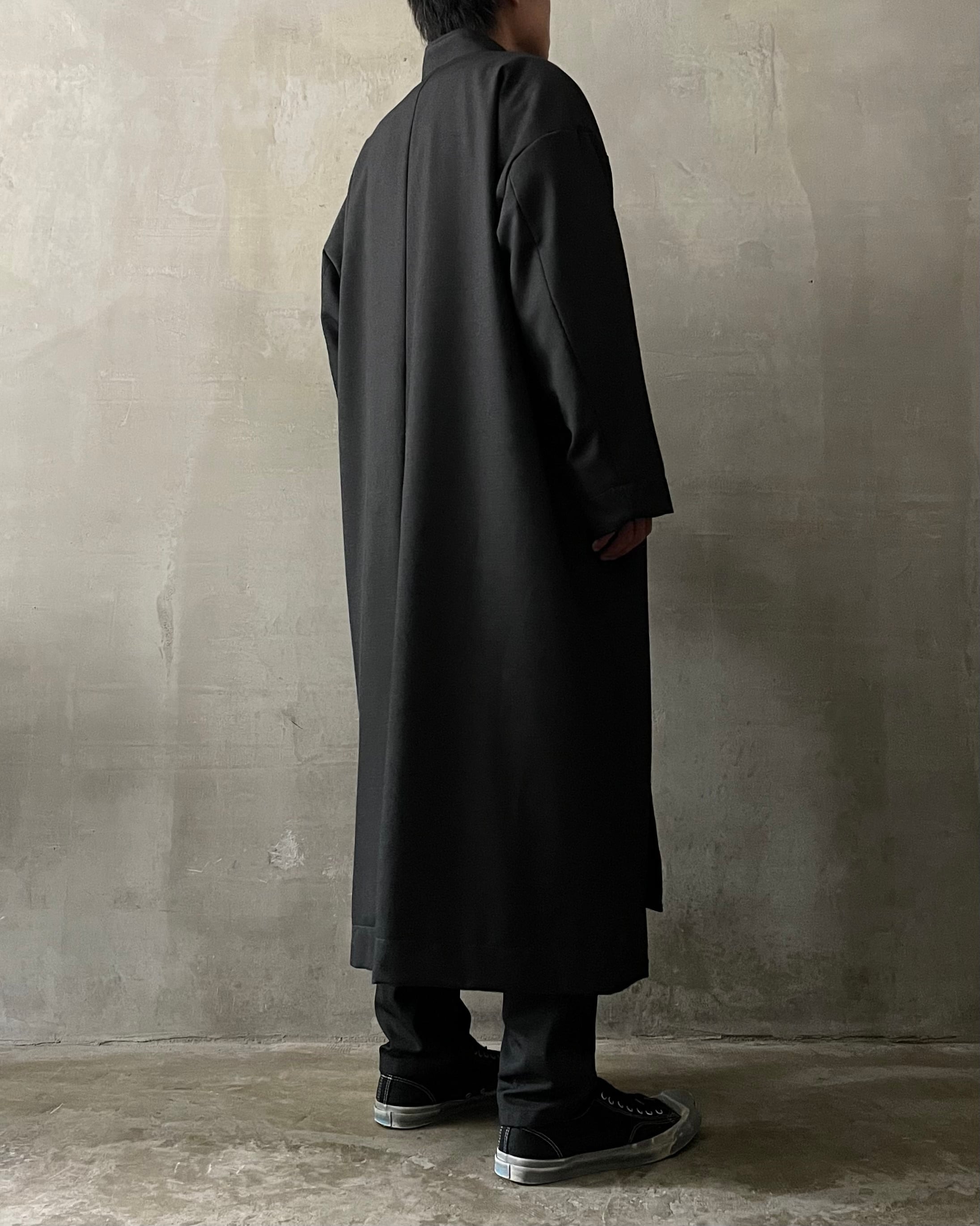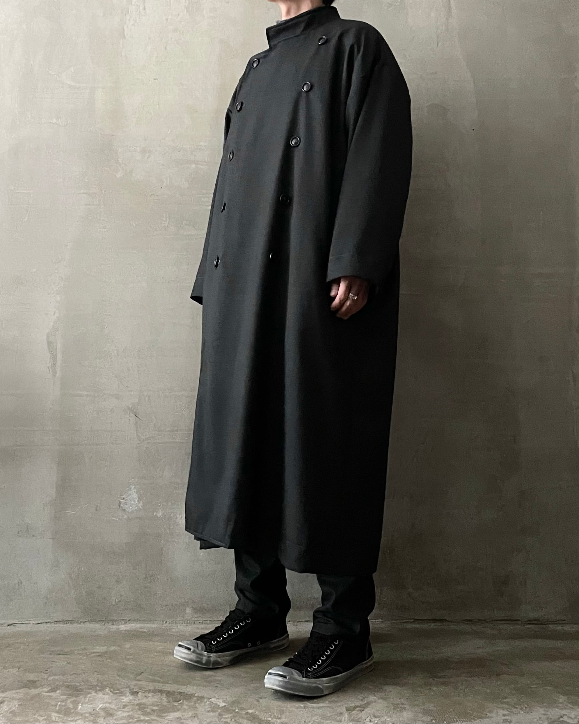 T/f Lv7 washable kersey medical maxi coat - black