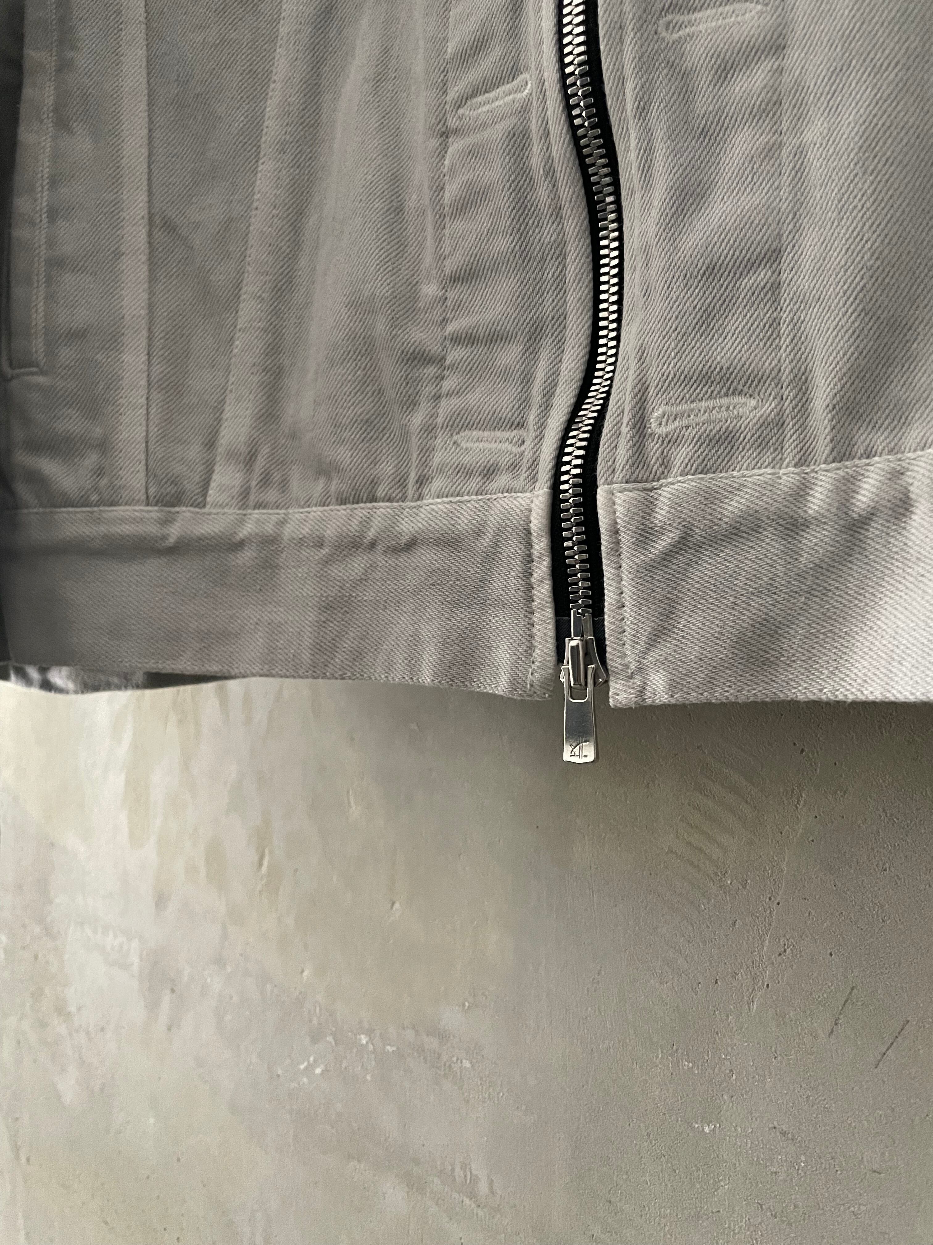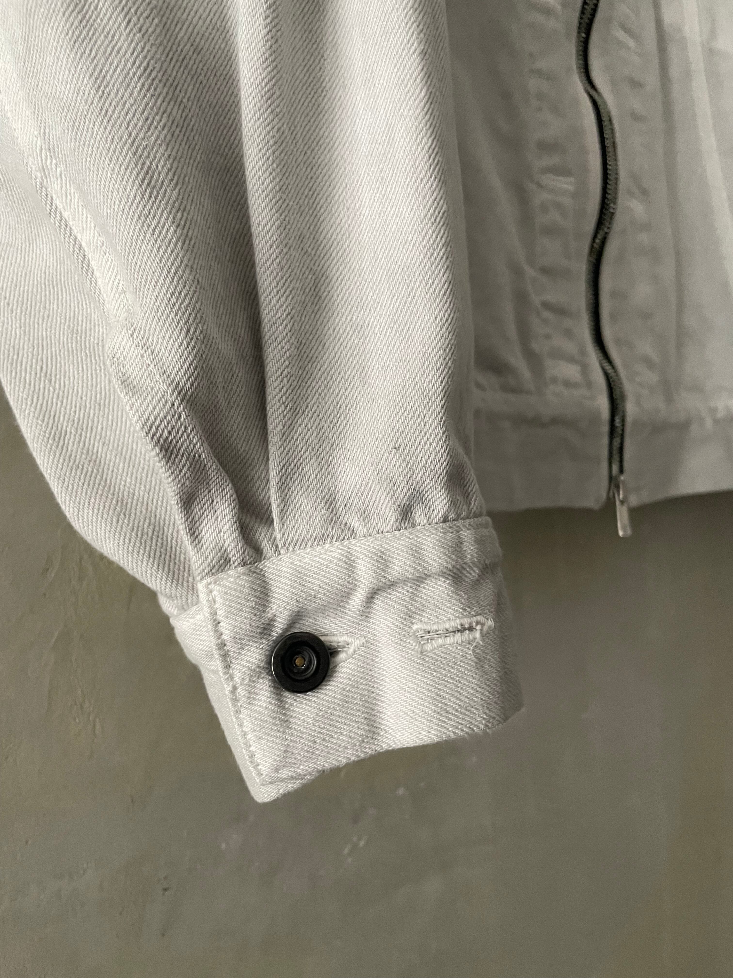 T/f Lv5 loose fit center zip denim blouson - past white garment dyed