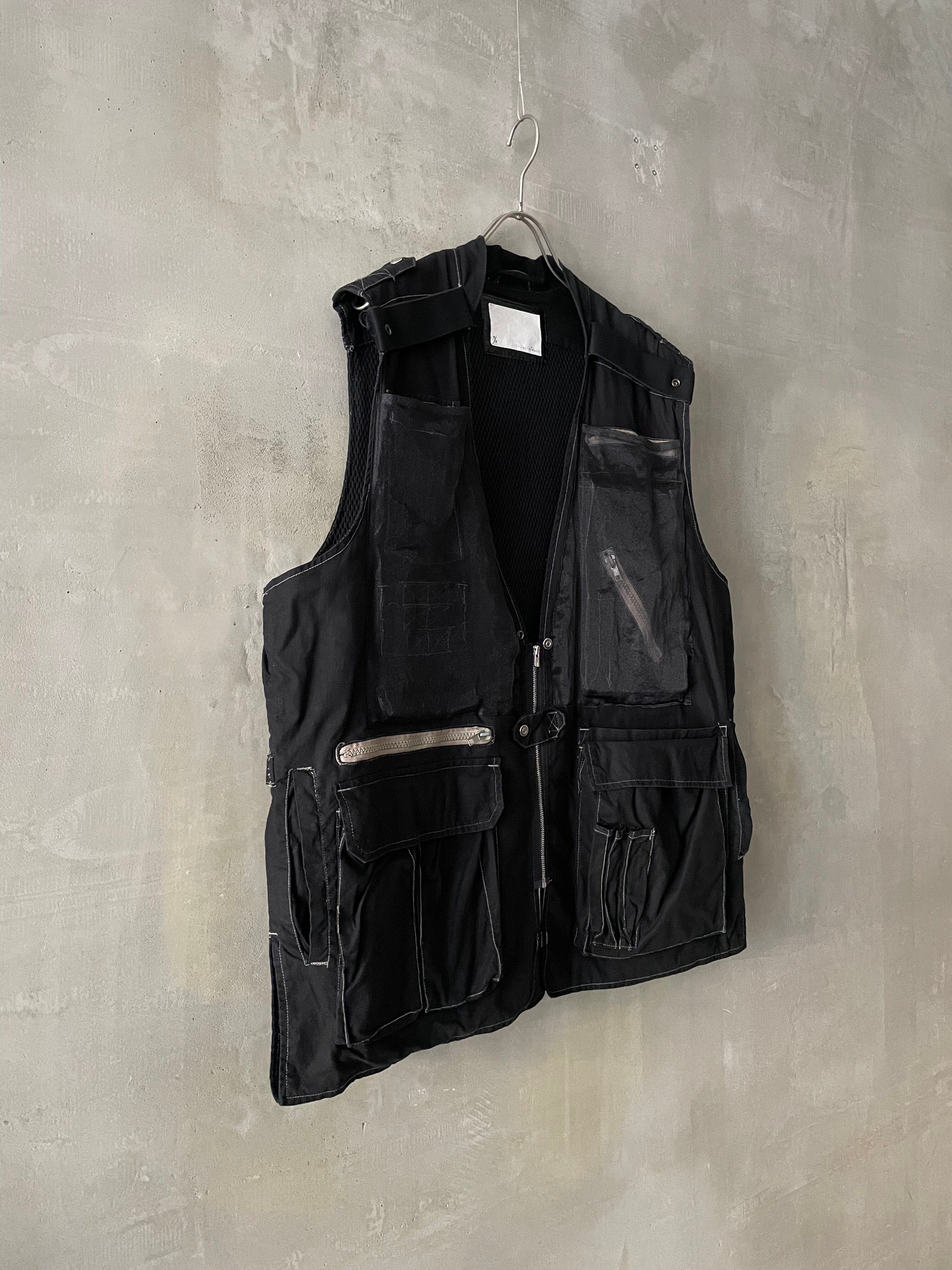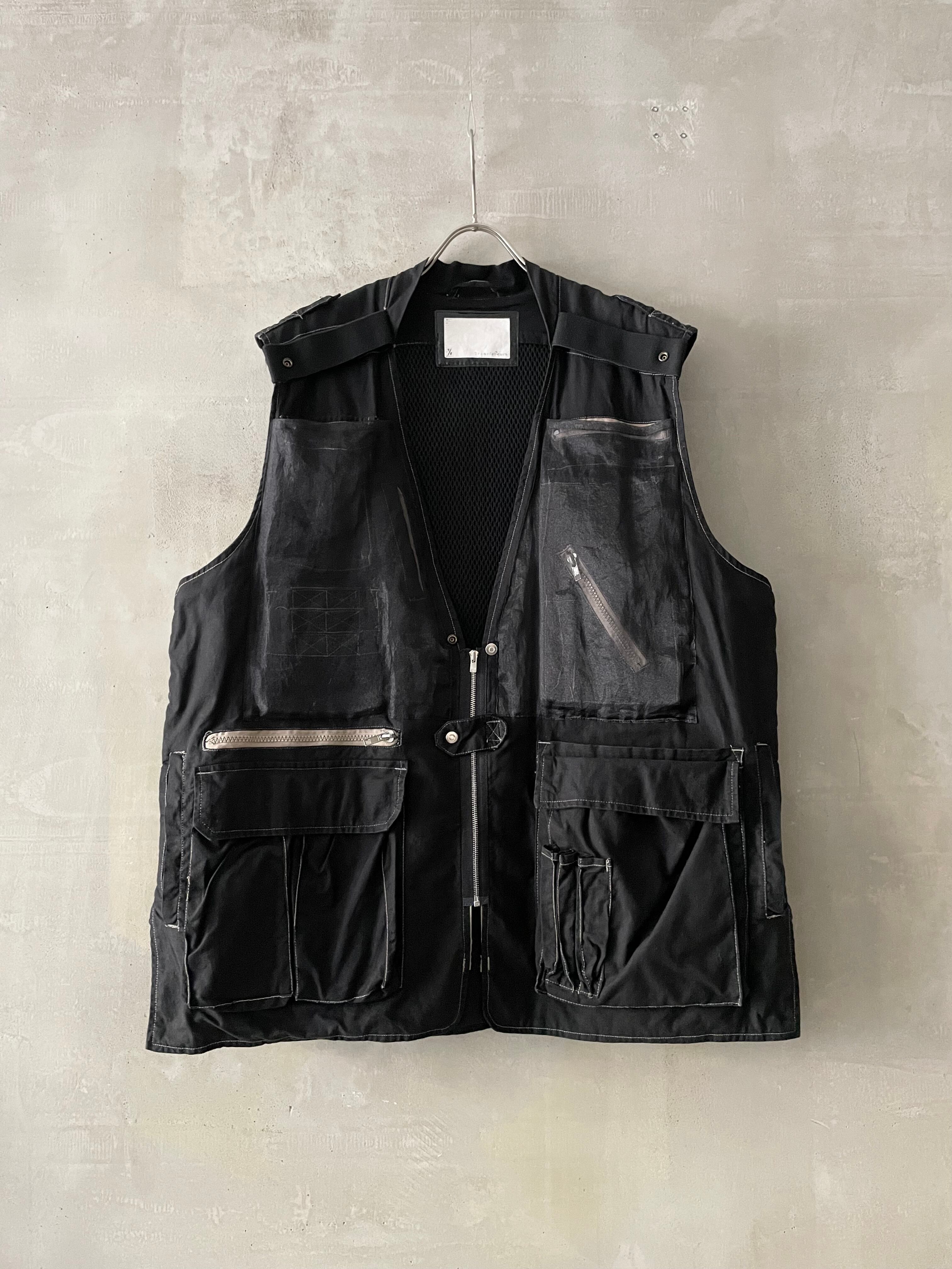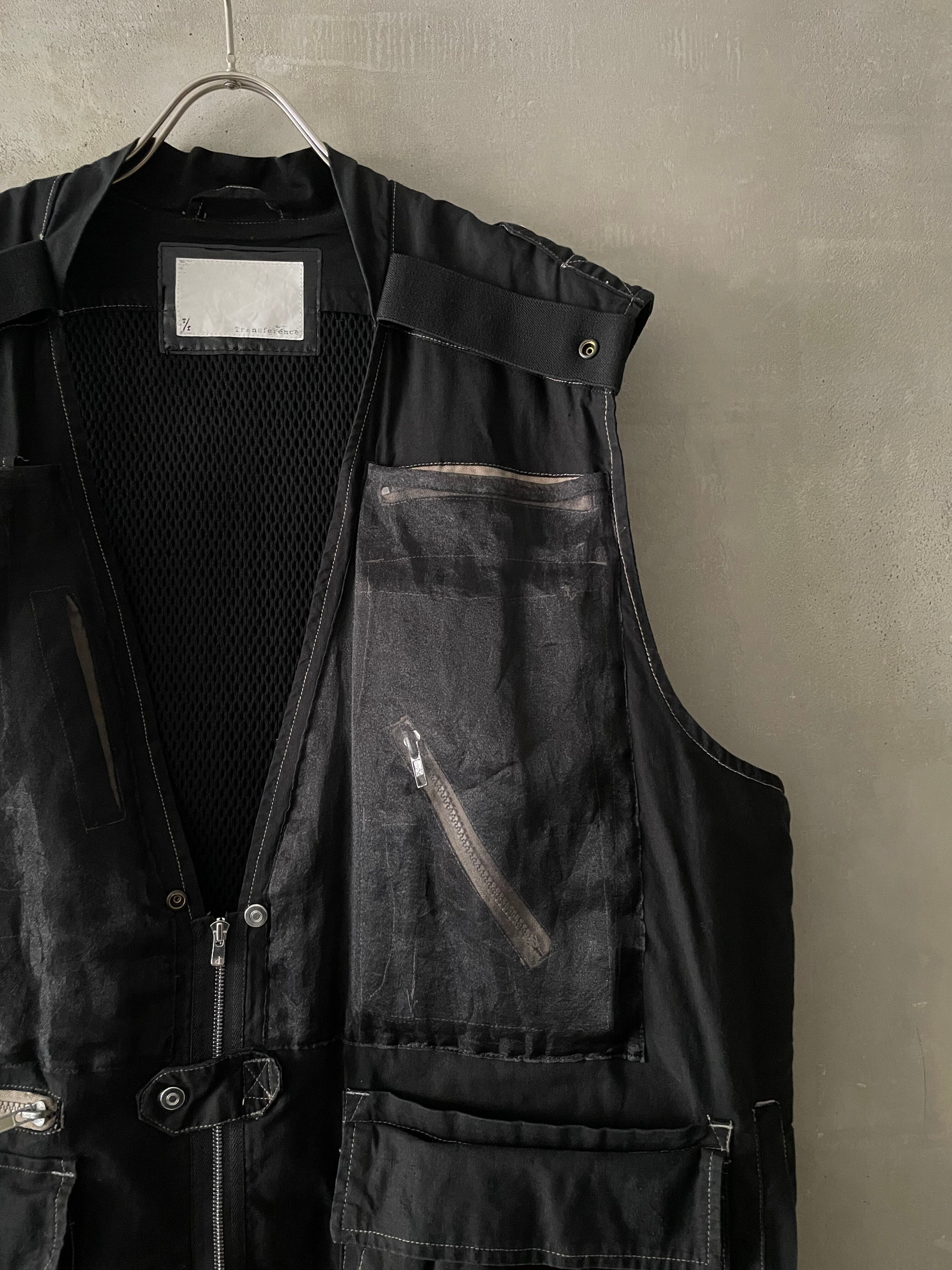 【 customer's used 】Transference Organdy Pockets Fishing Vest 2025 (037) - complete black garment dyed