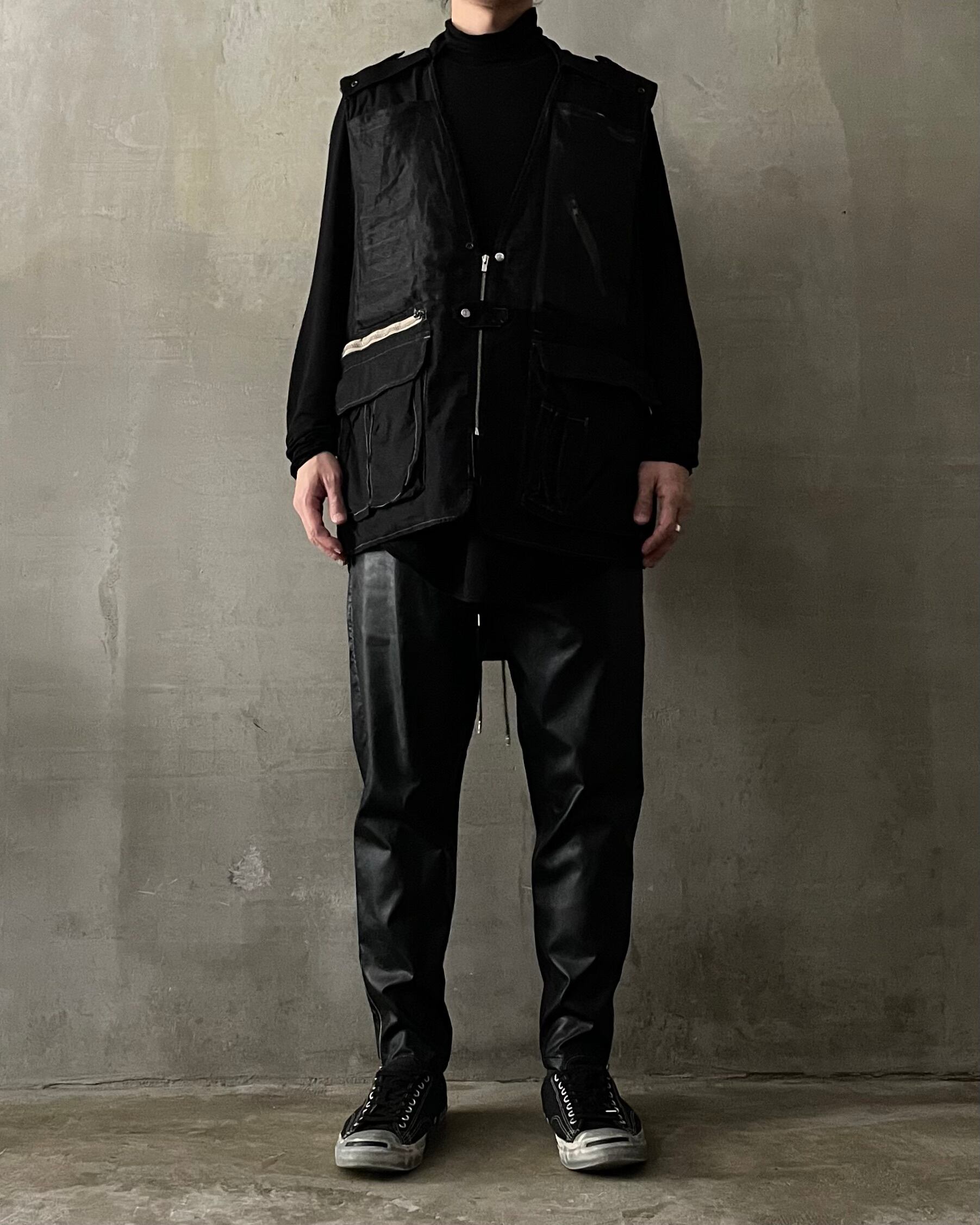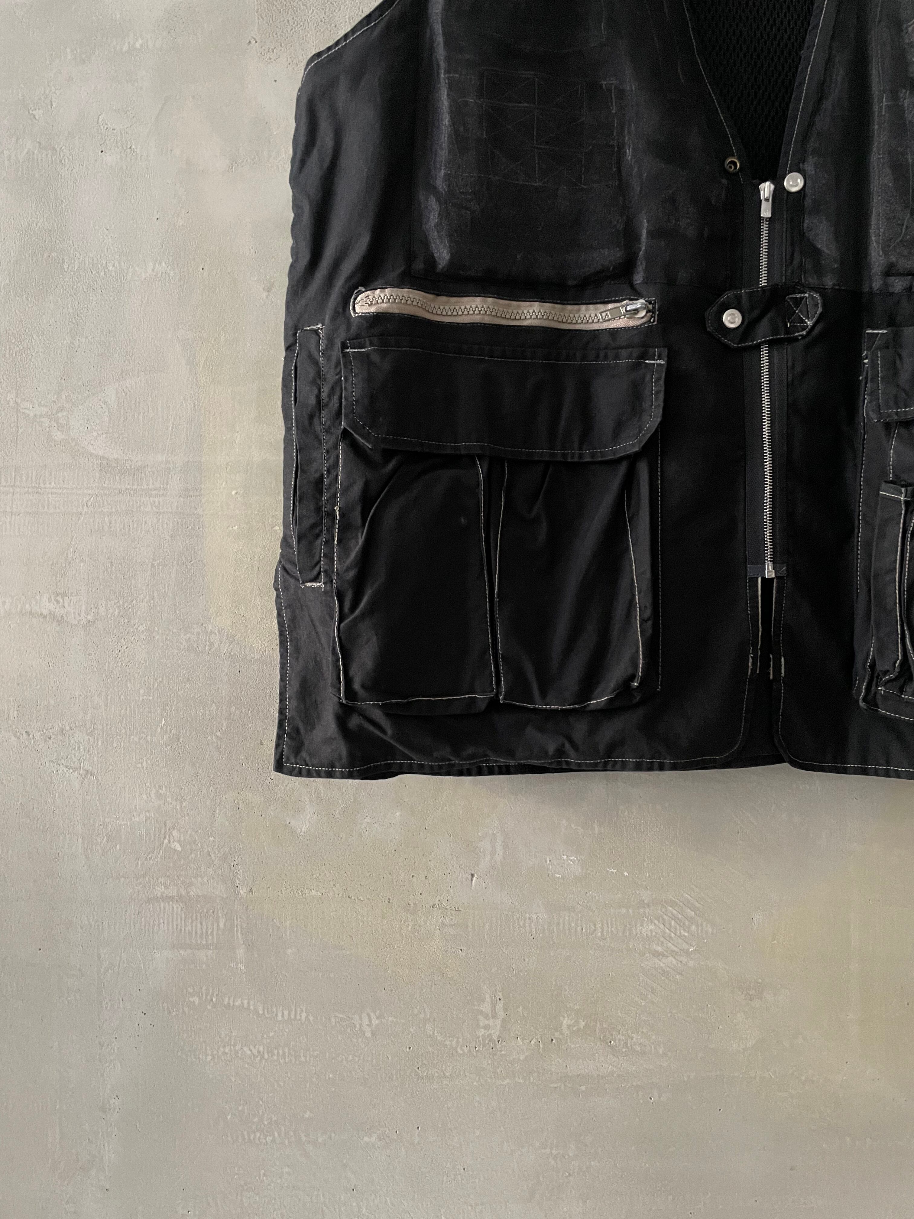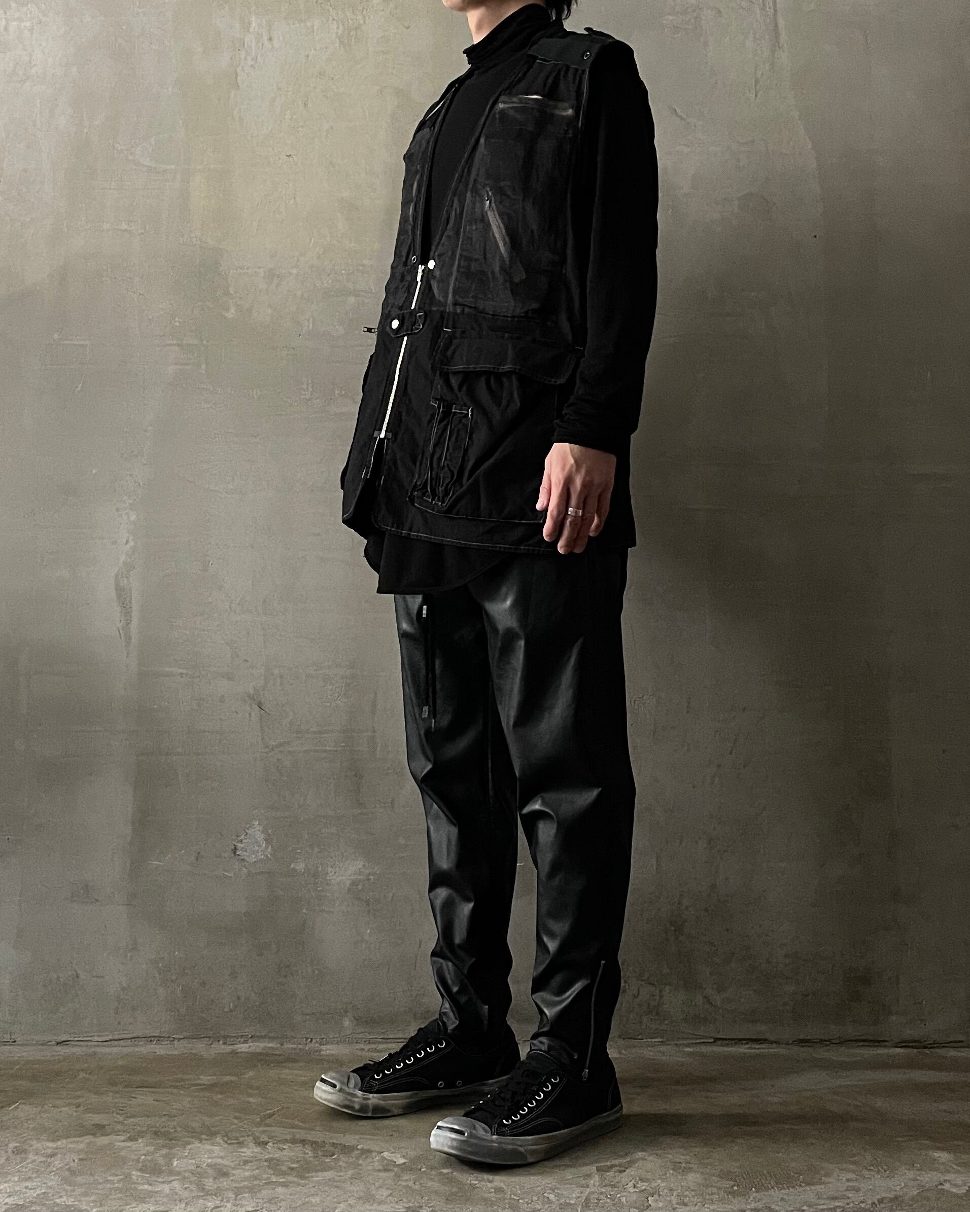 【 customer's used 】Transference Organdy Pockets Fishing Vest 2025 (037) - complete black garment dyed
