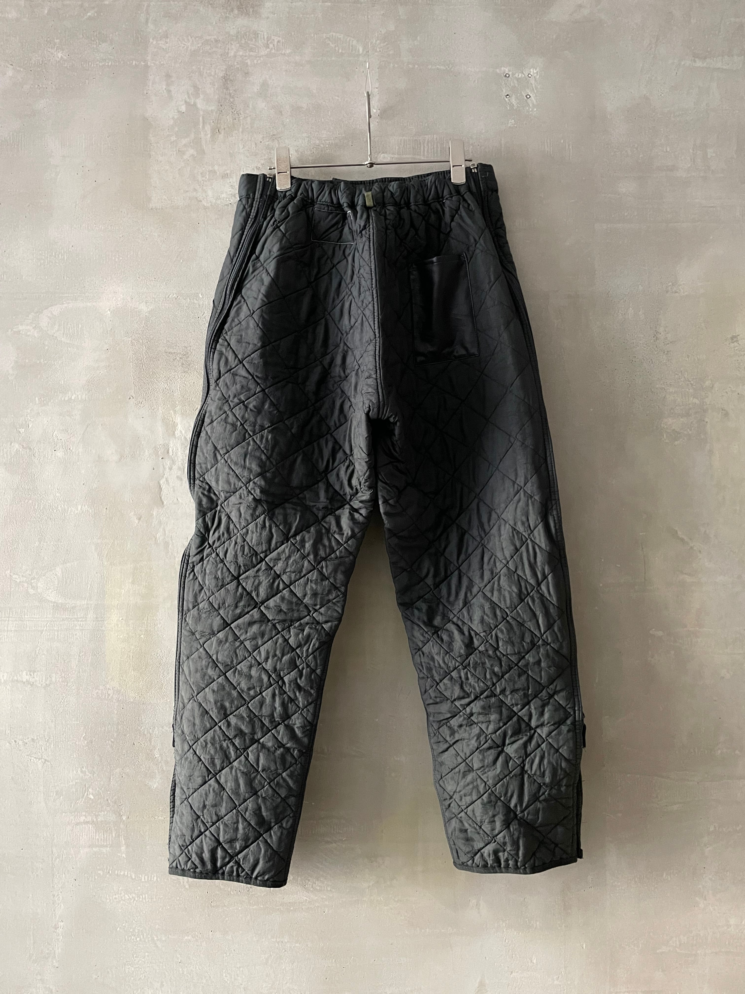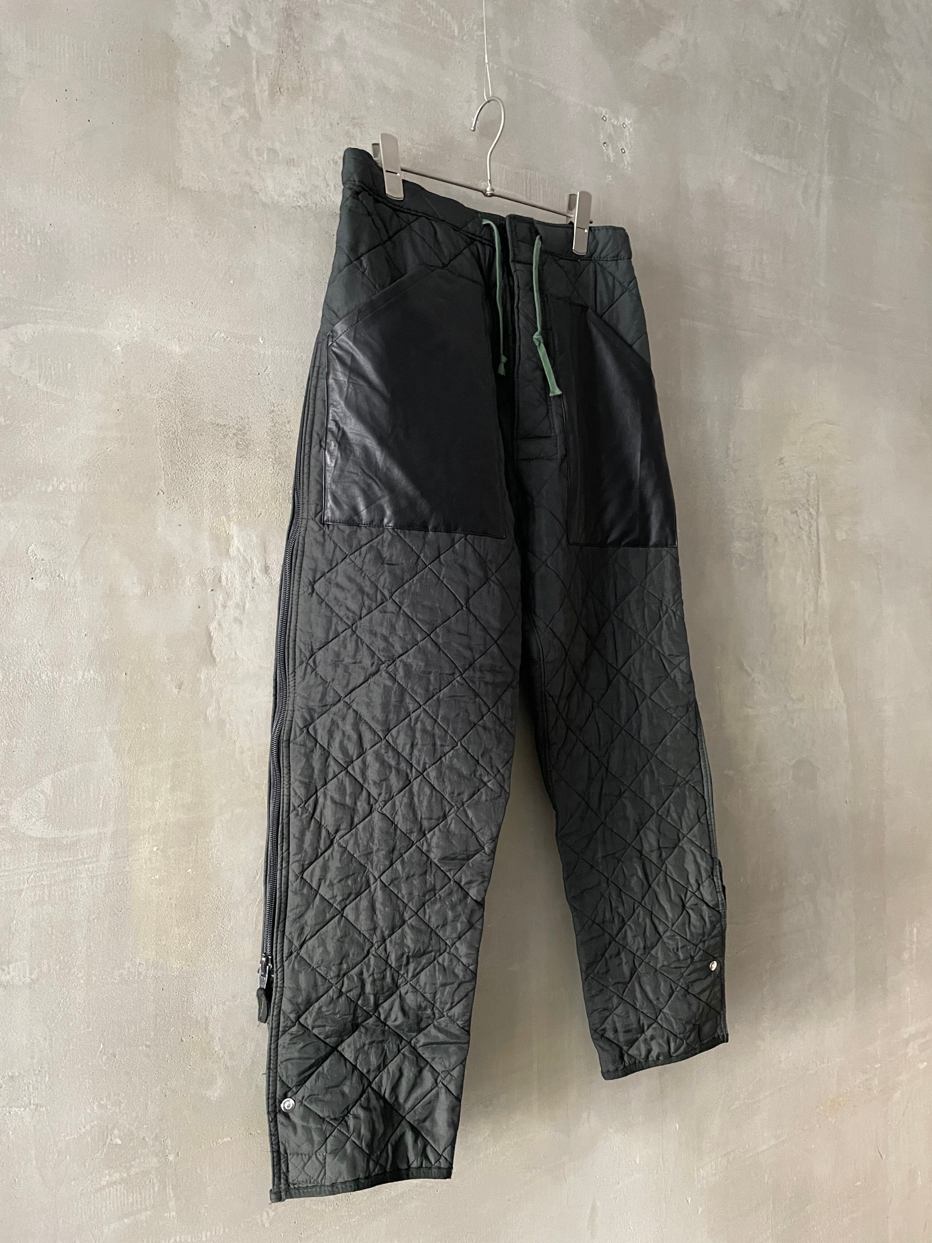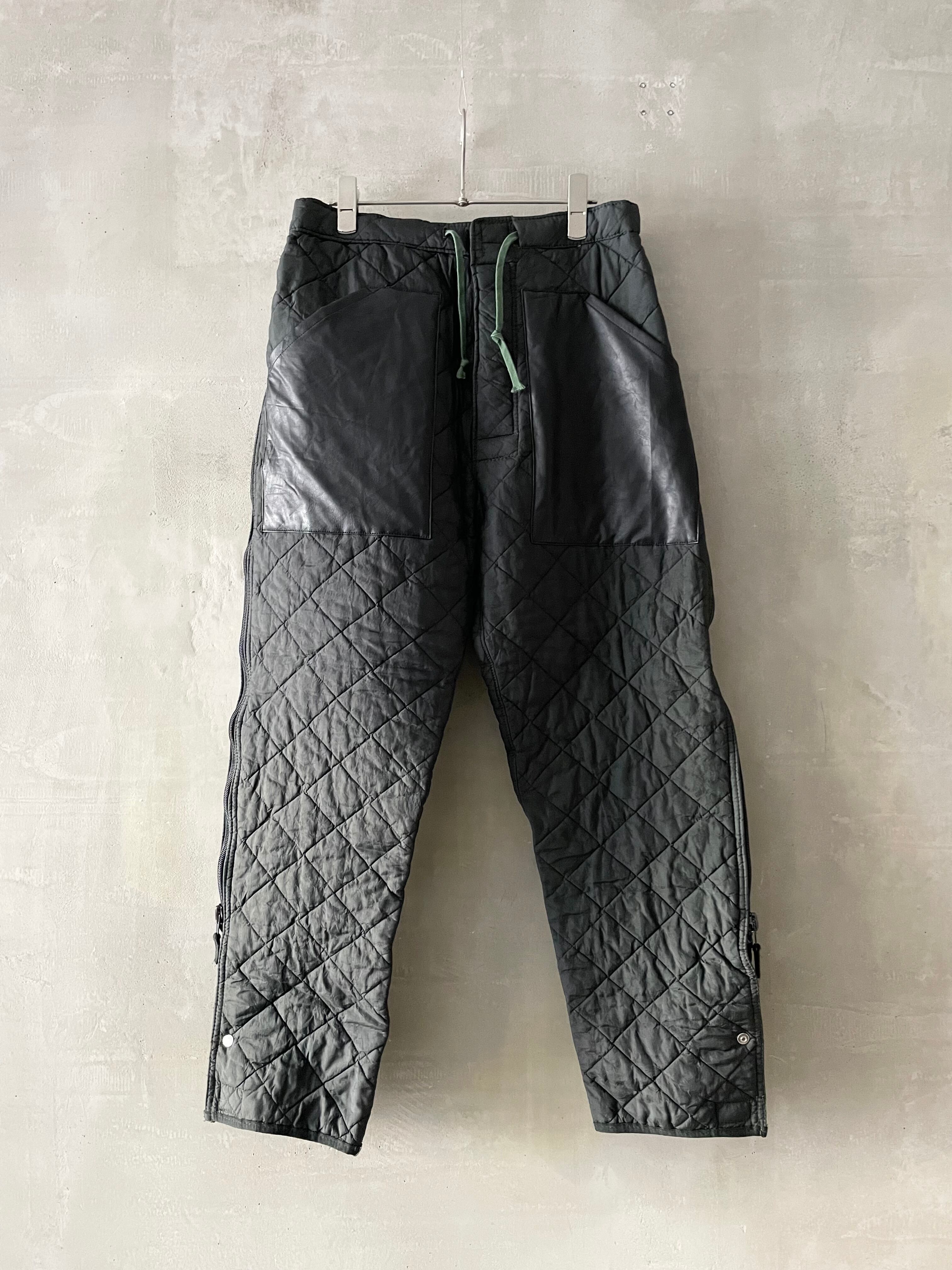 TrAnsference full zip quilted pants - dark forest garment dyed