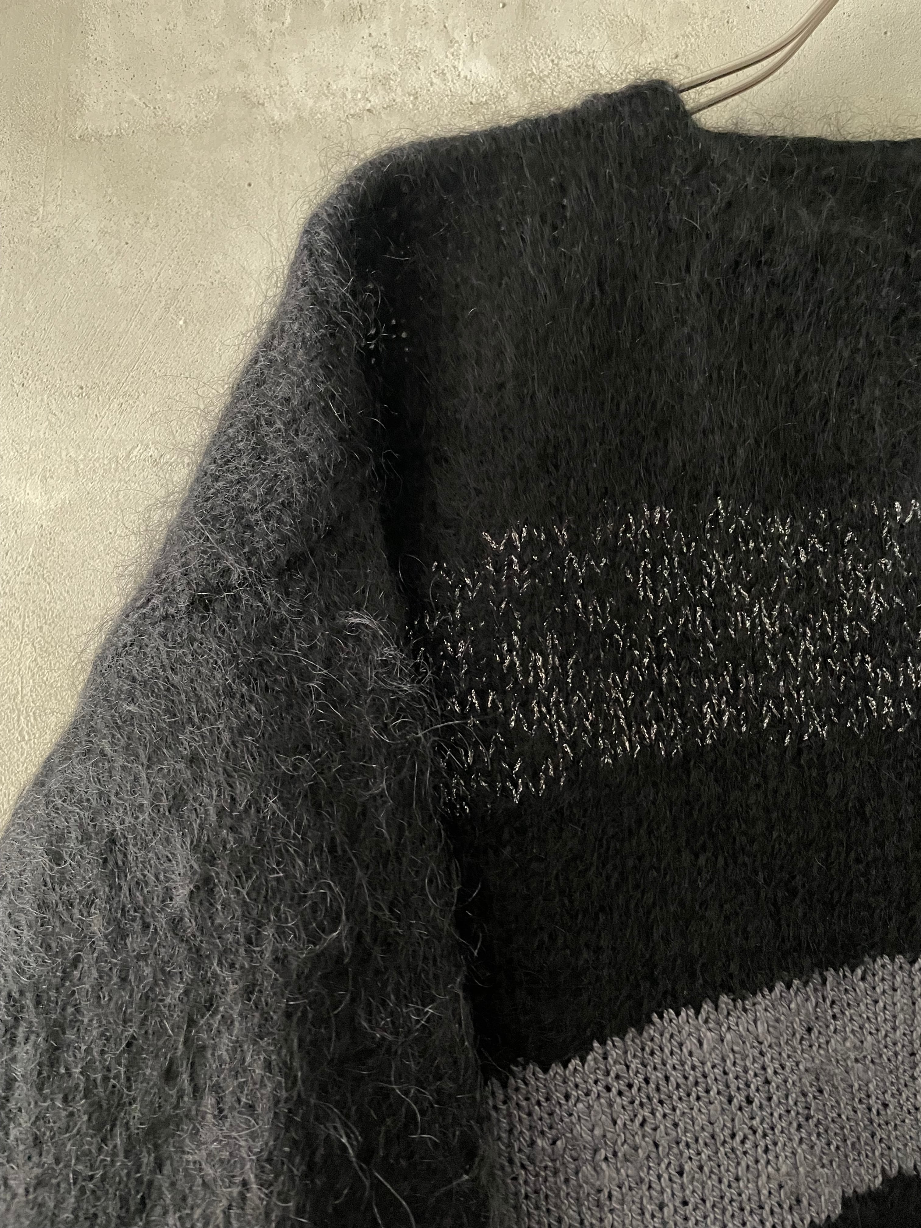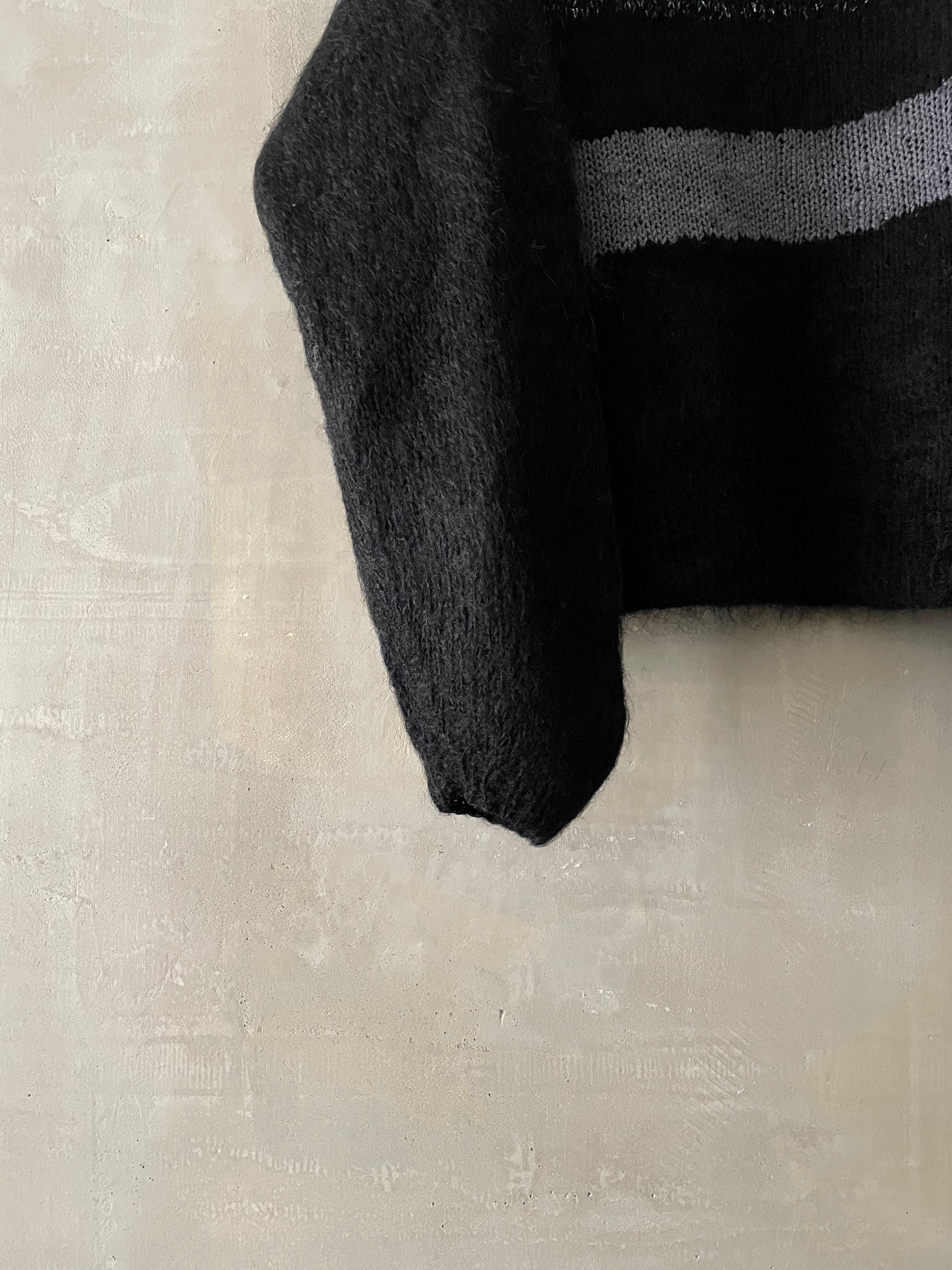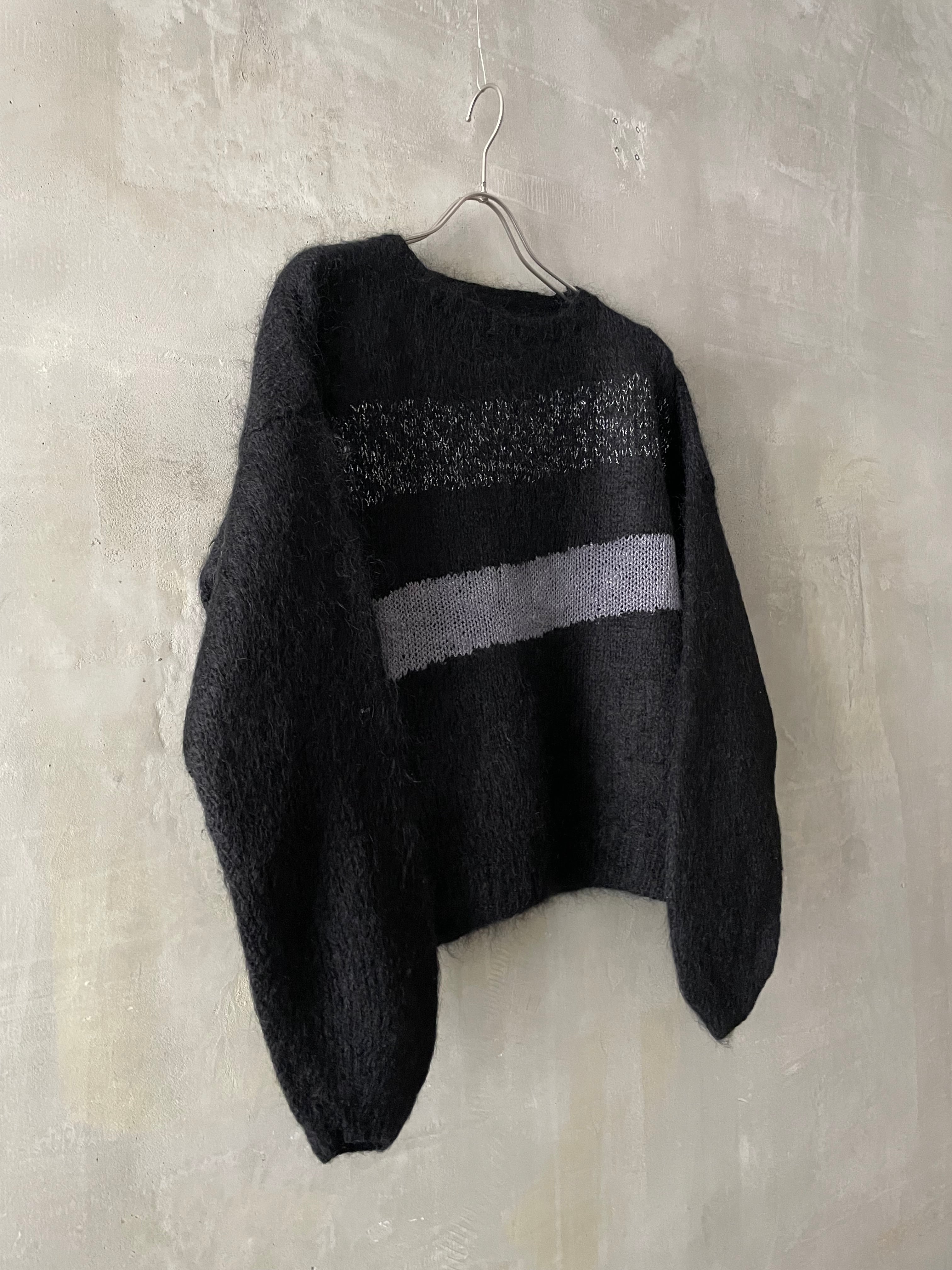 pre-fix striped mohair lamé knit sweater - complete black garment dyed