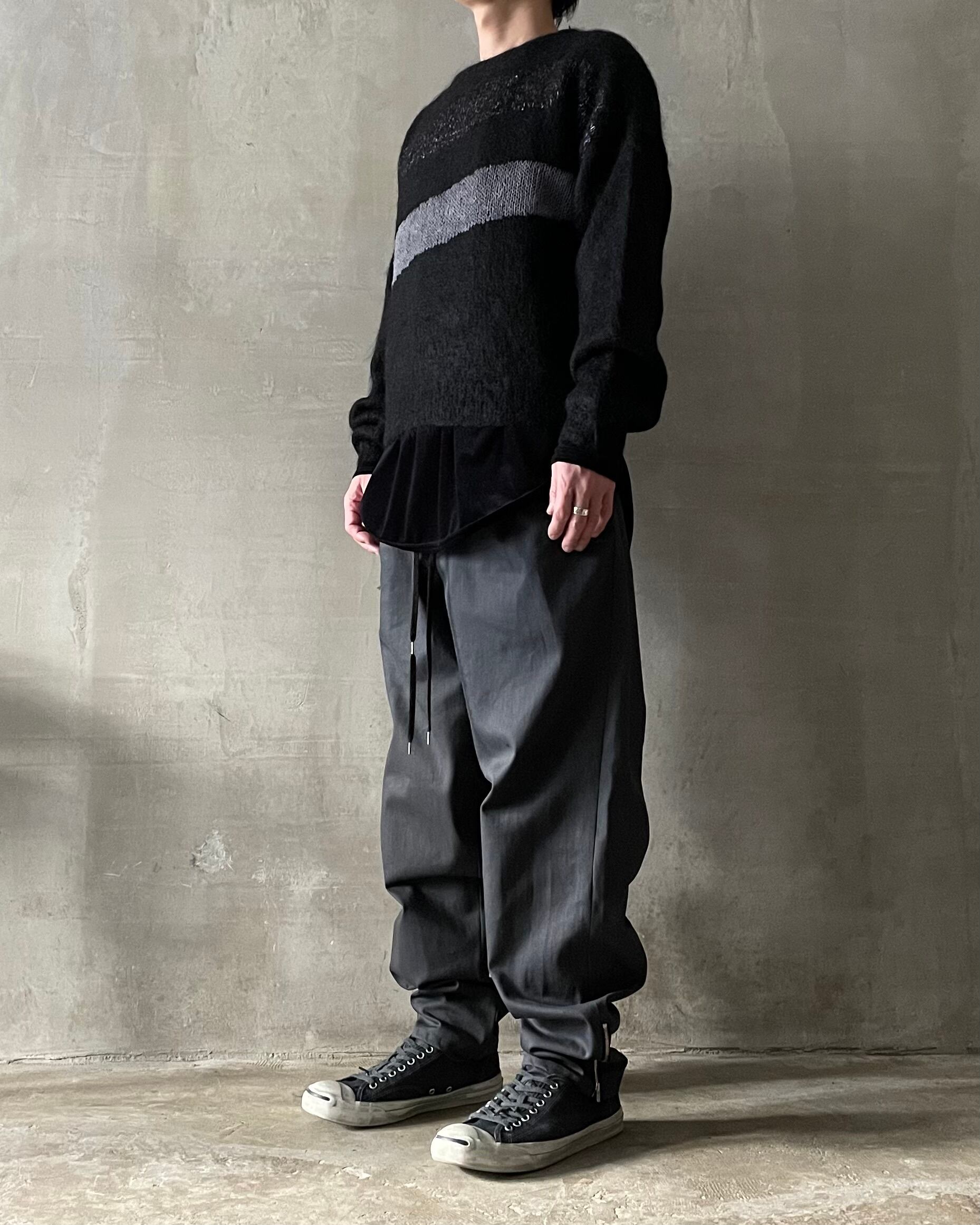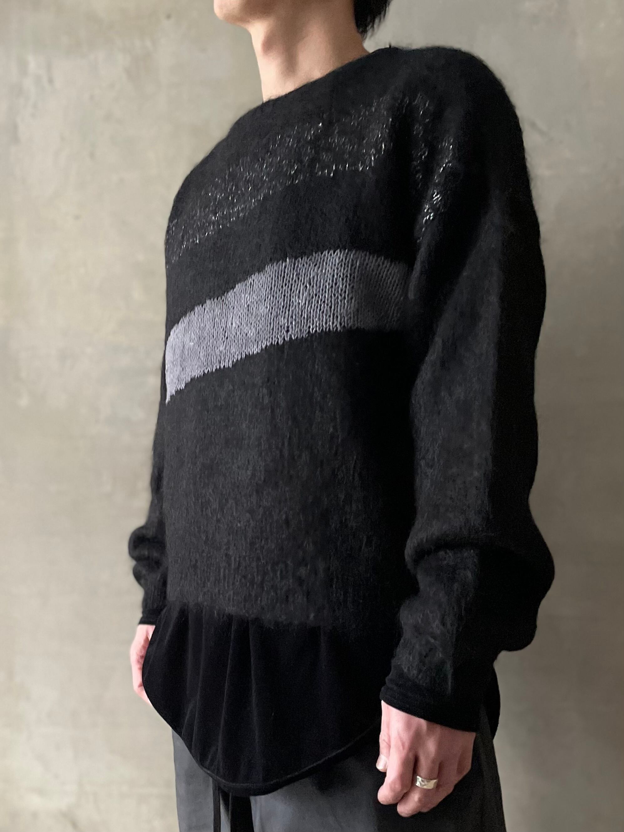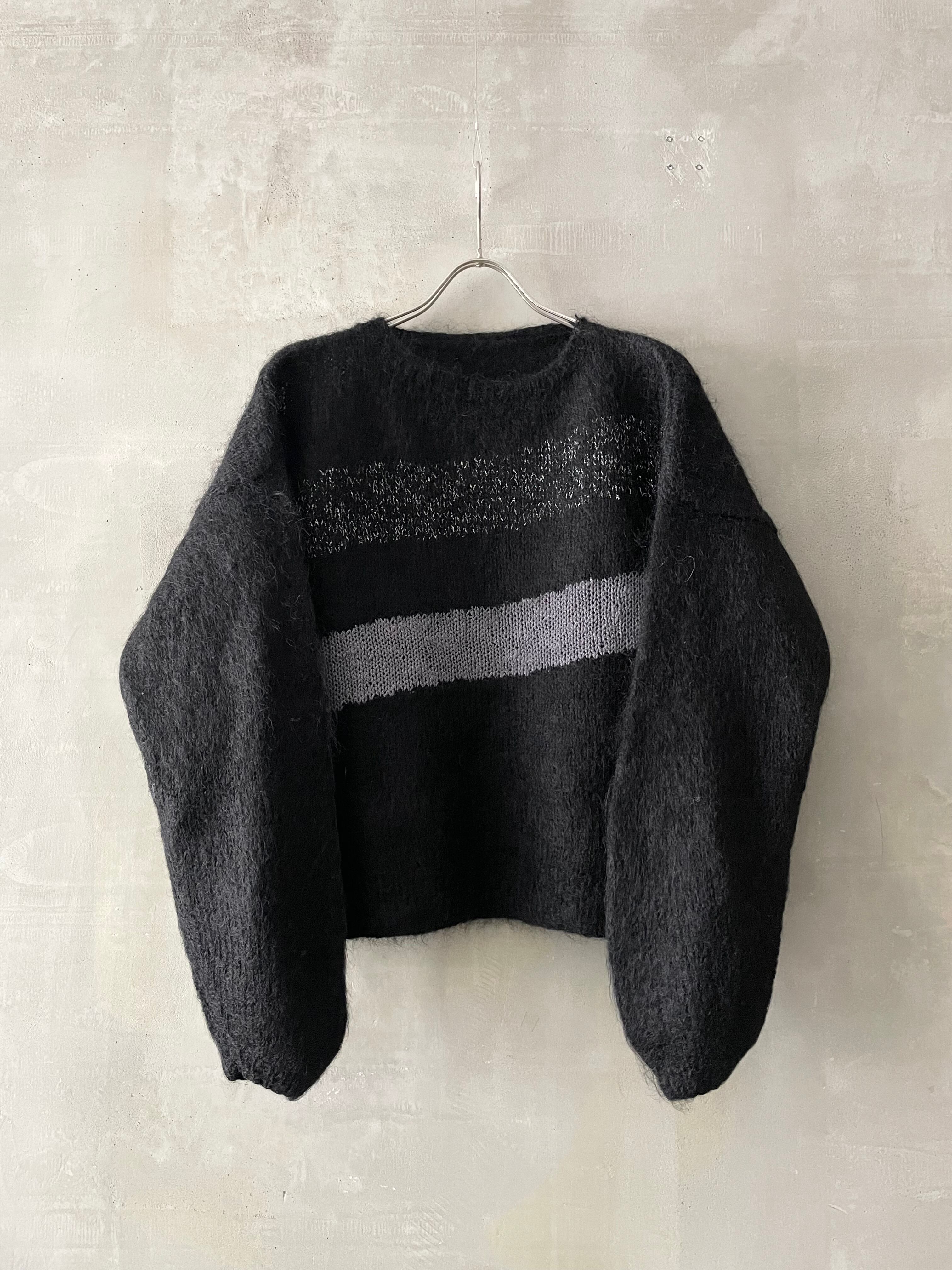 pre-fix striped mohair lamé knit sweater - complete black garment dyed