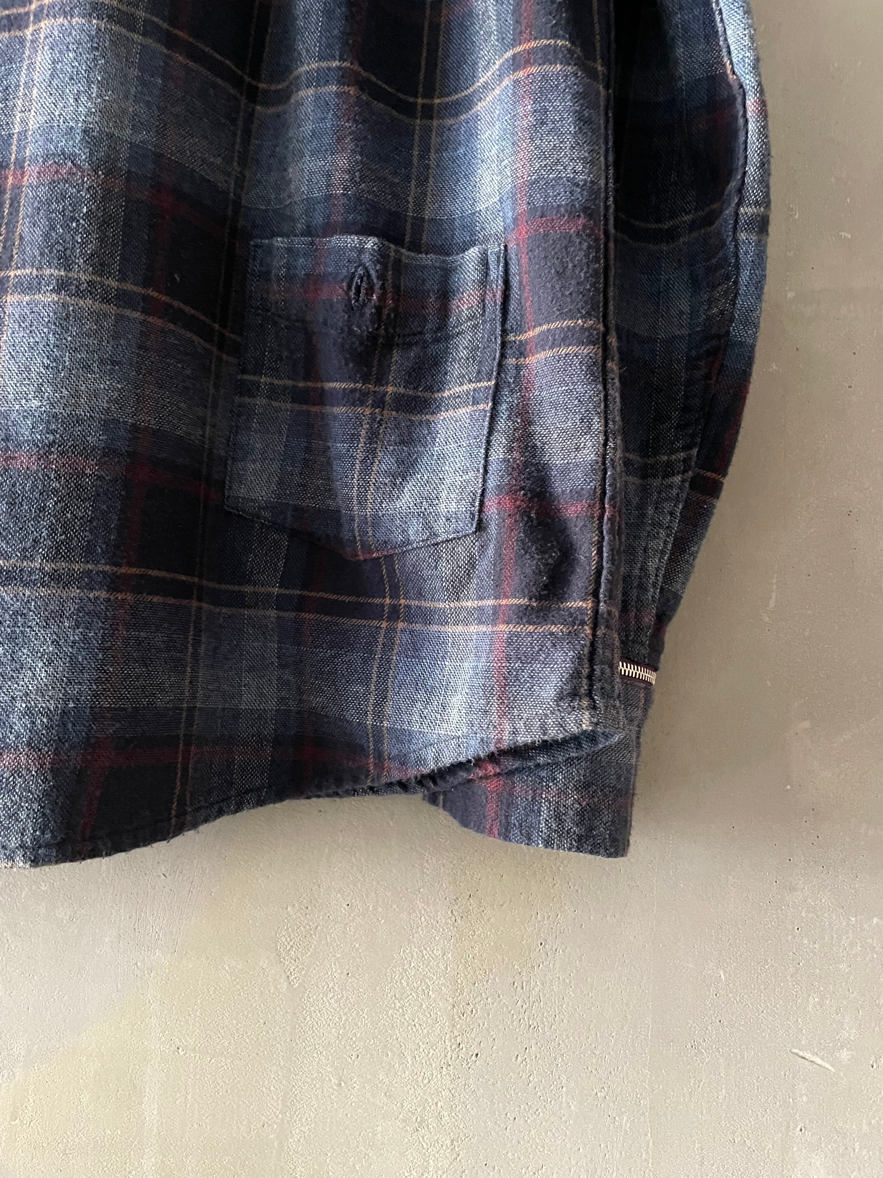 TrAnsference zip-cuff flannel check button-down shirt - navy/blue