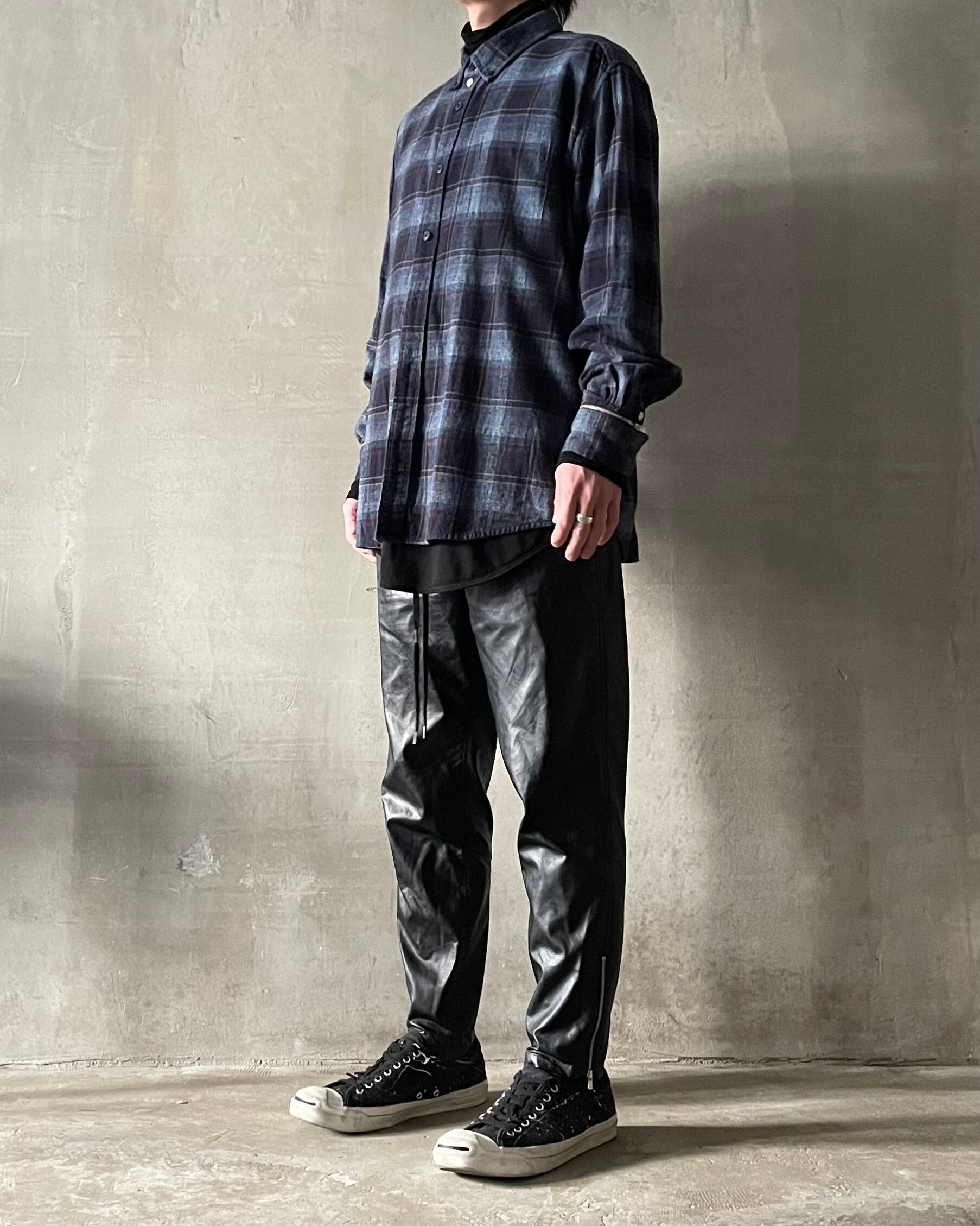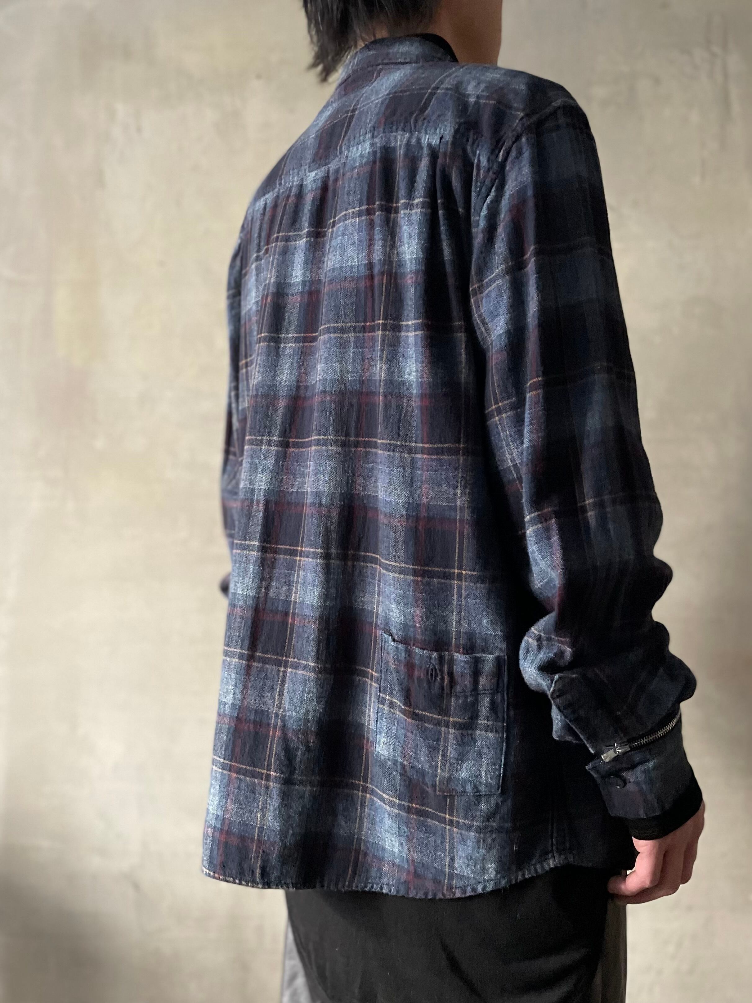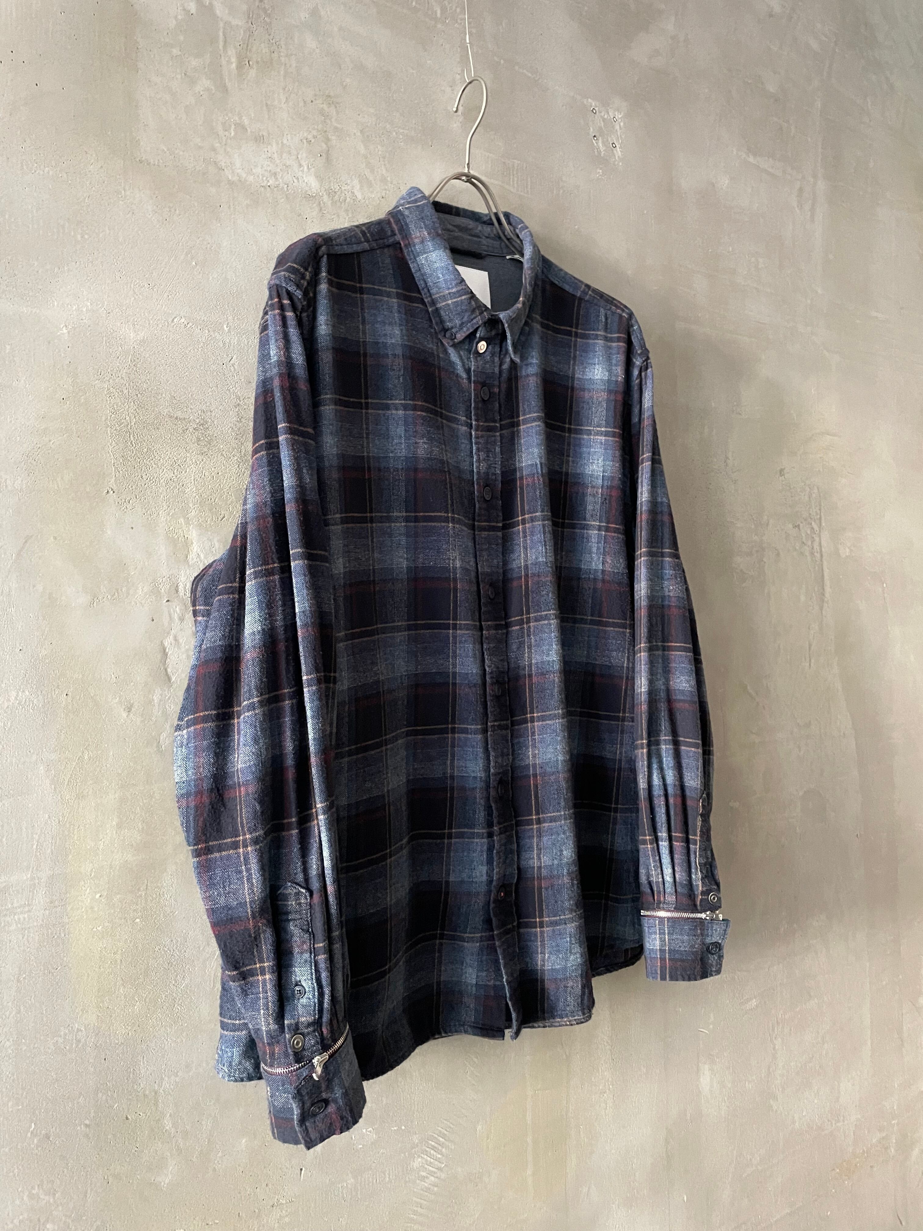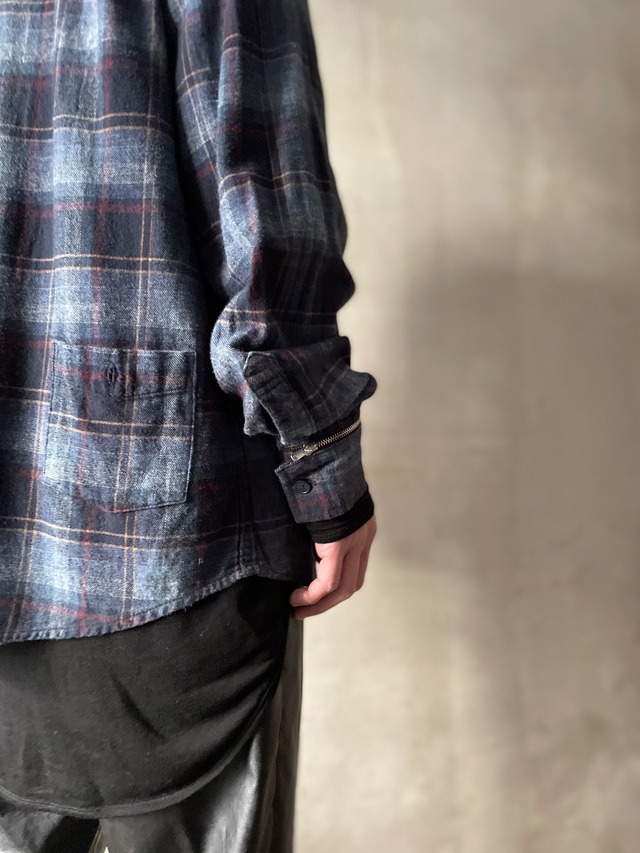 TrAnsference zip cuffs button down check shirt