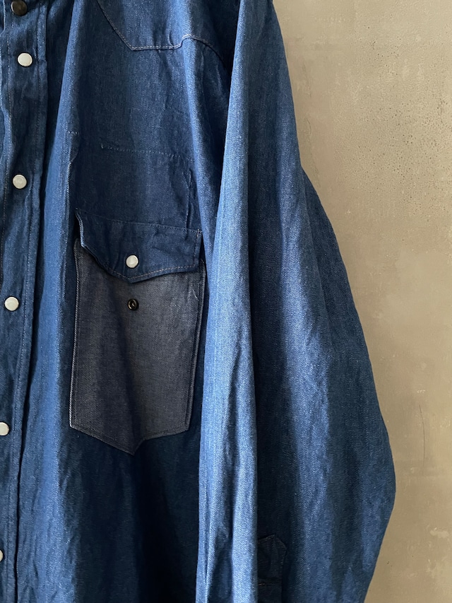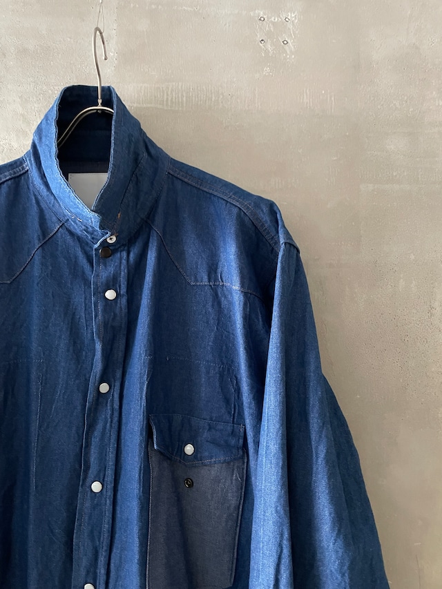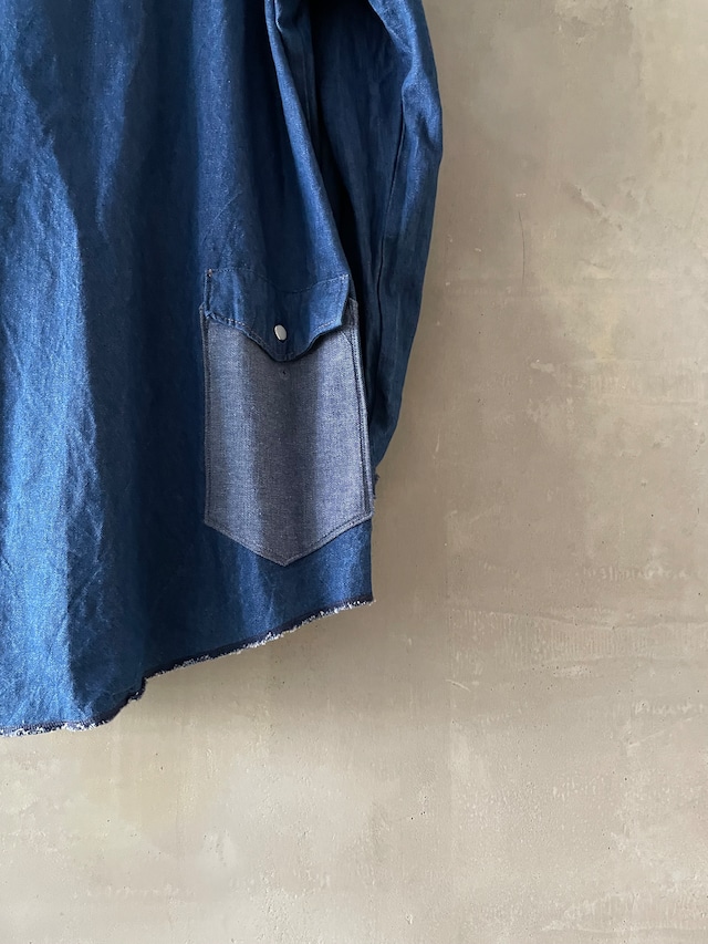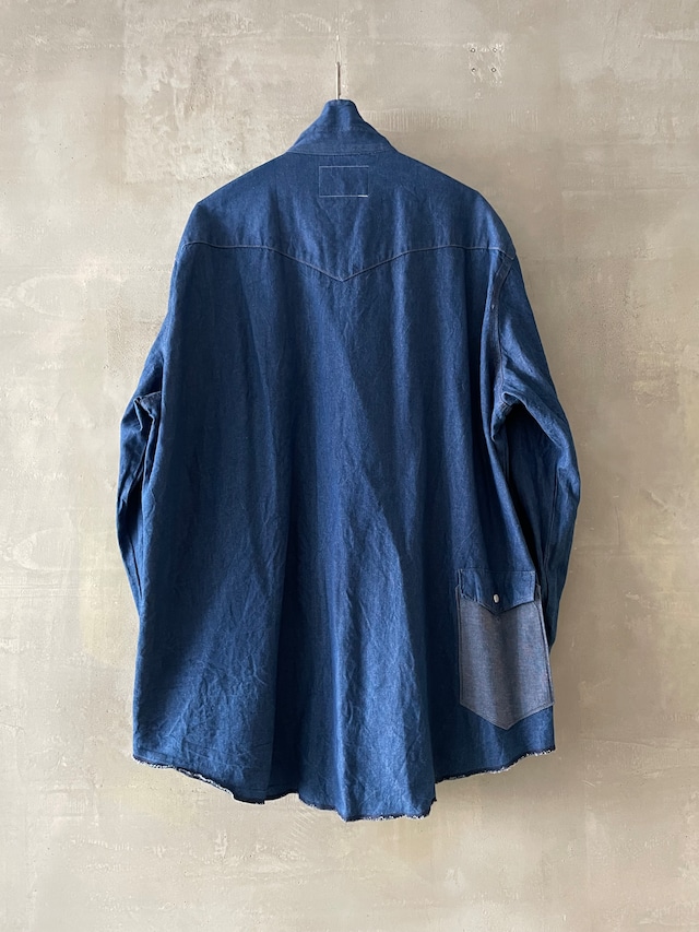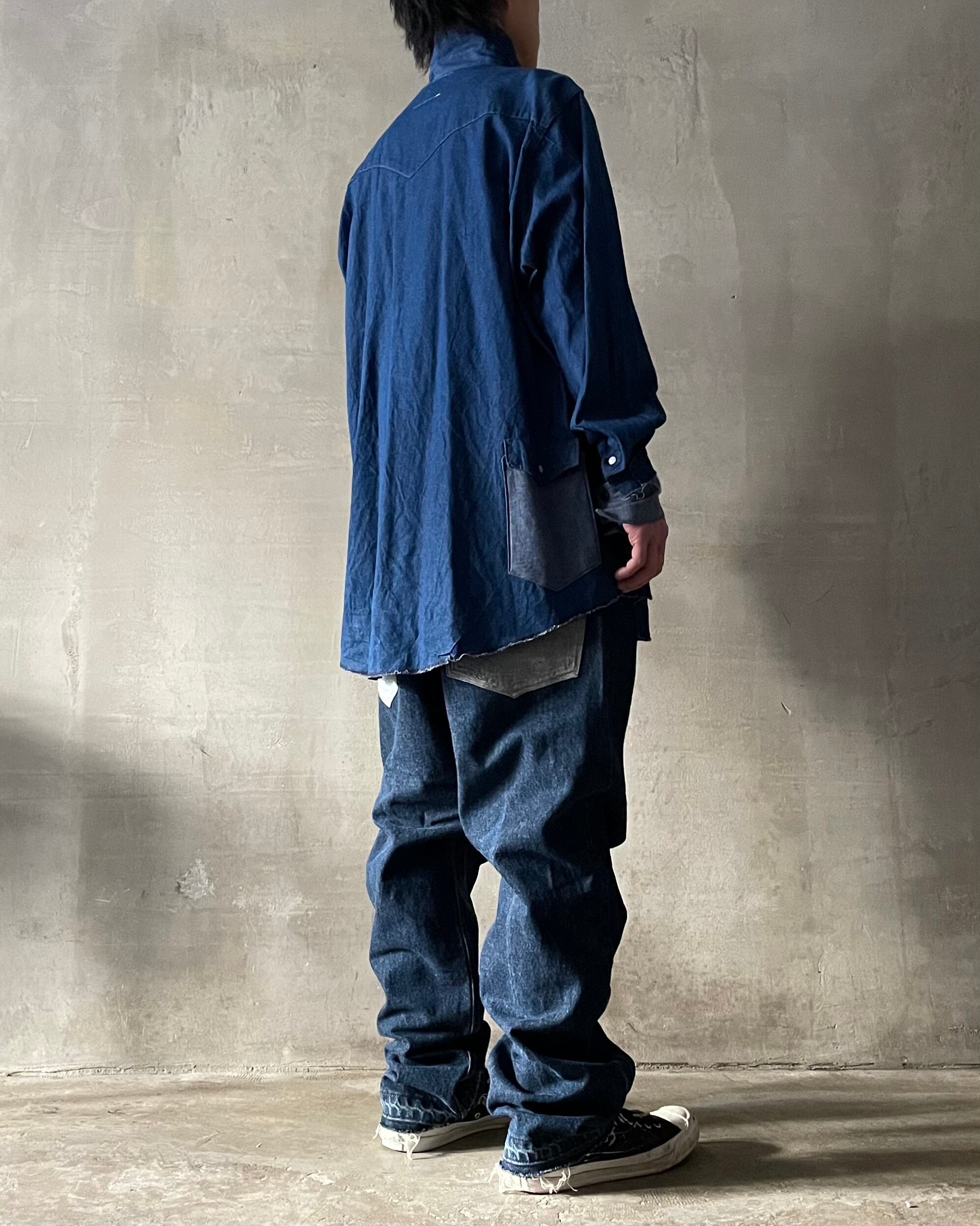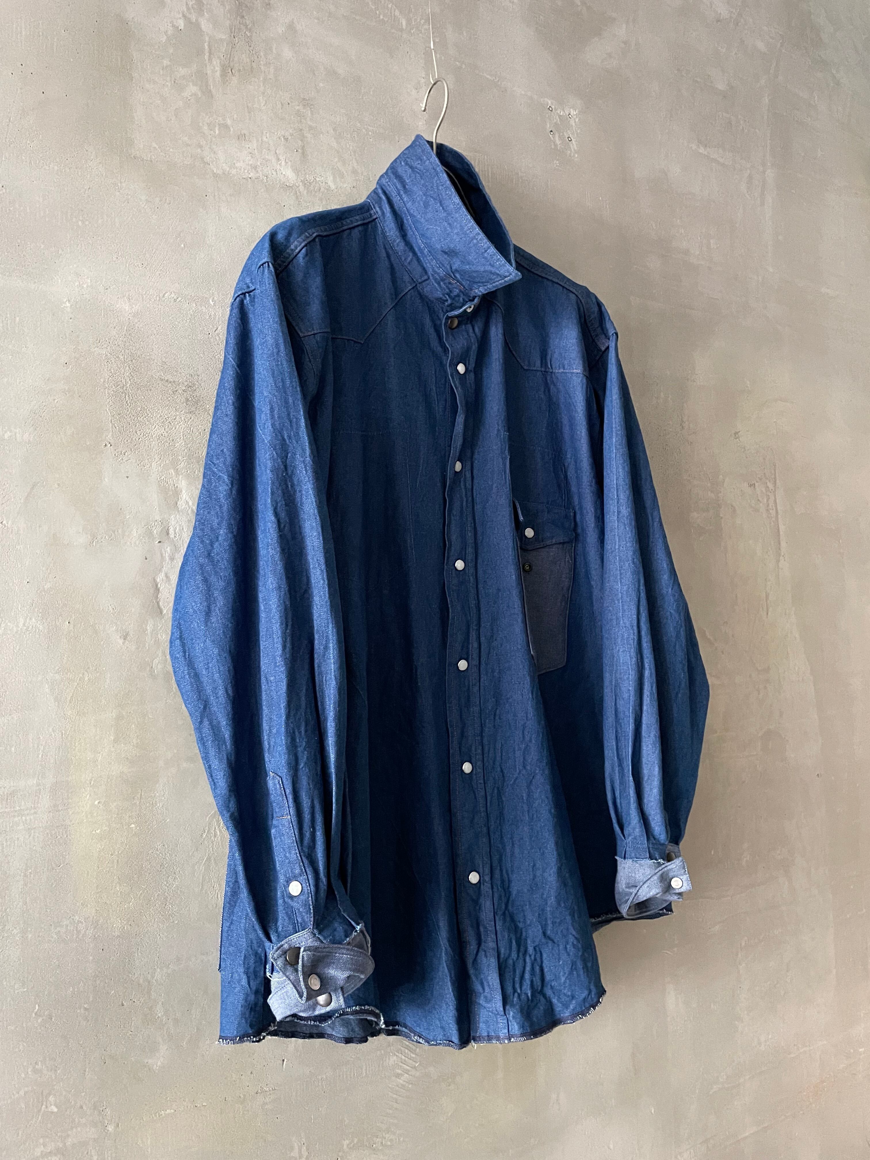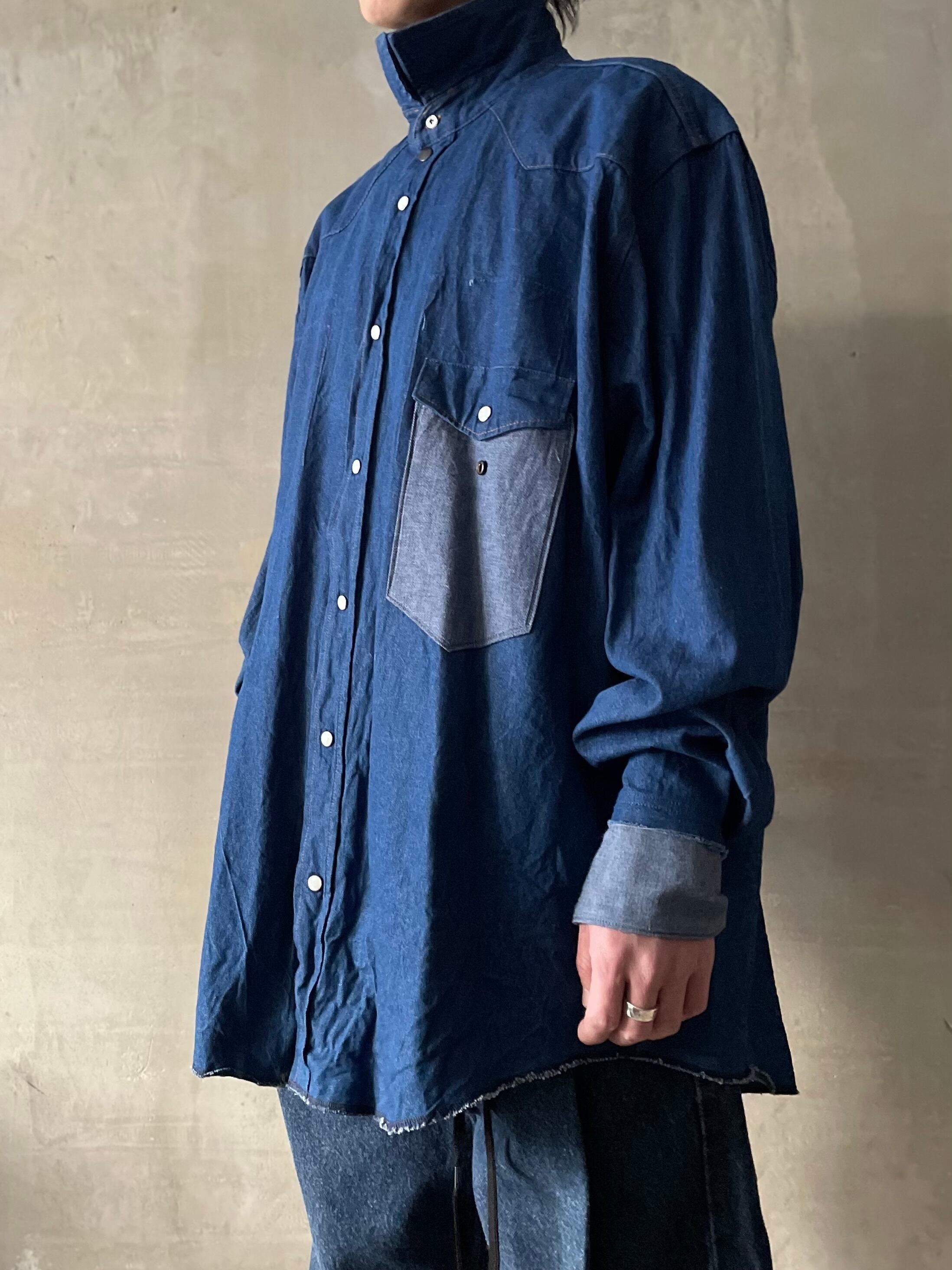 TrAnsference inverted contrast parts western denim shirt - indigo