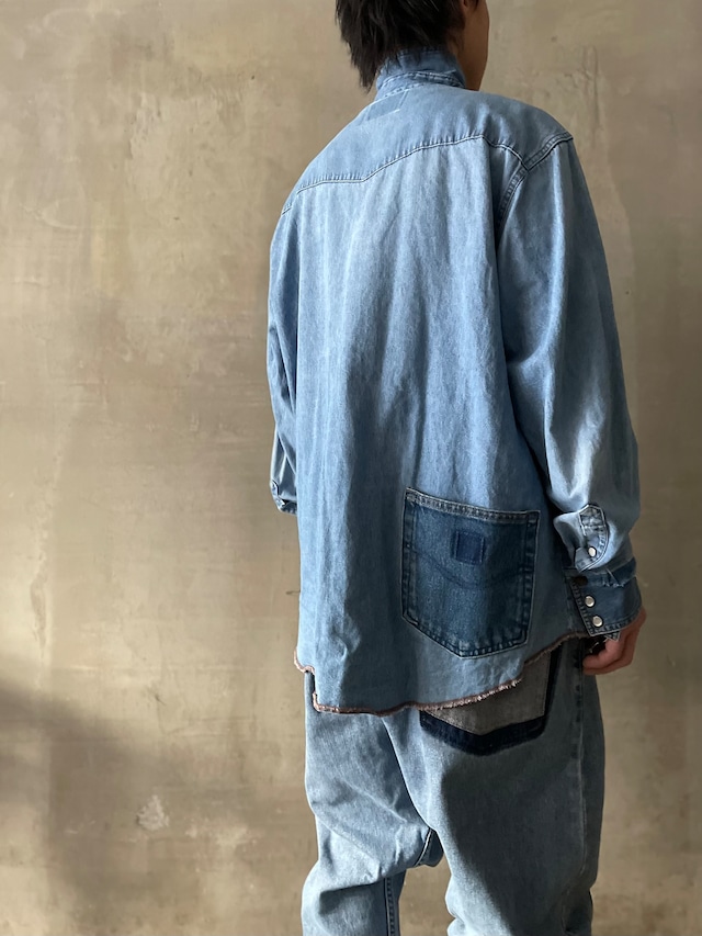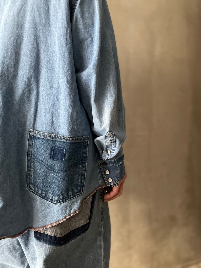TrAnsference reconstructed raw finish western denim shirt