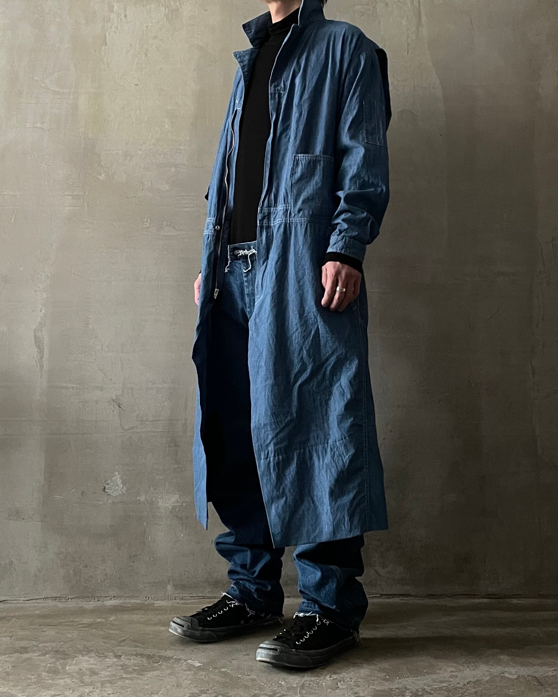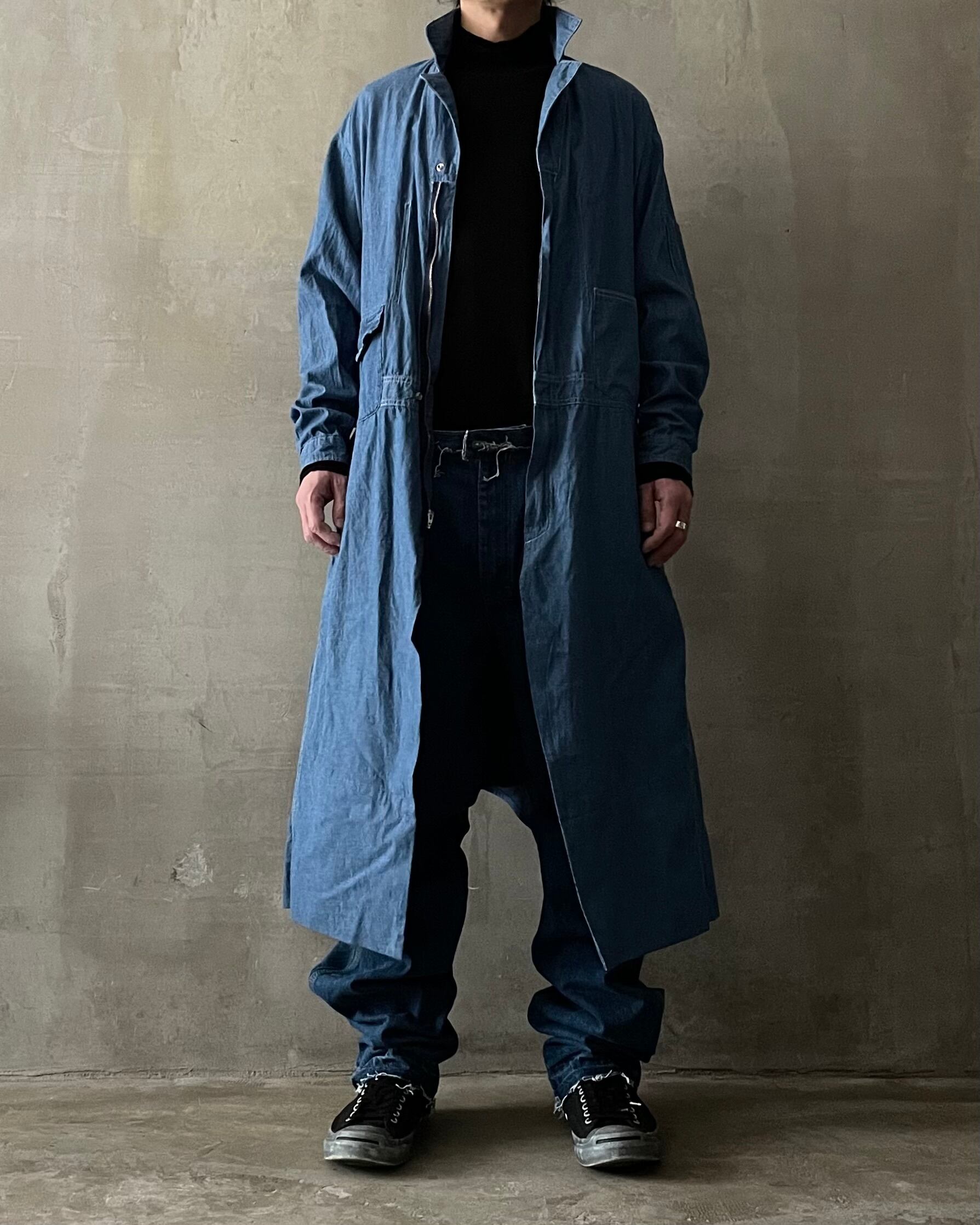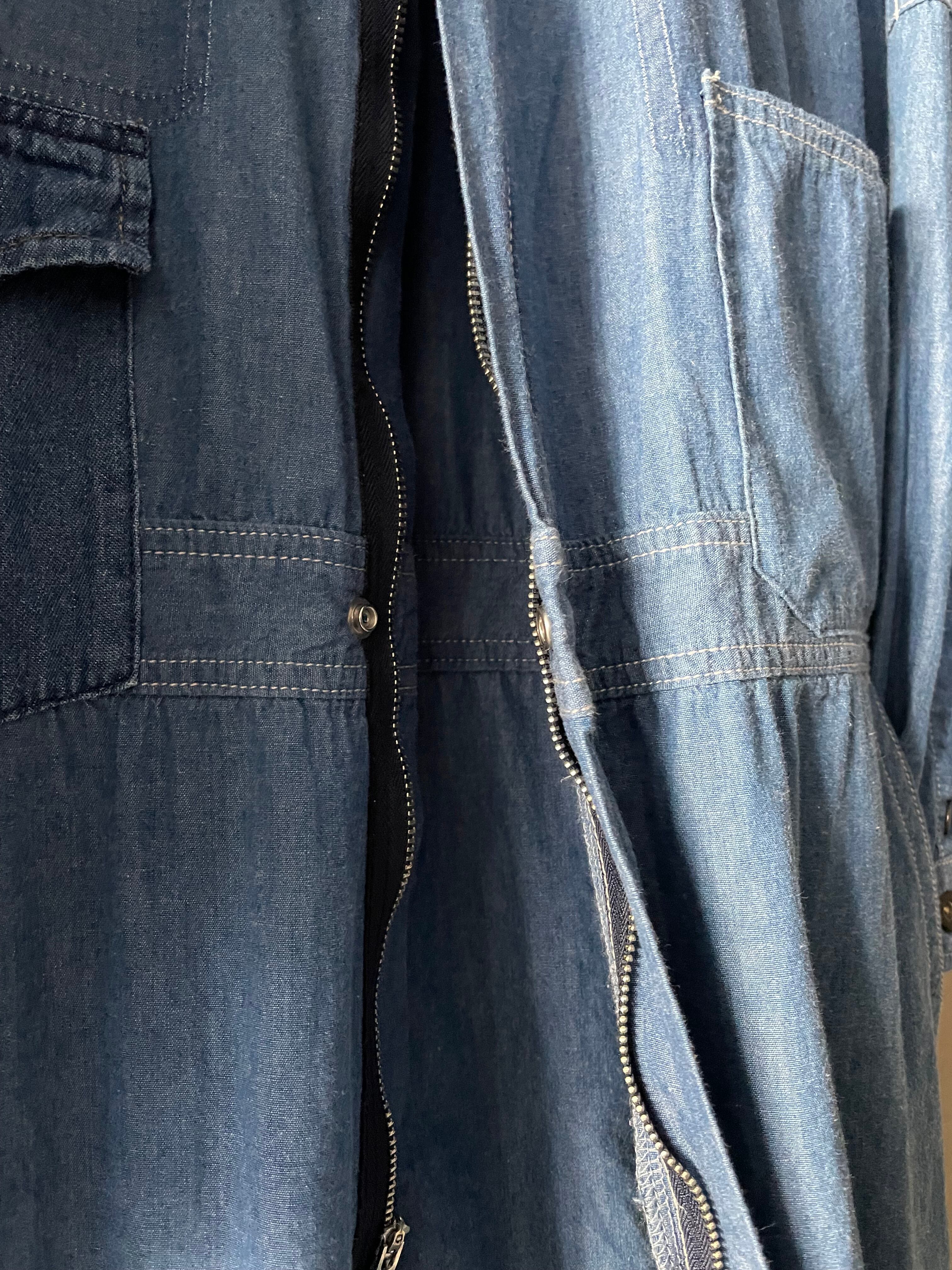 TrAnsference maxi jumpsuit denim coat