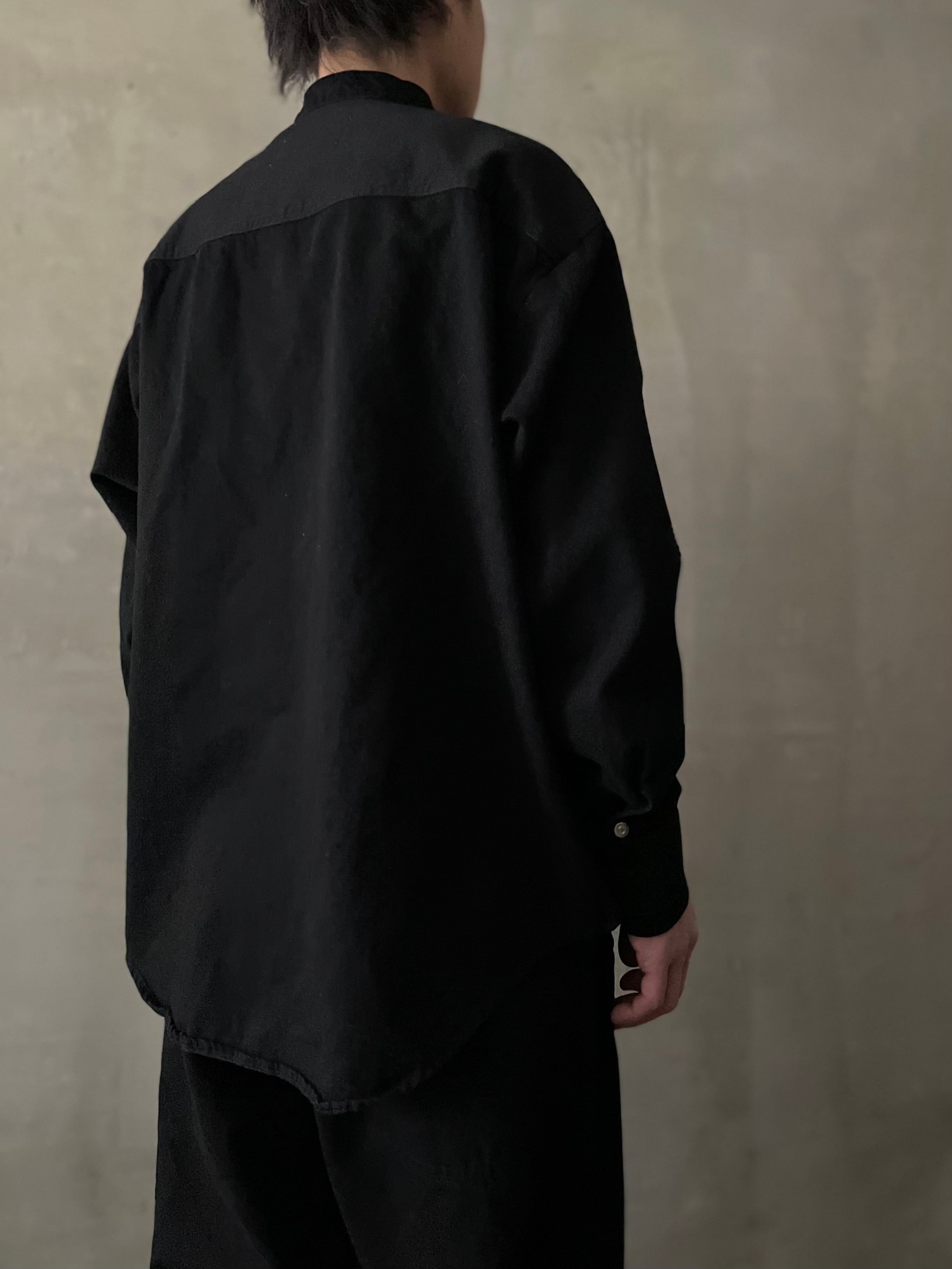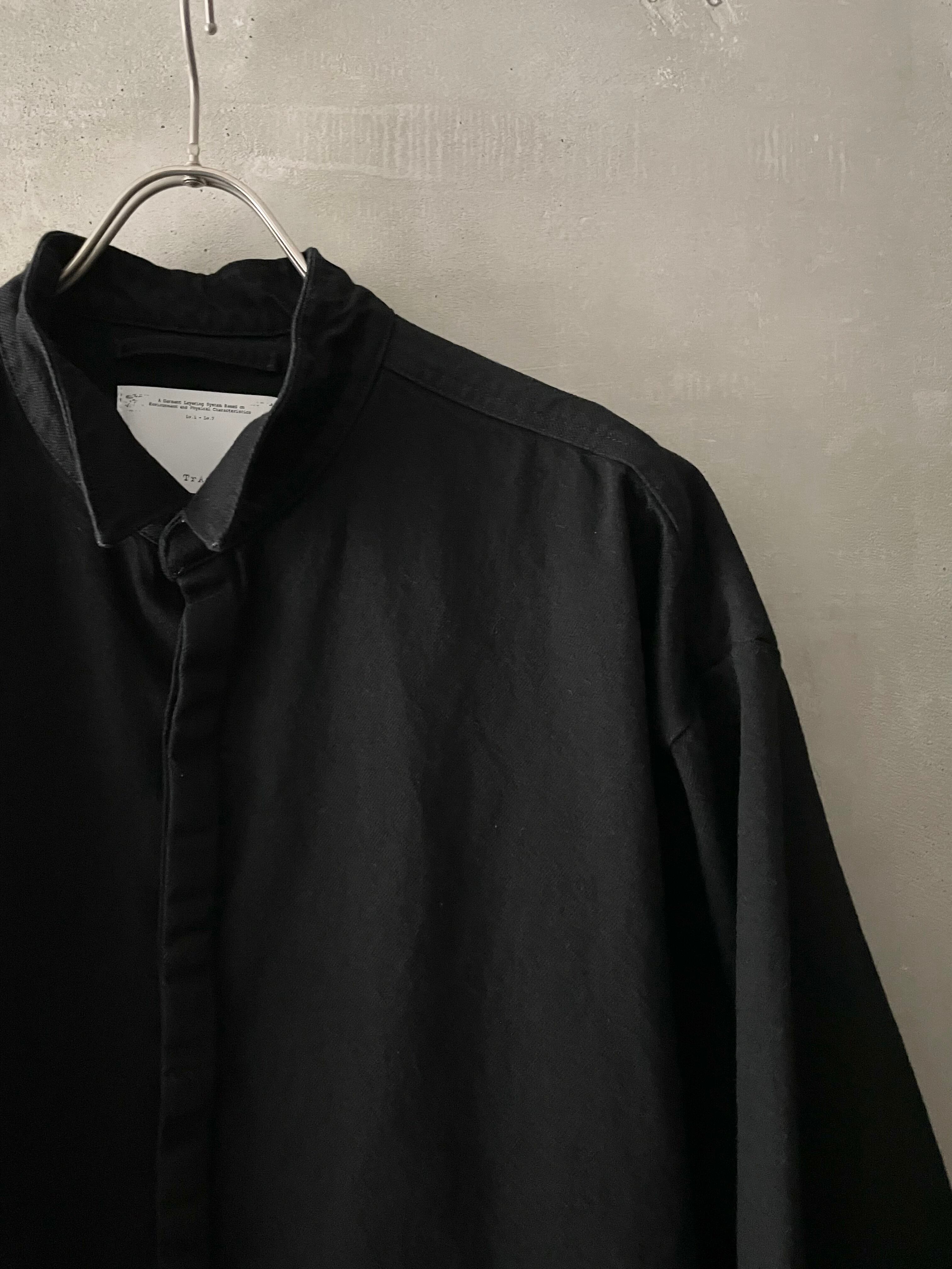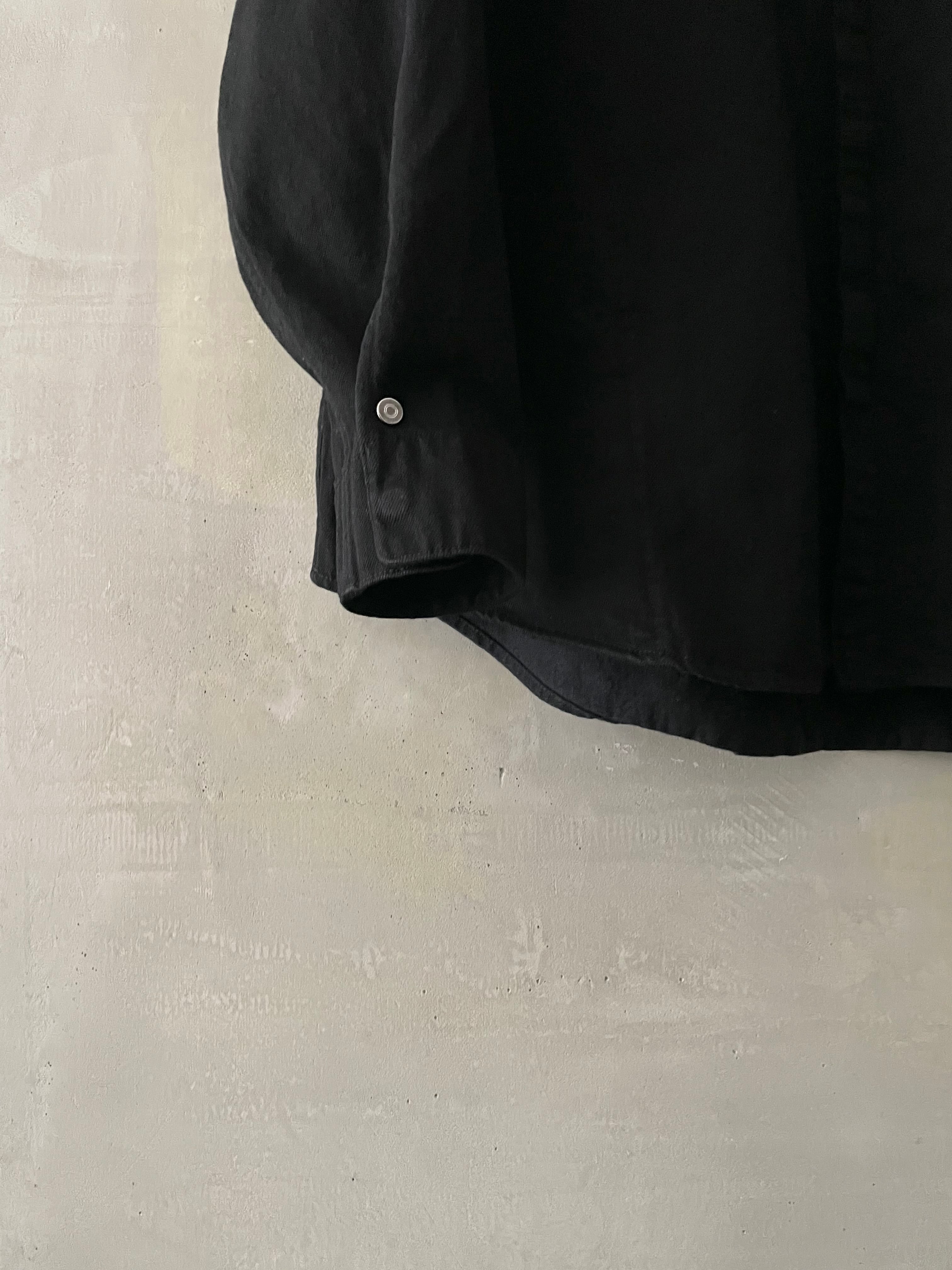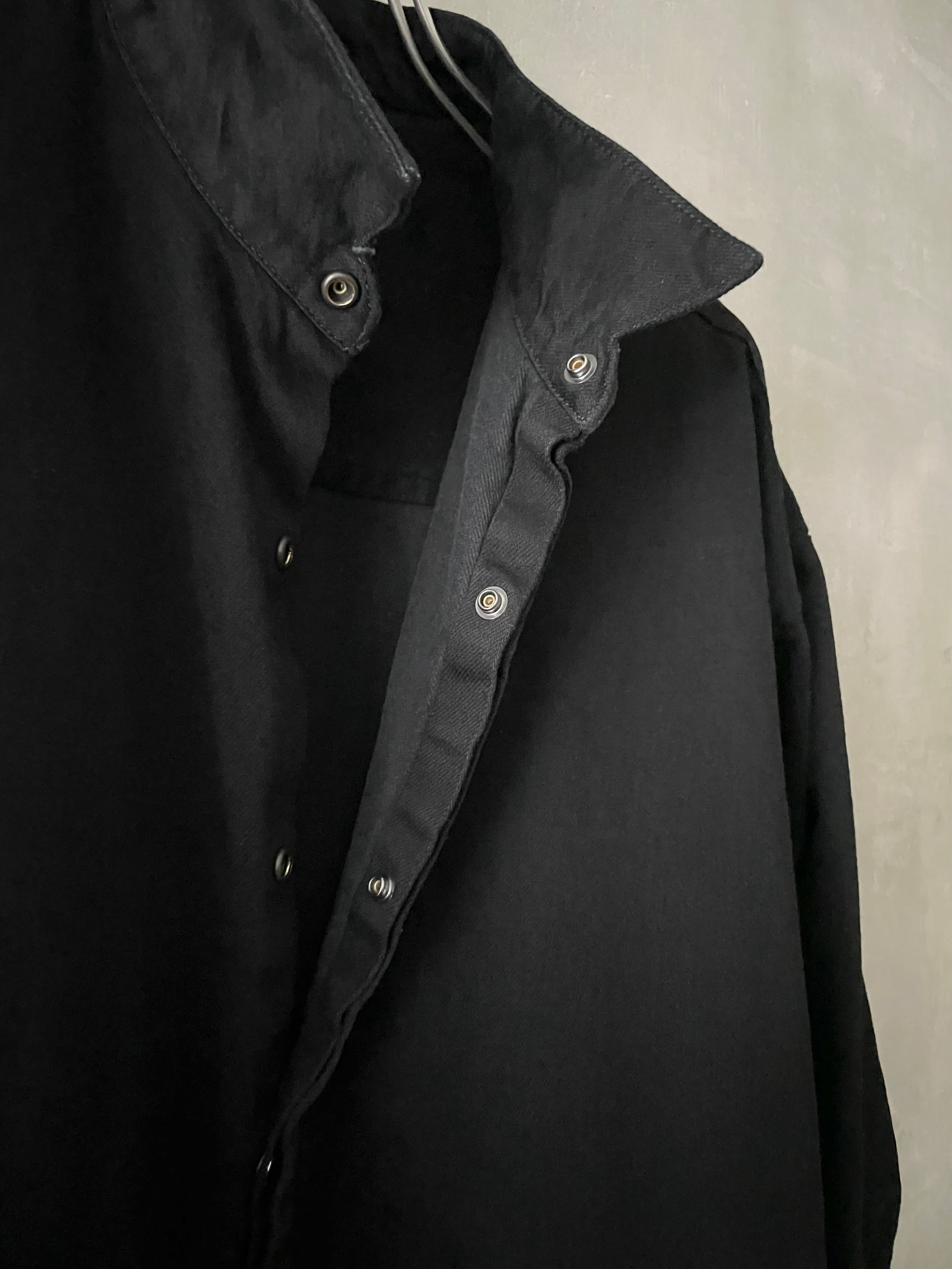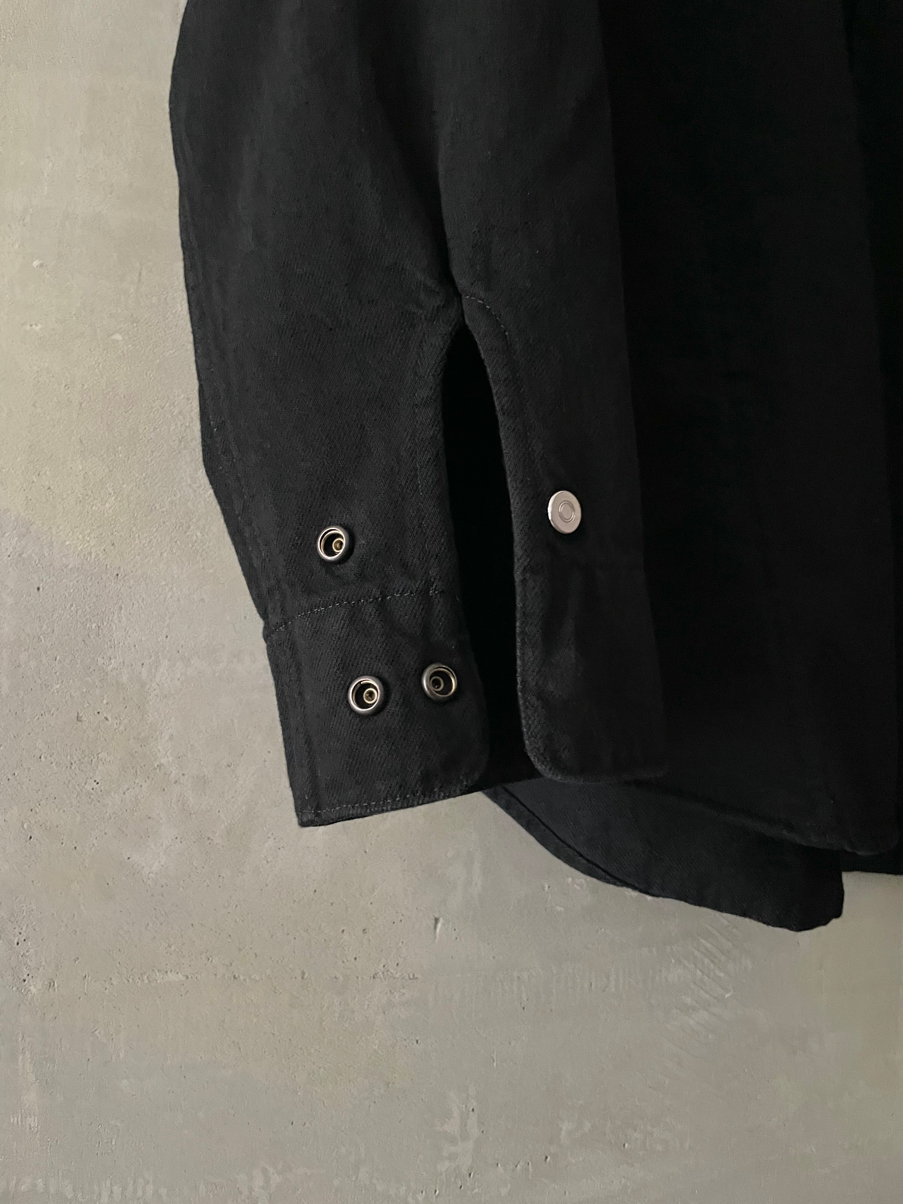 T/f Lv4 bio wash fly front dot button wing collar denim shirt - black