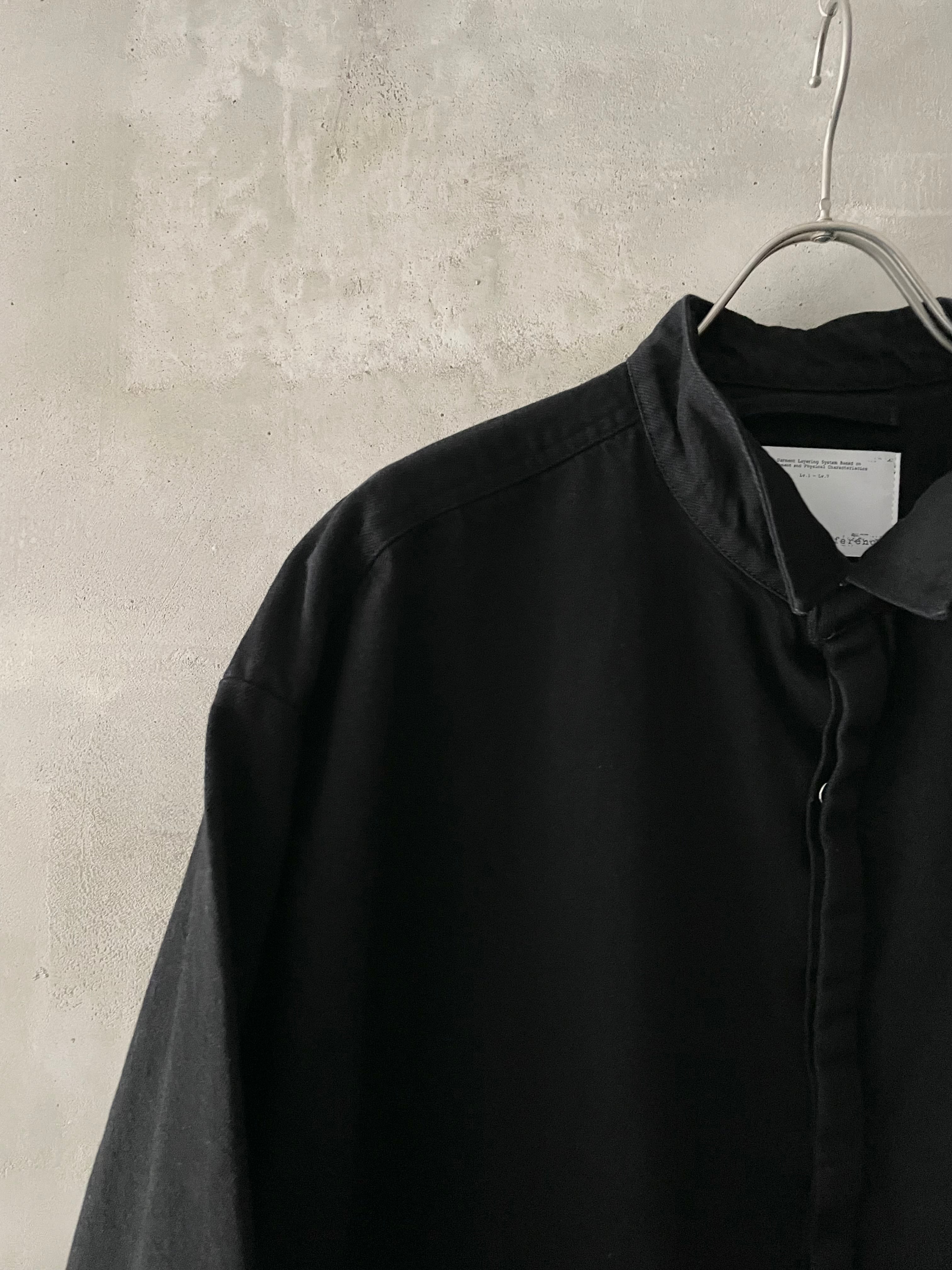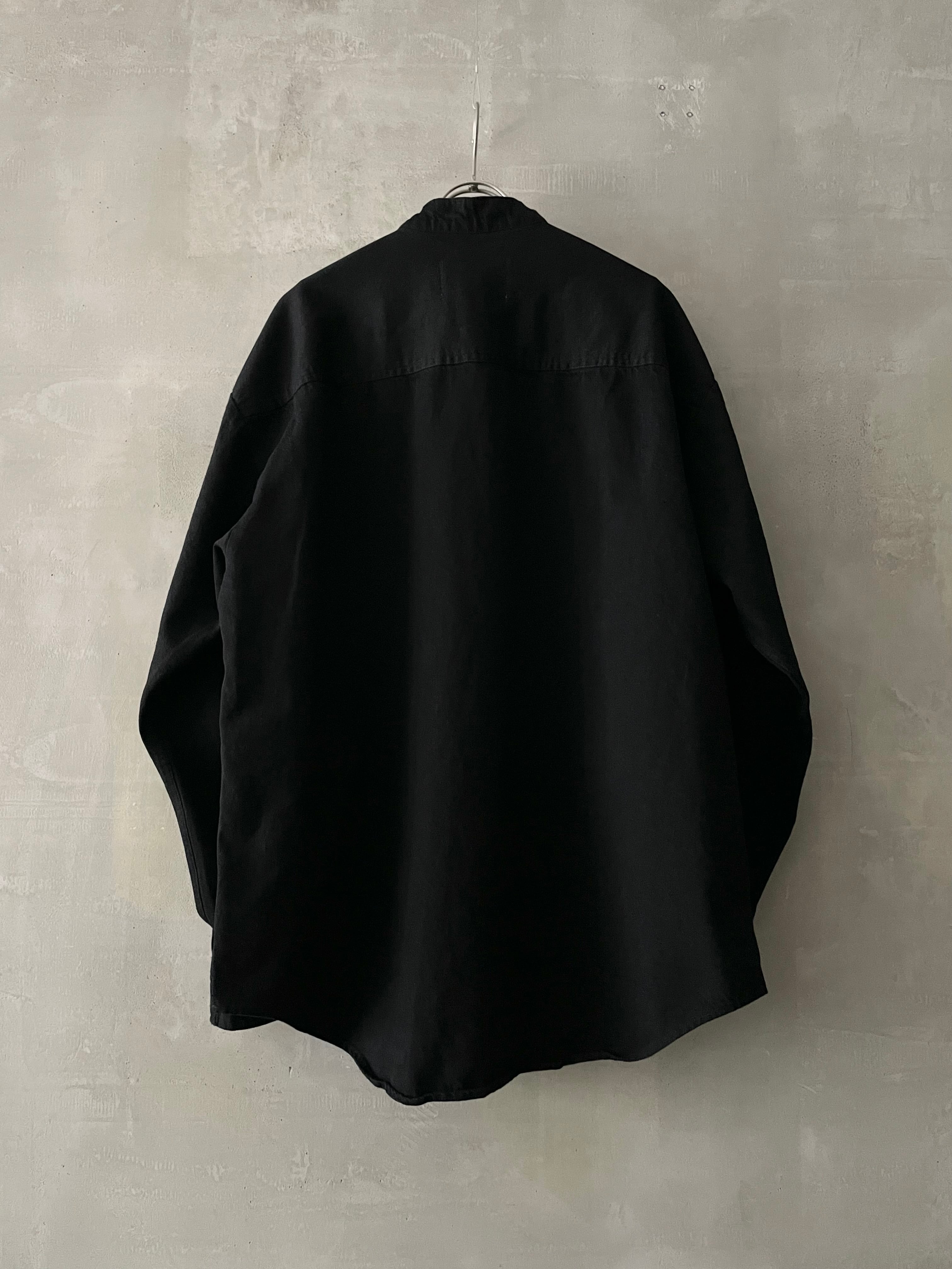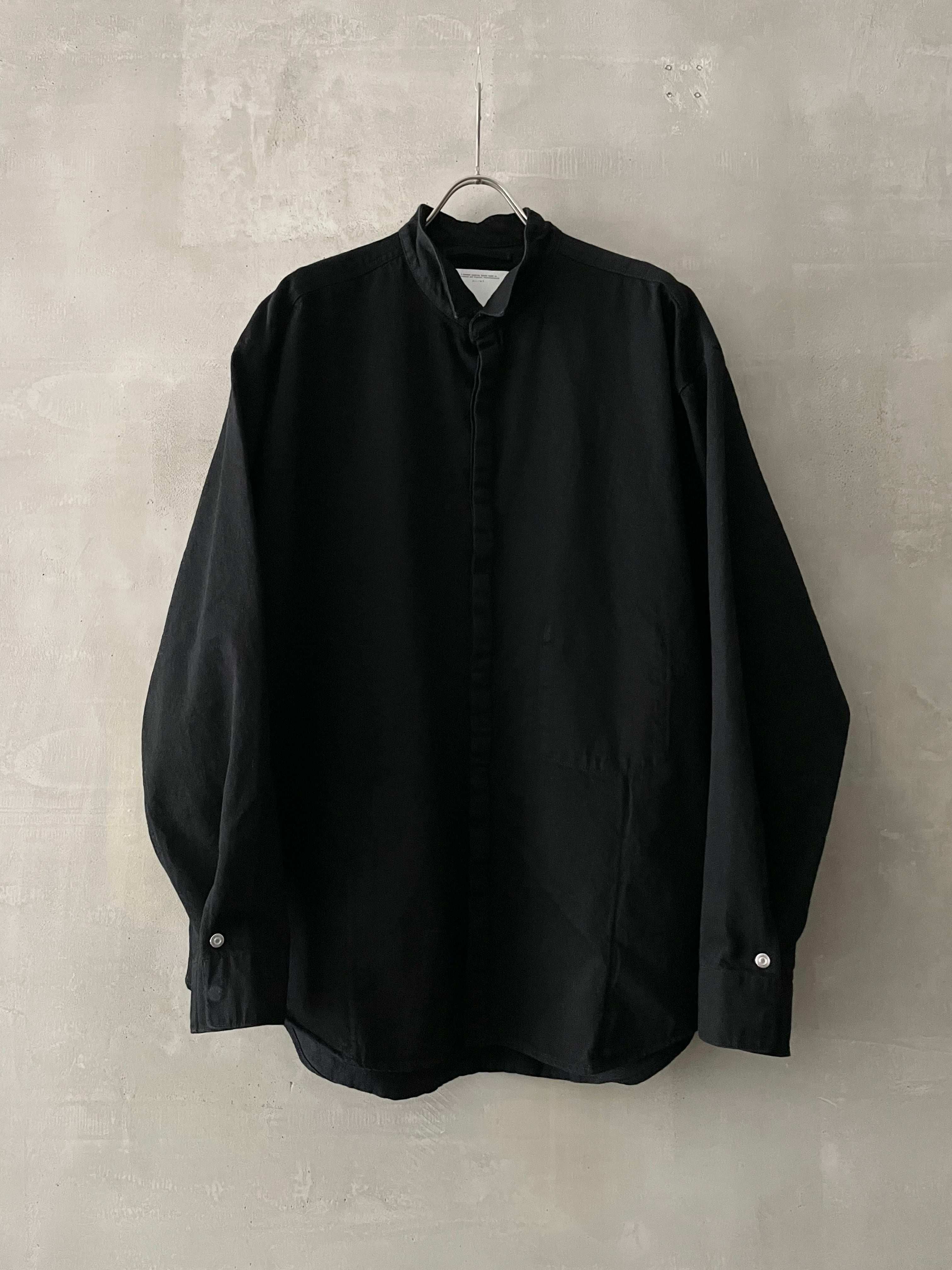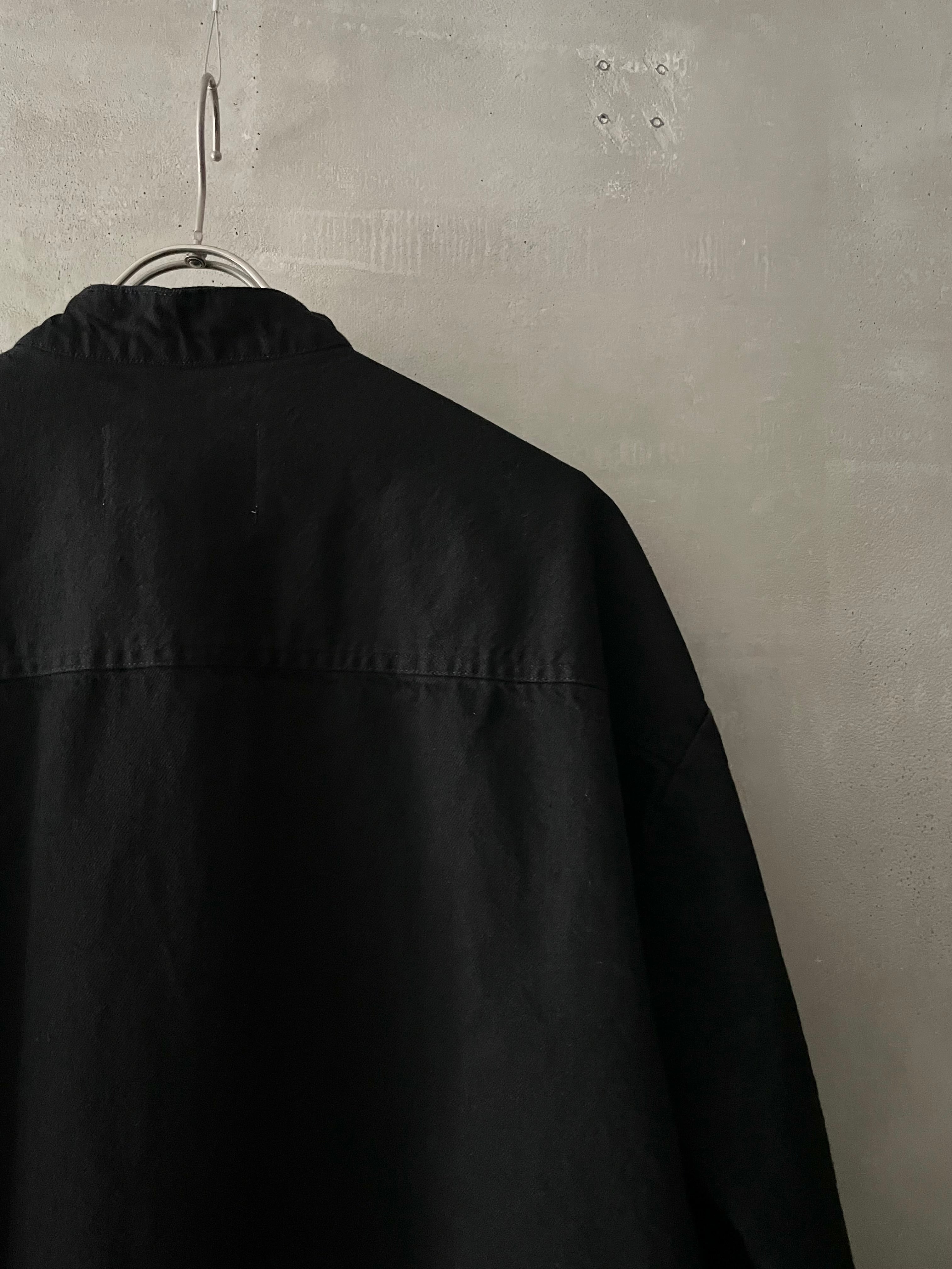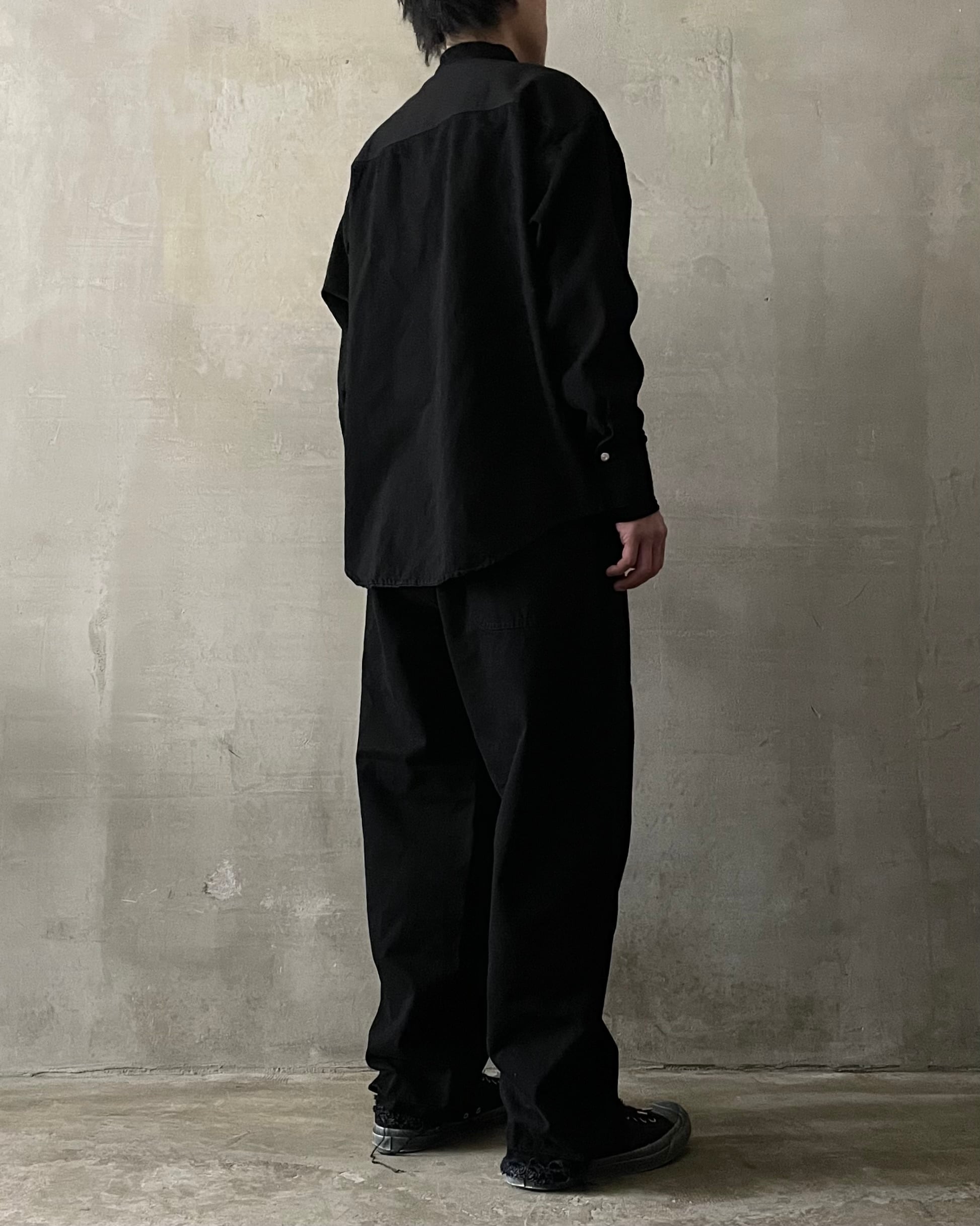T/f Lv4 bio wash fly front dot button wing collar denim shirt - black