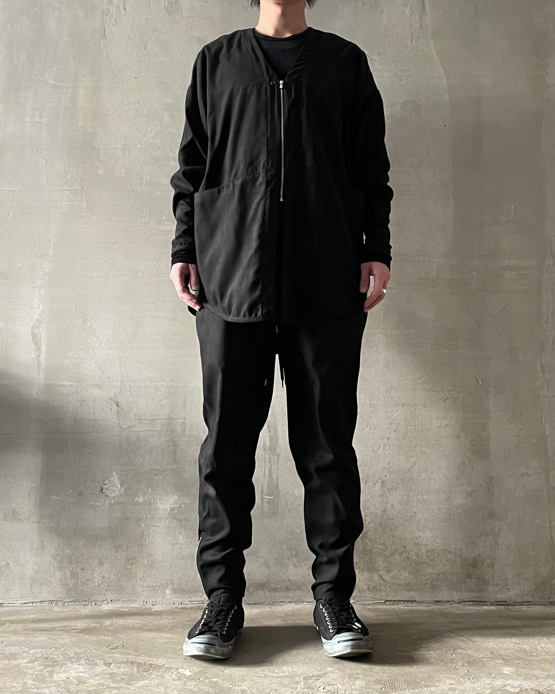 T/f LV6 tech suede loose fit zip cardigan - black