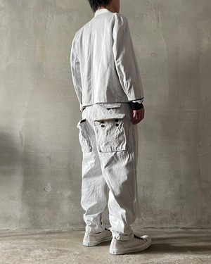 TrAnsference zip collarless cook jacket - past white garment dyed
