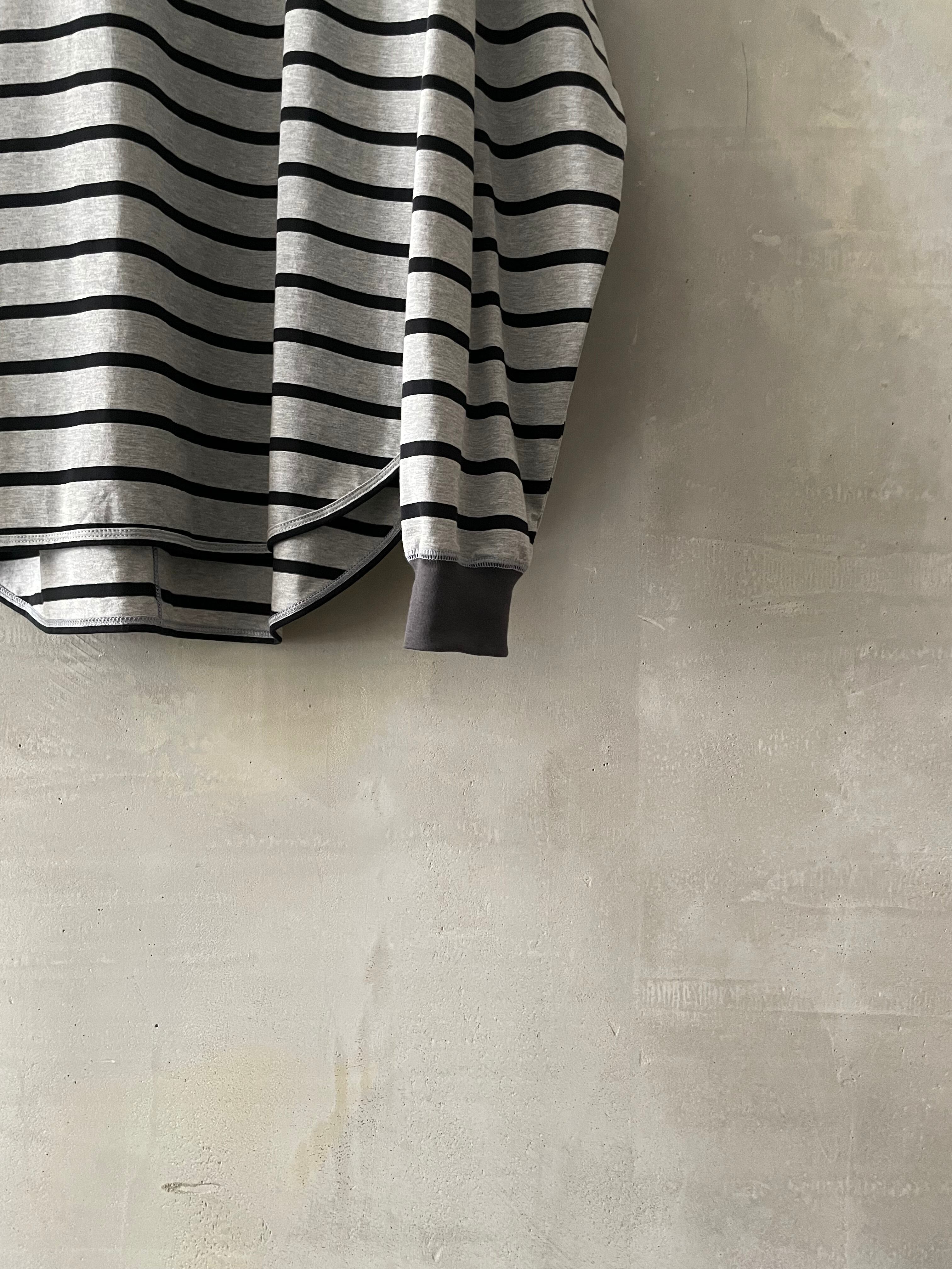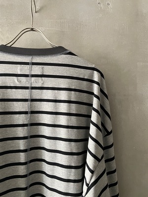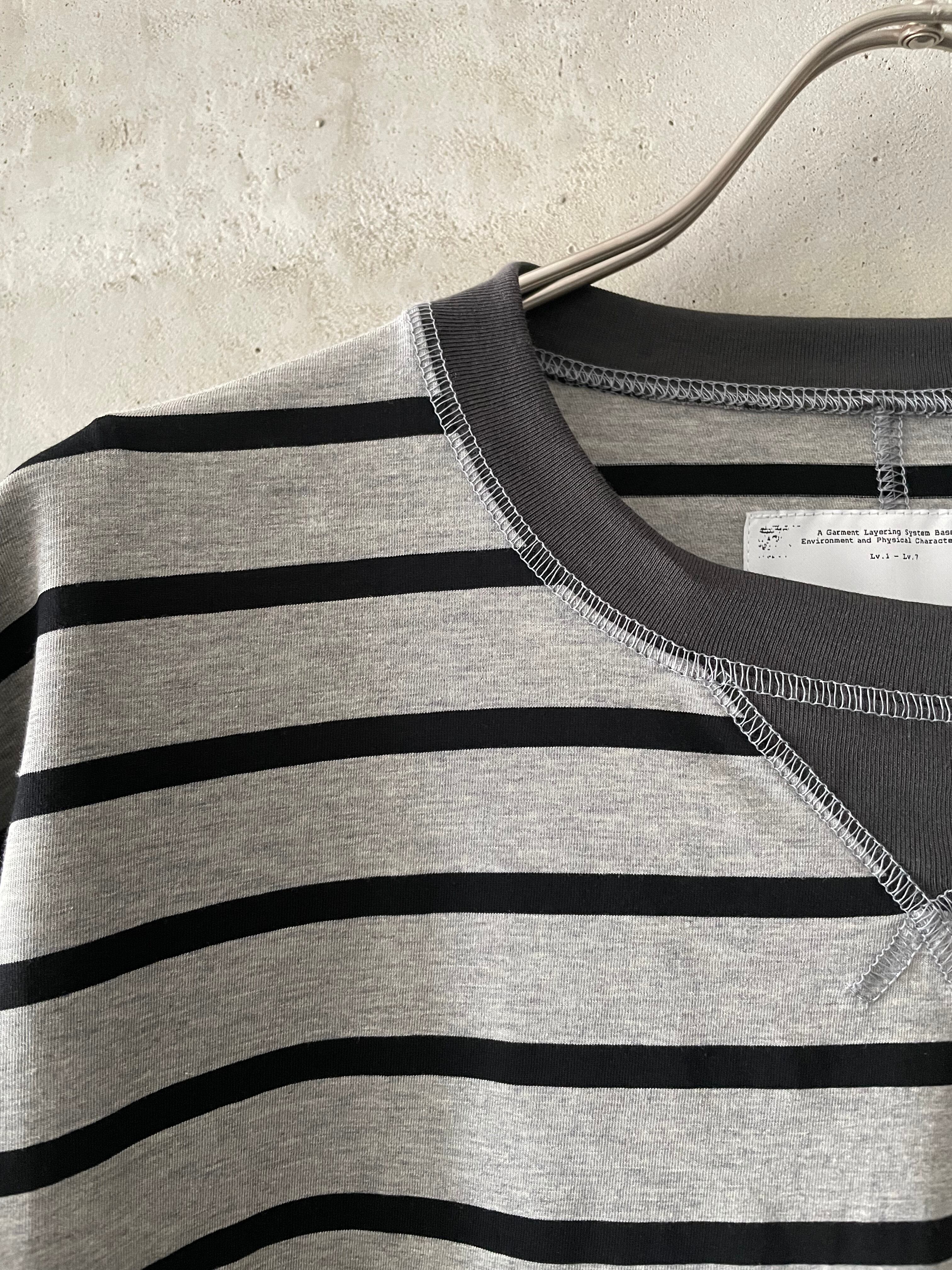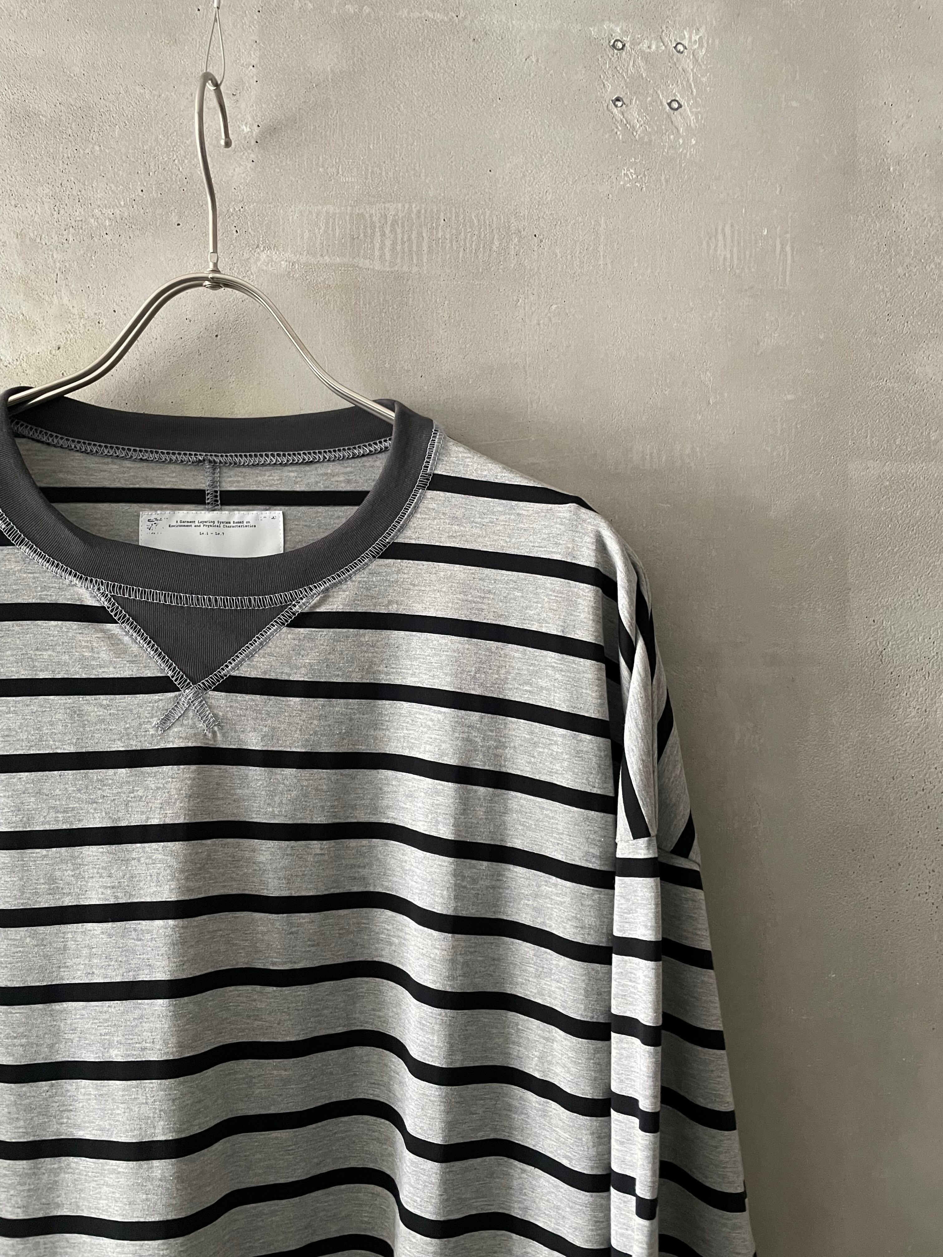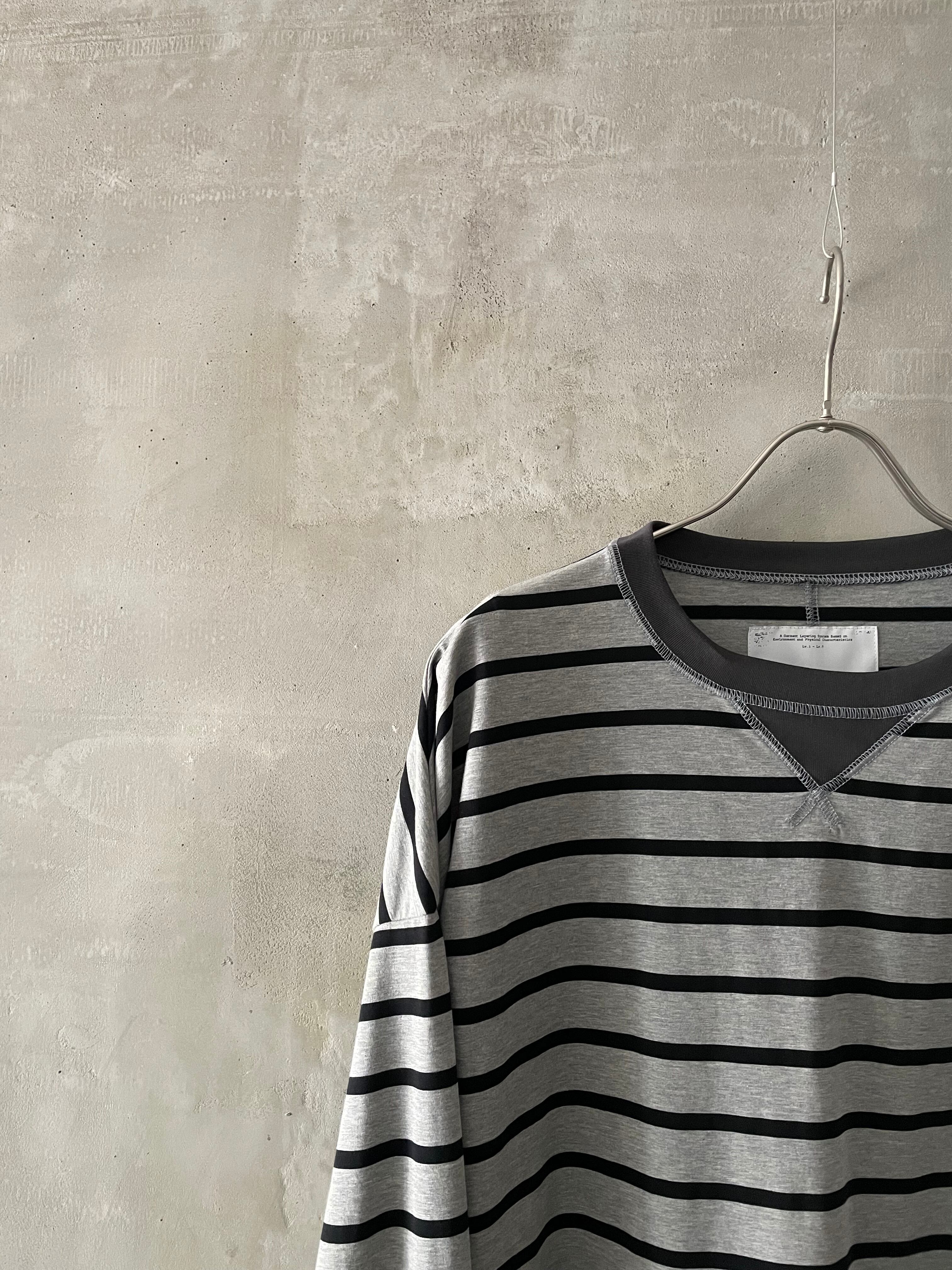 T/f Lv3 loose fit V-gusset crew neck striped top - combined gray
