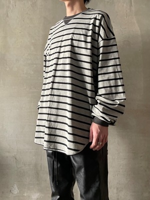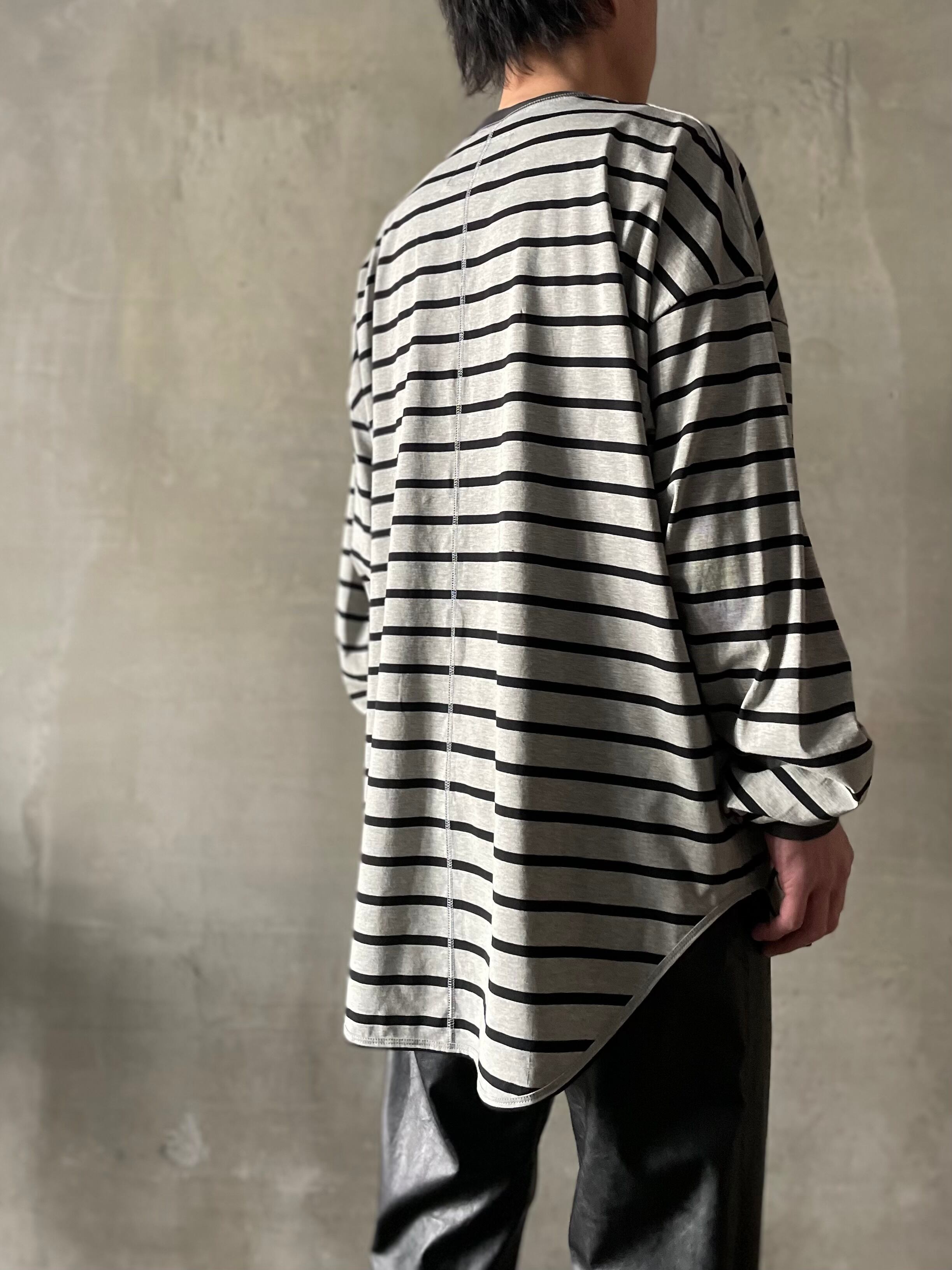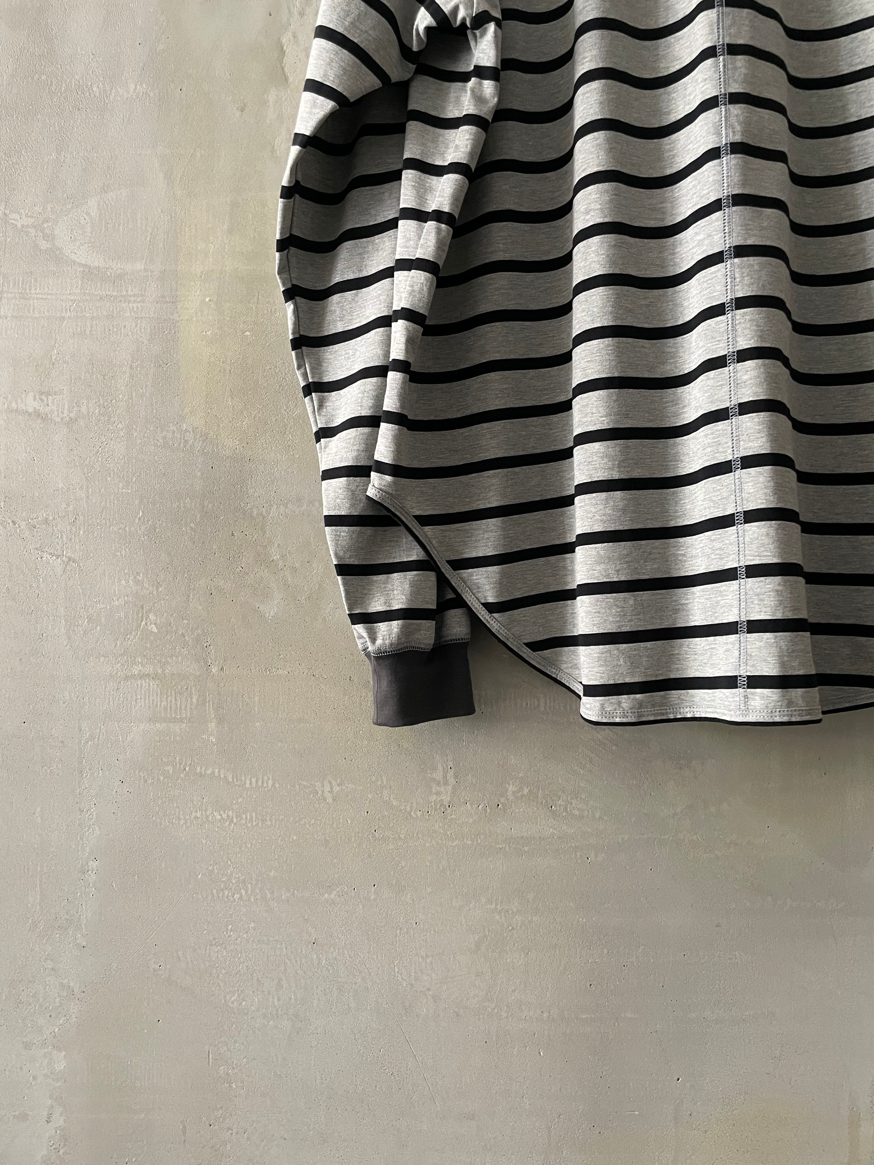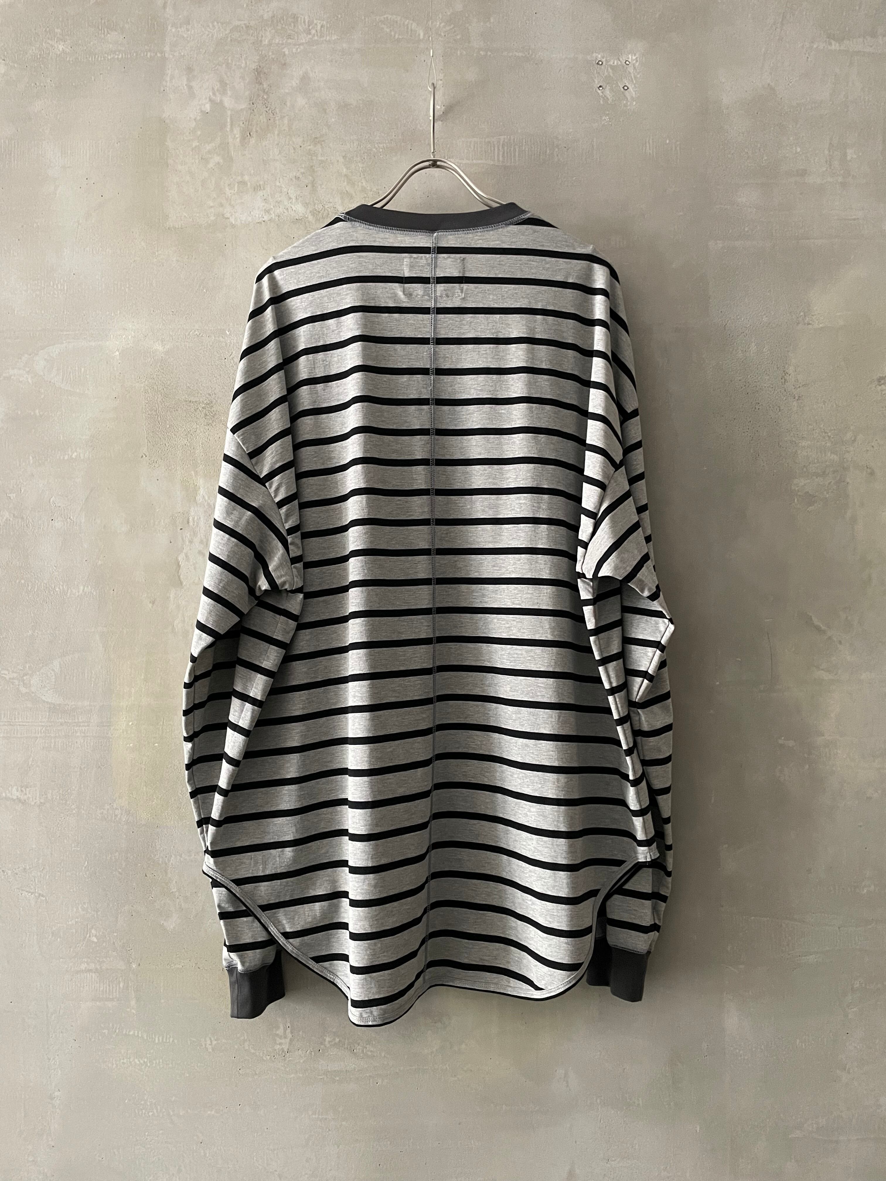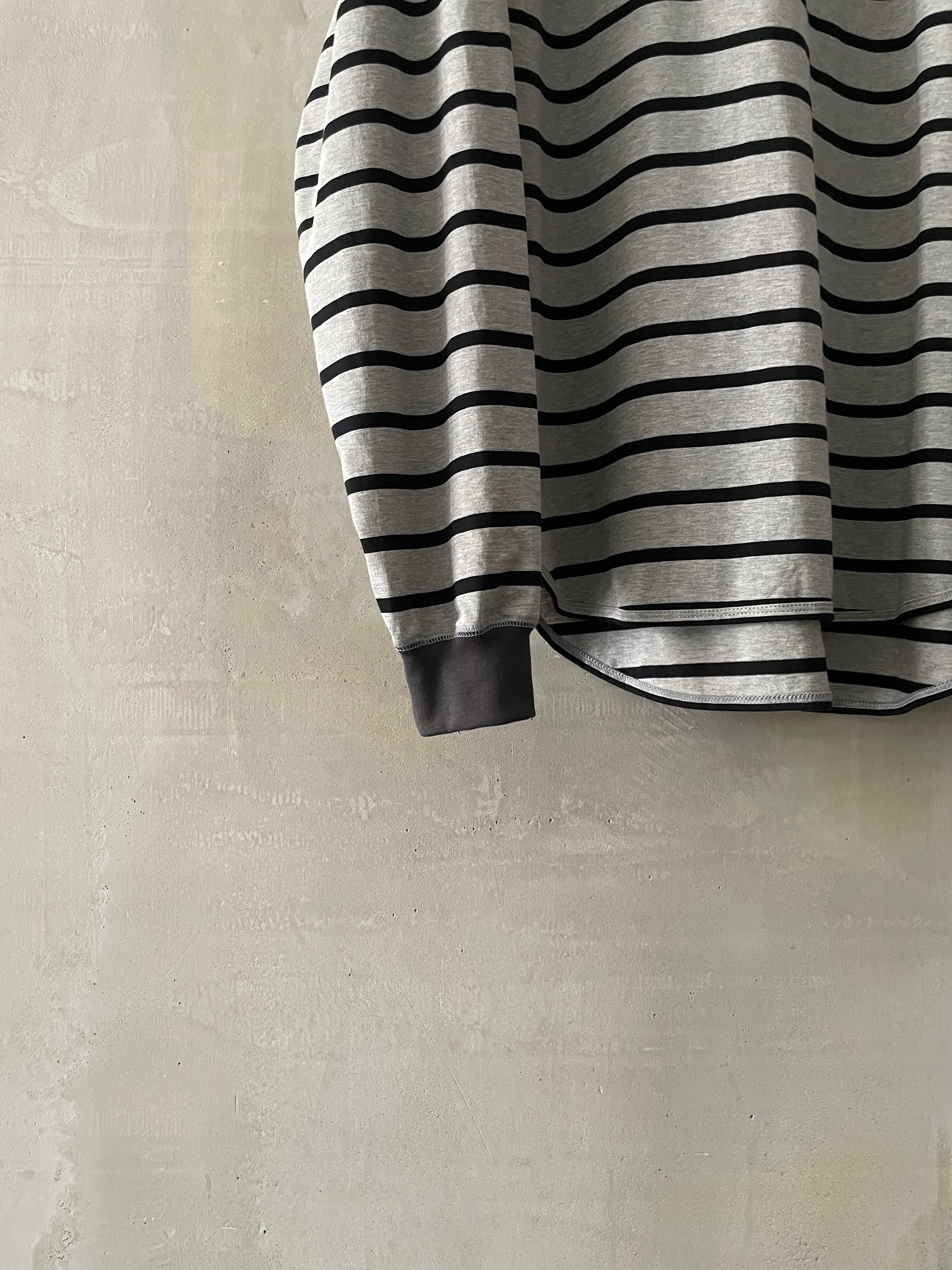 T/f Lv3 loose fit V-gusset crew neck striped top - combined gray