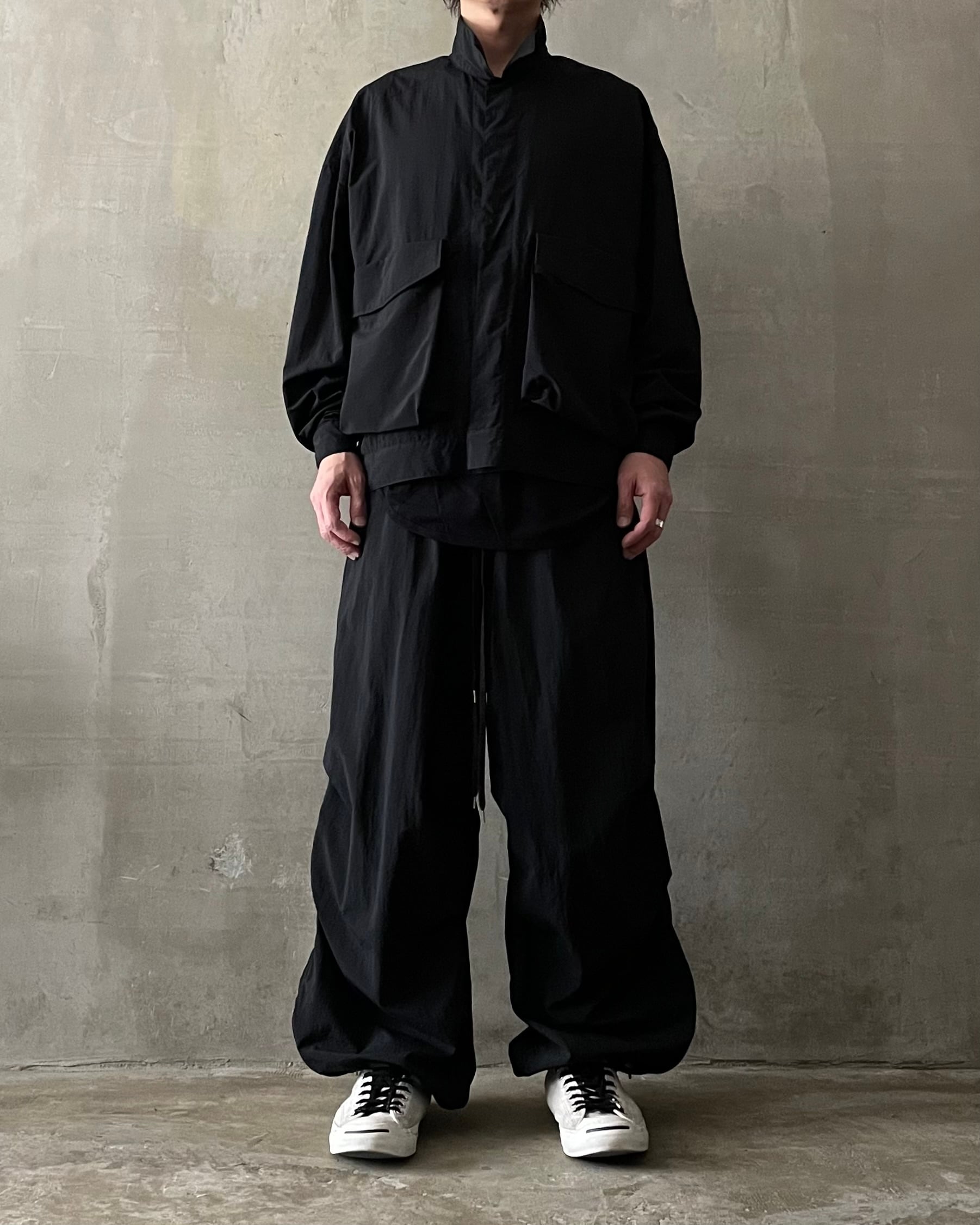 T/f Lv5 water repellent lightweight nylon out pockets blouson - black