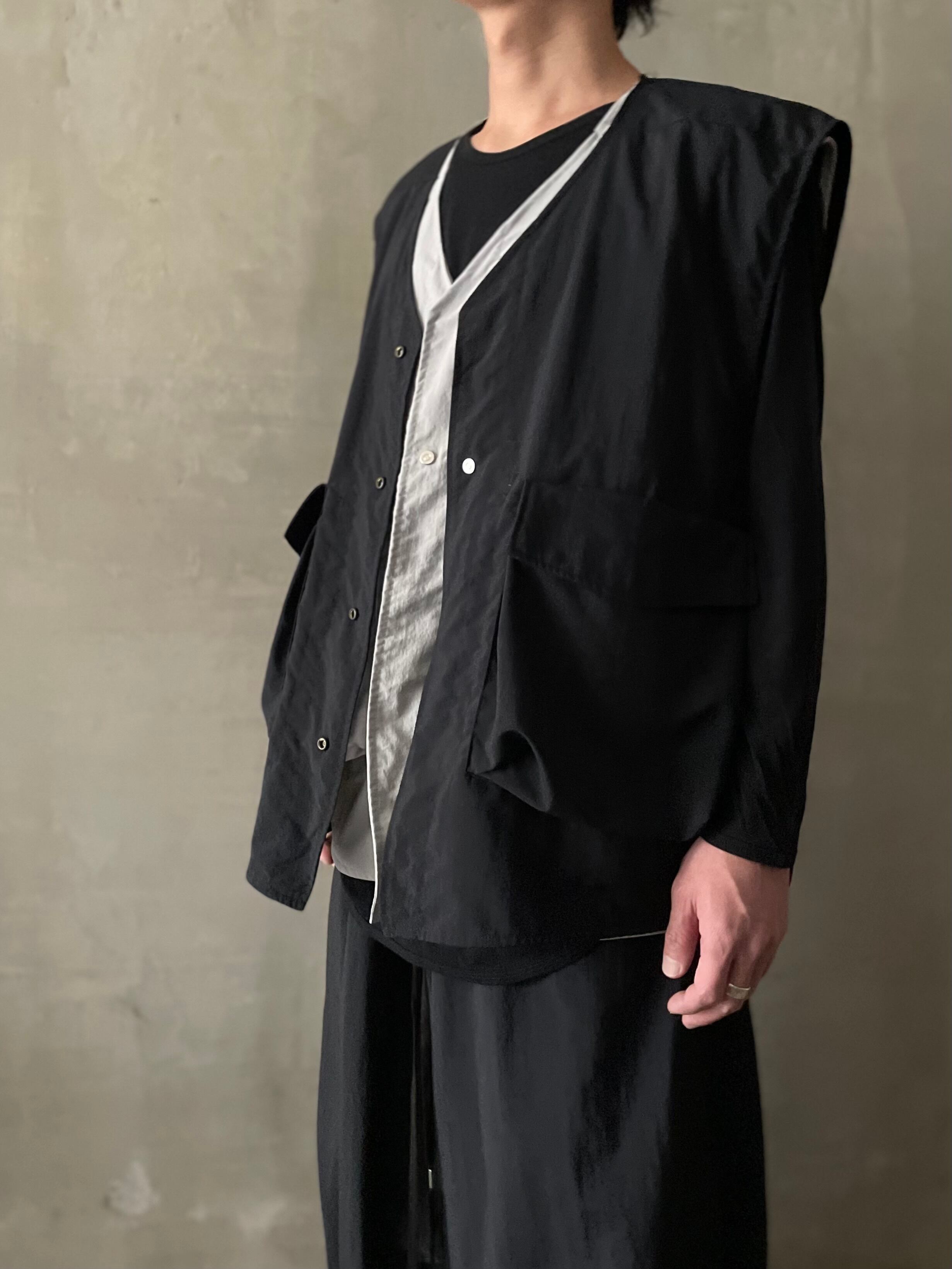 T/f Lv6 water repellent lightweight nylon multi pockets vest - black