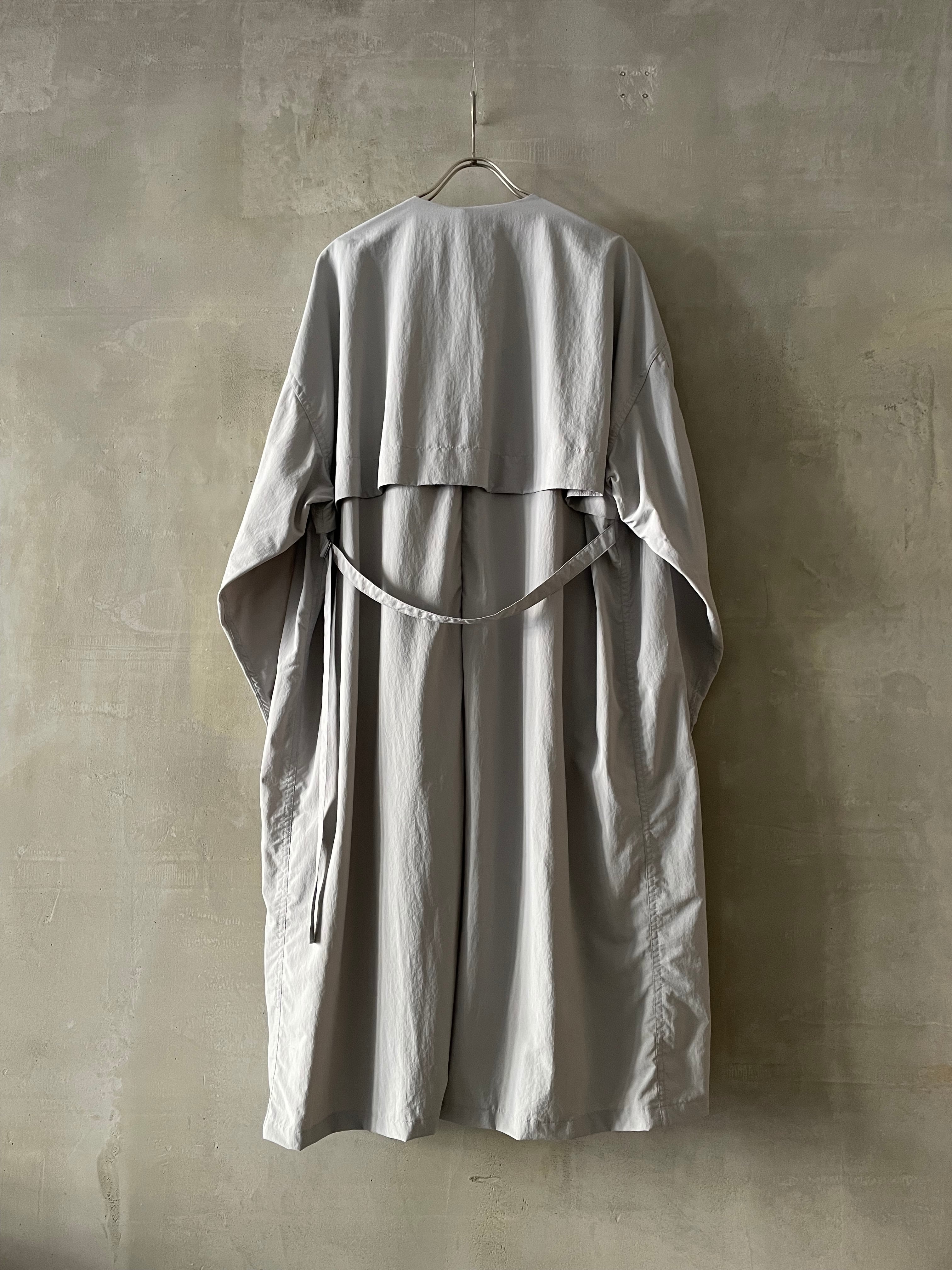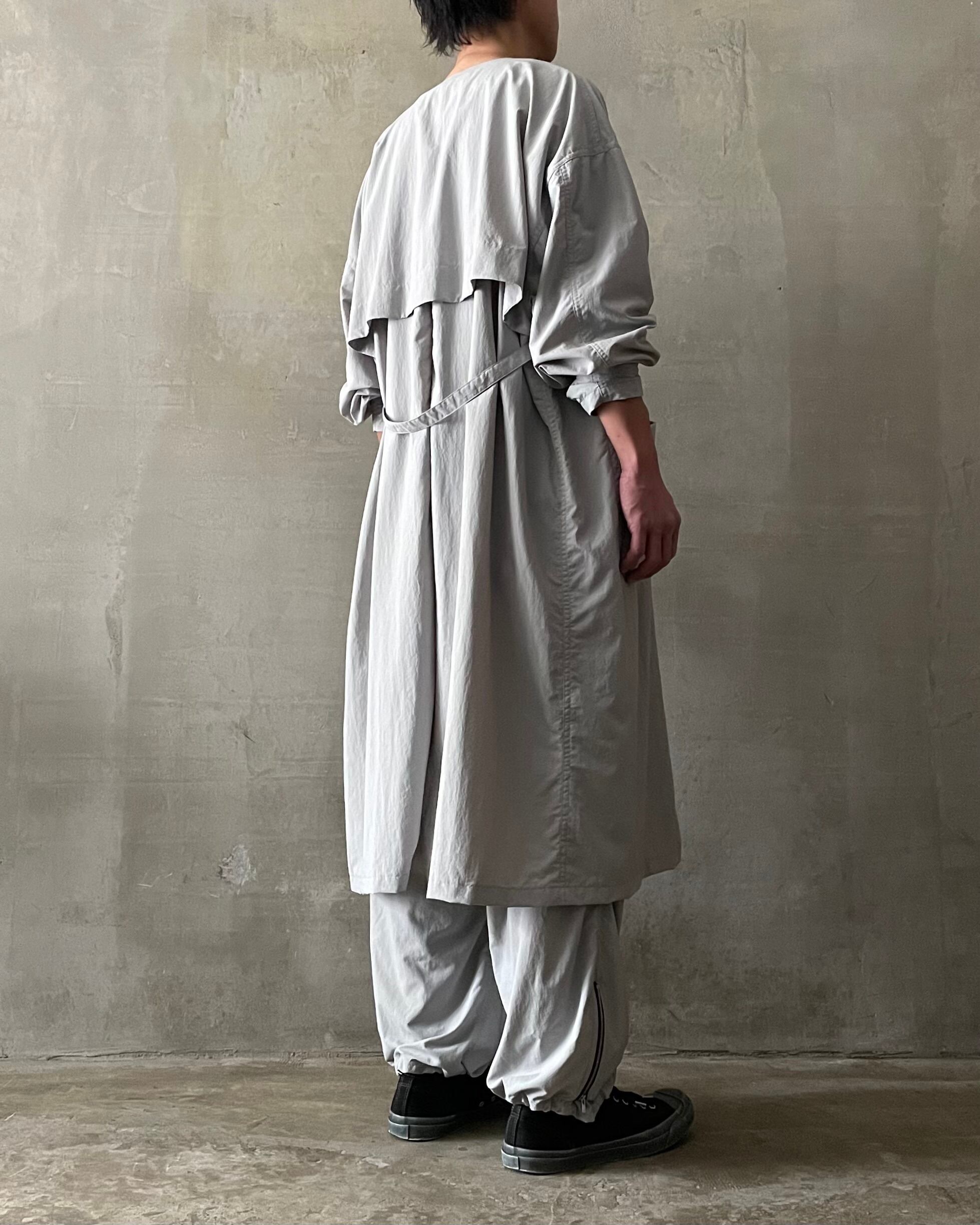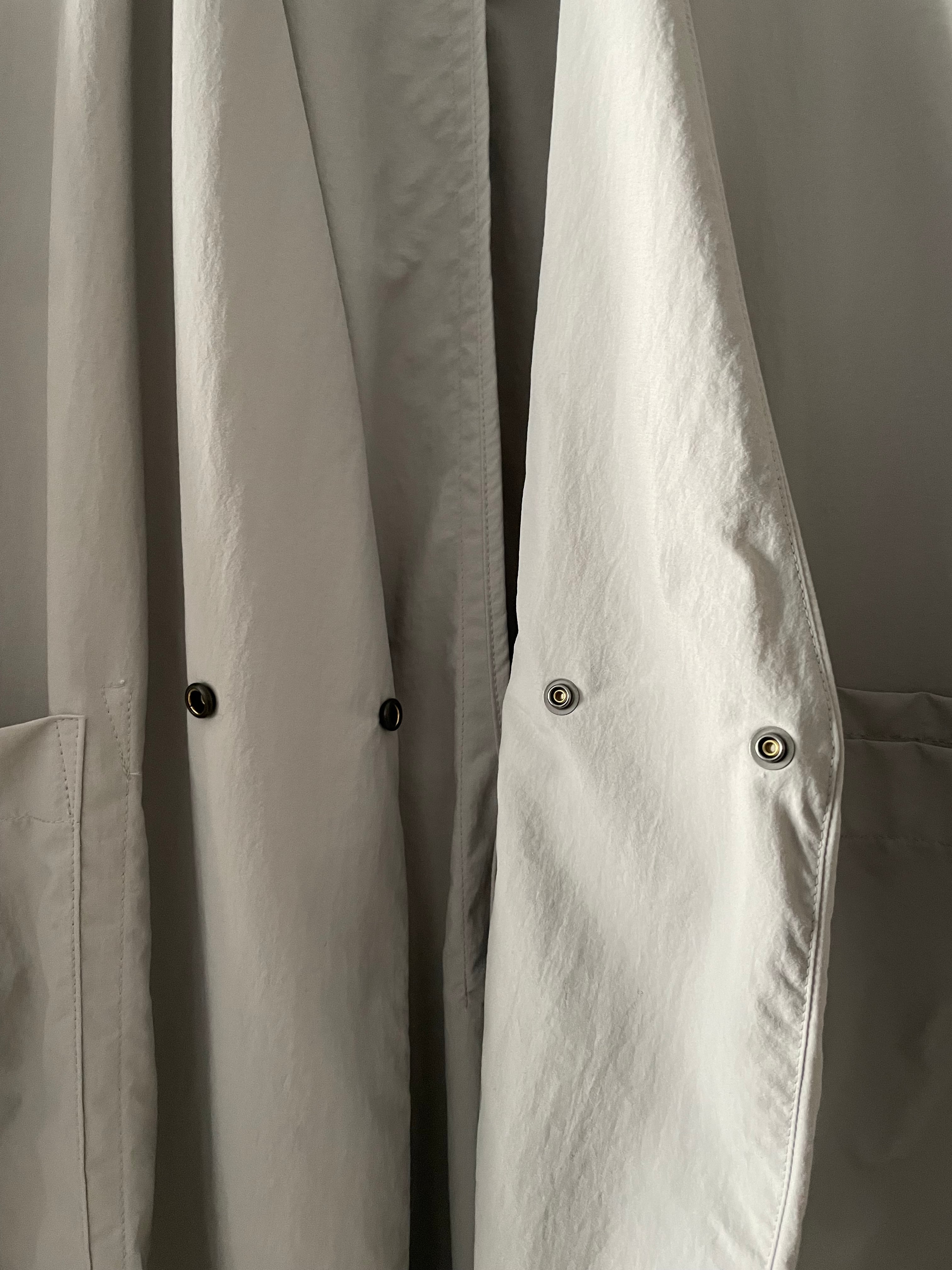T/f Lv6 water repellent lightweight nylon back strap collarless coat - soot