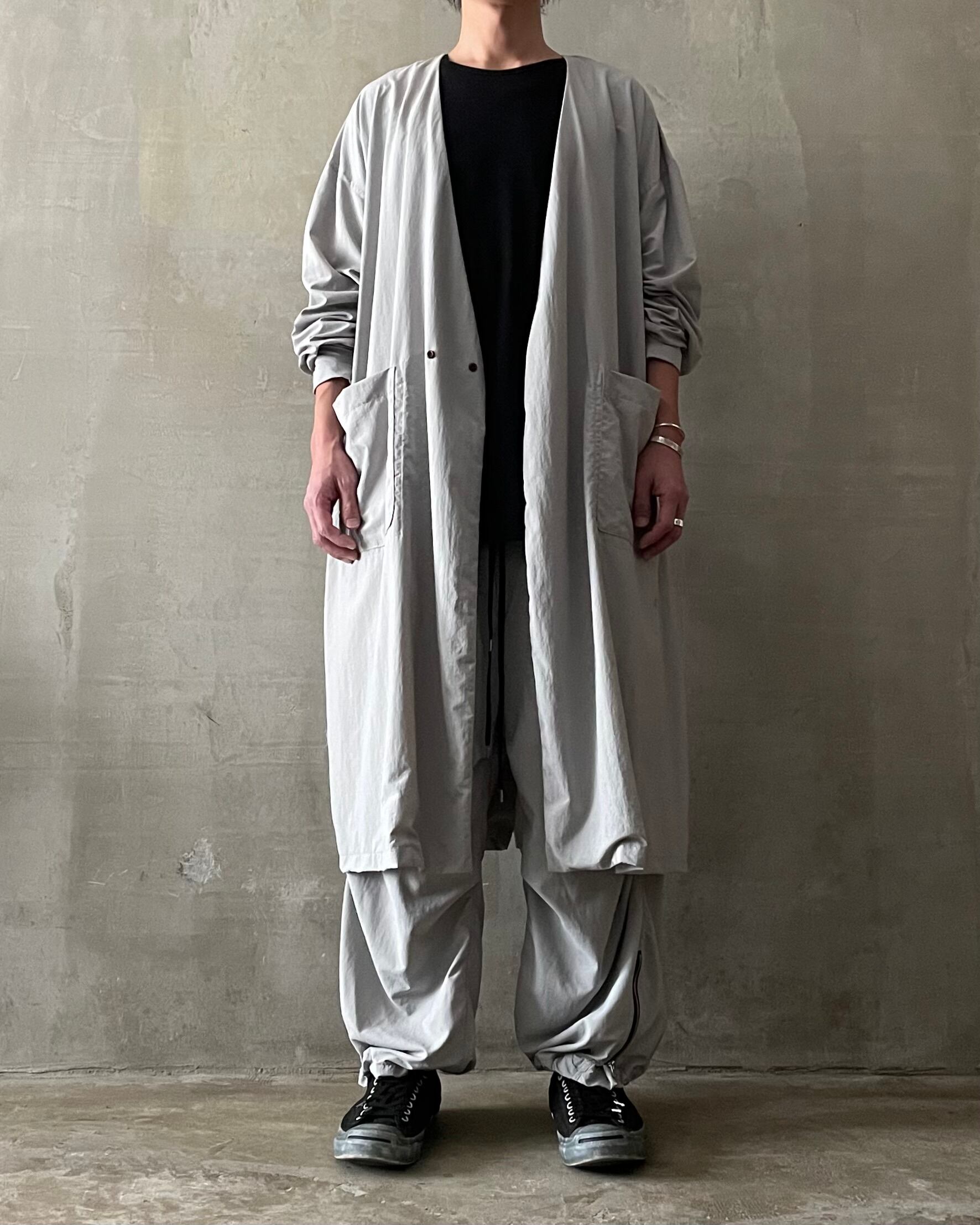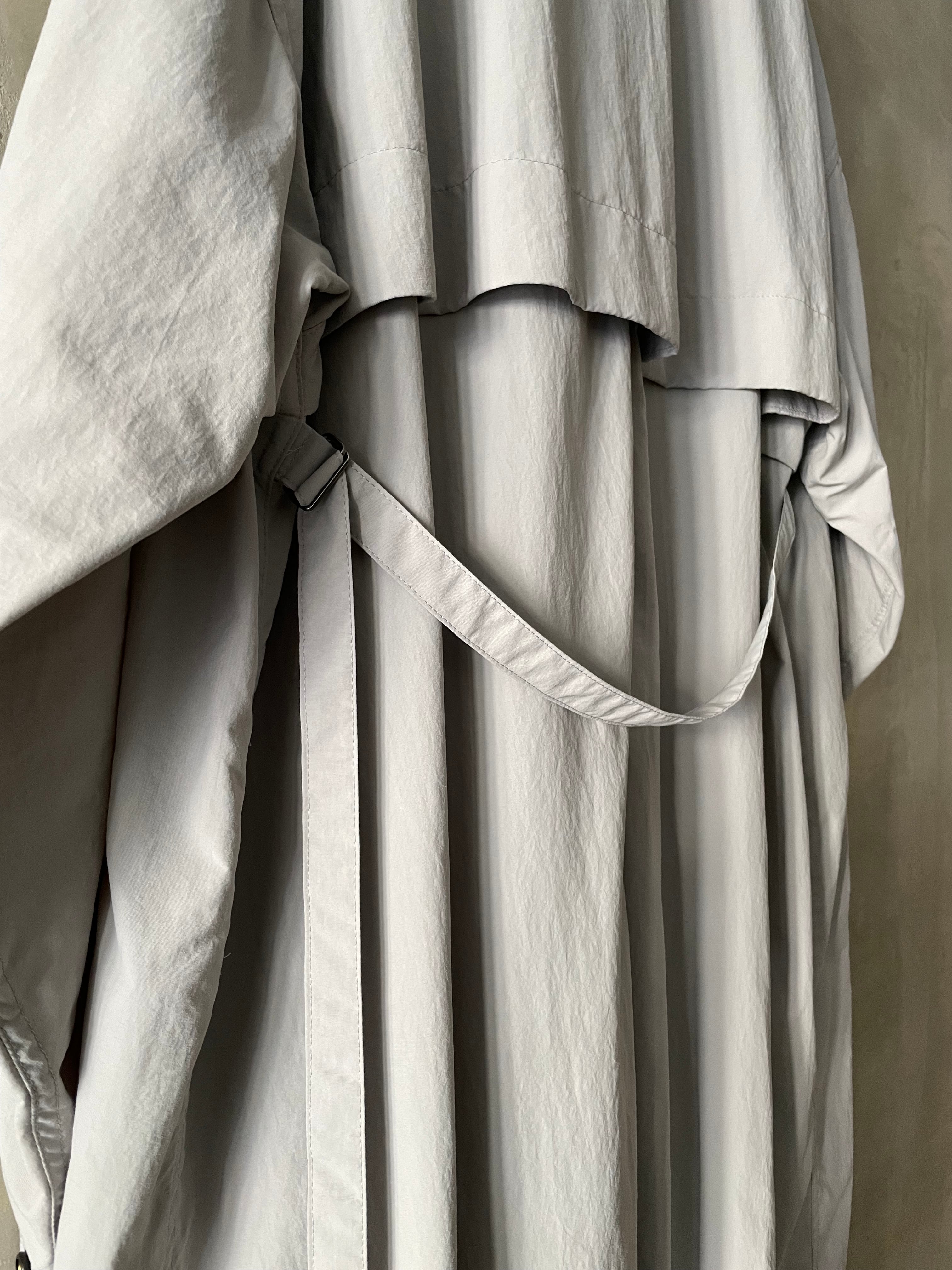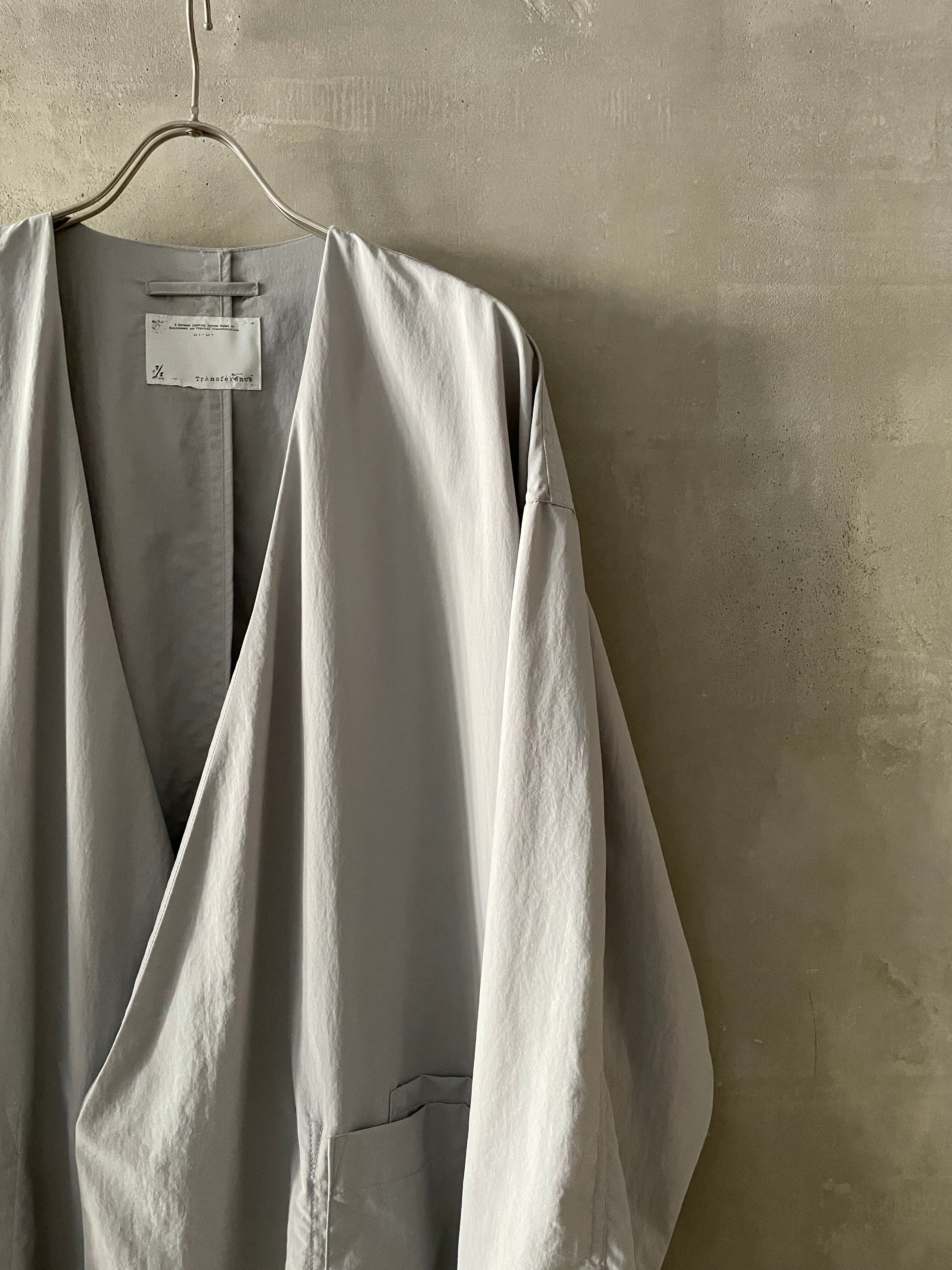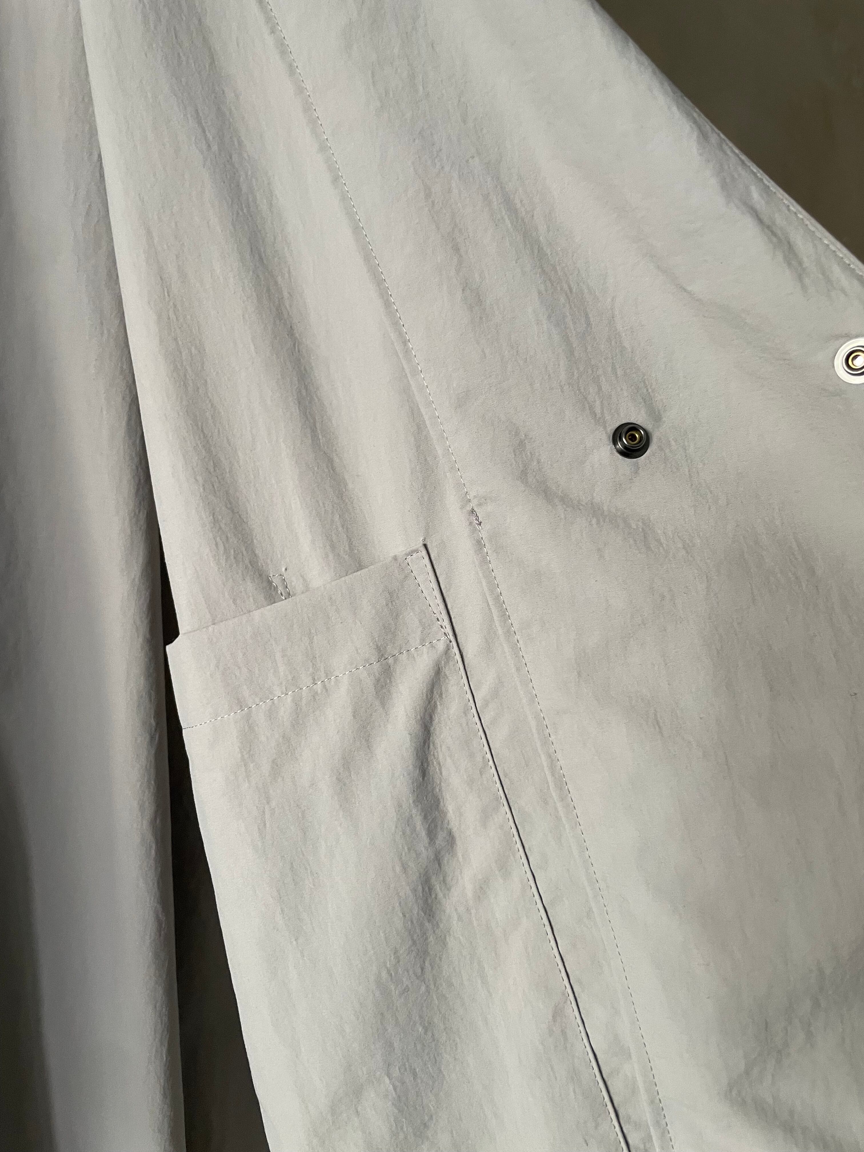 T/f Lv6 water repellent lightweight nylon back strap collarless coat - soot