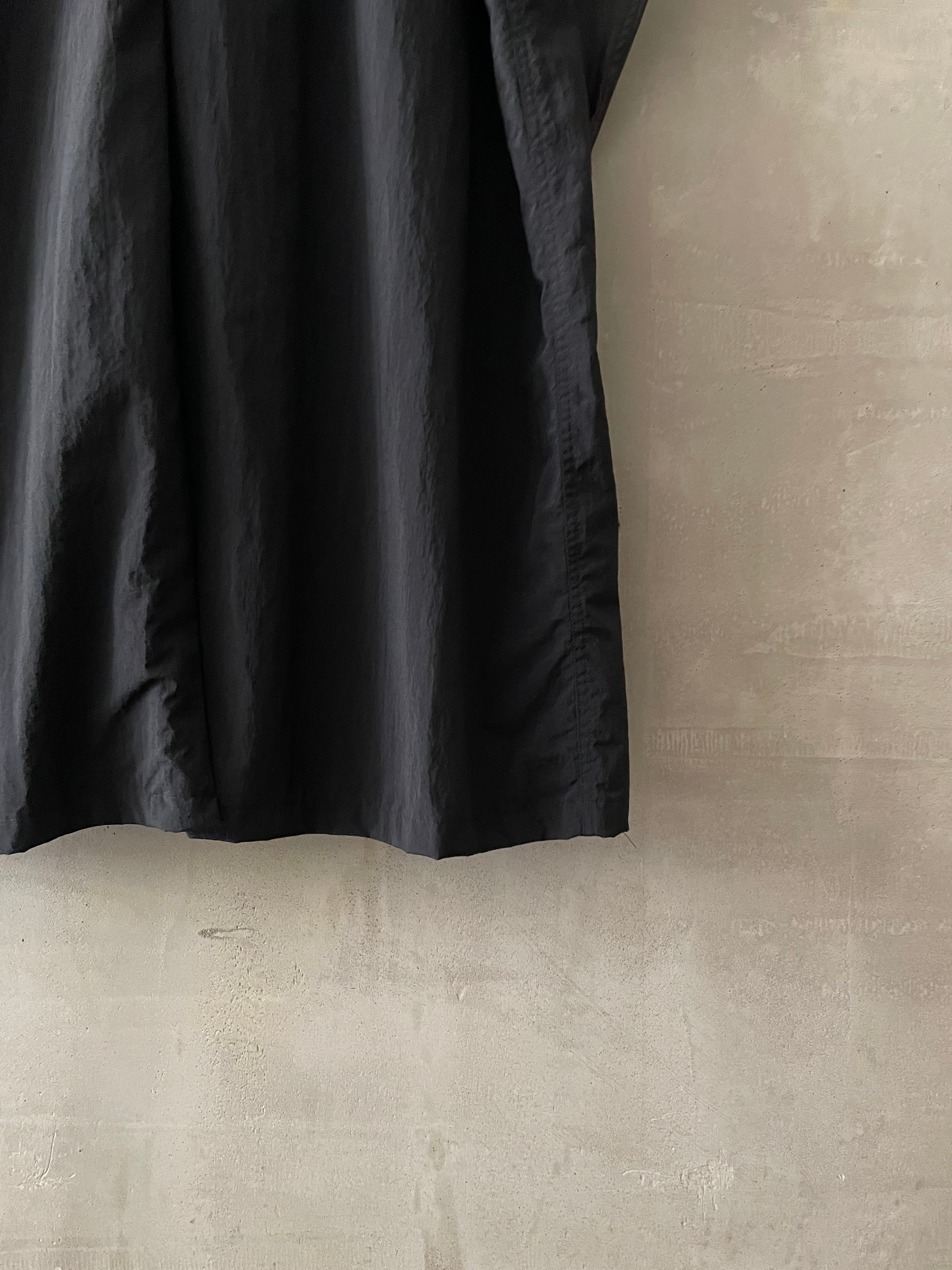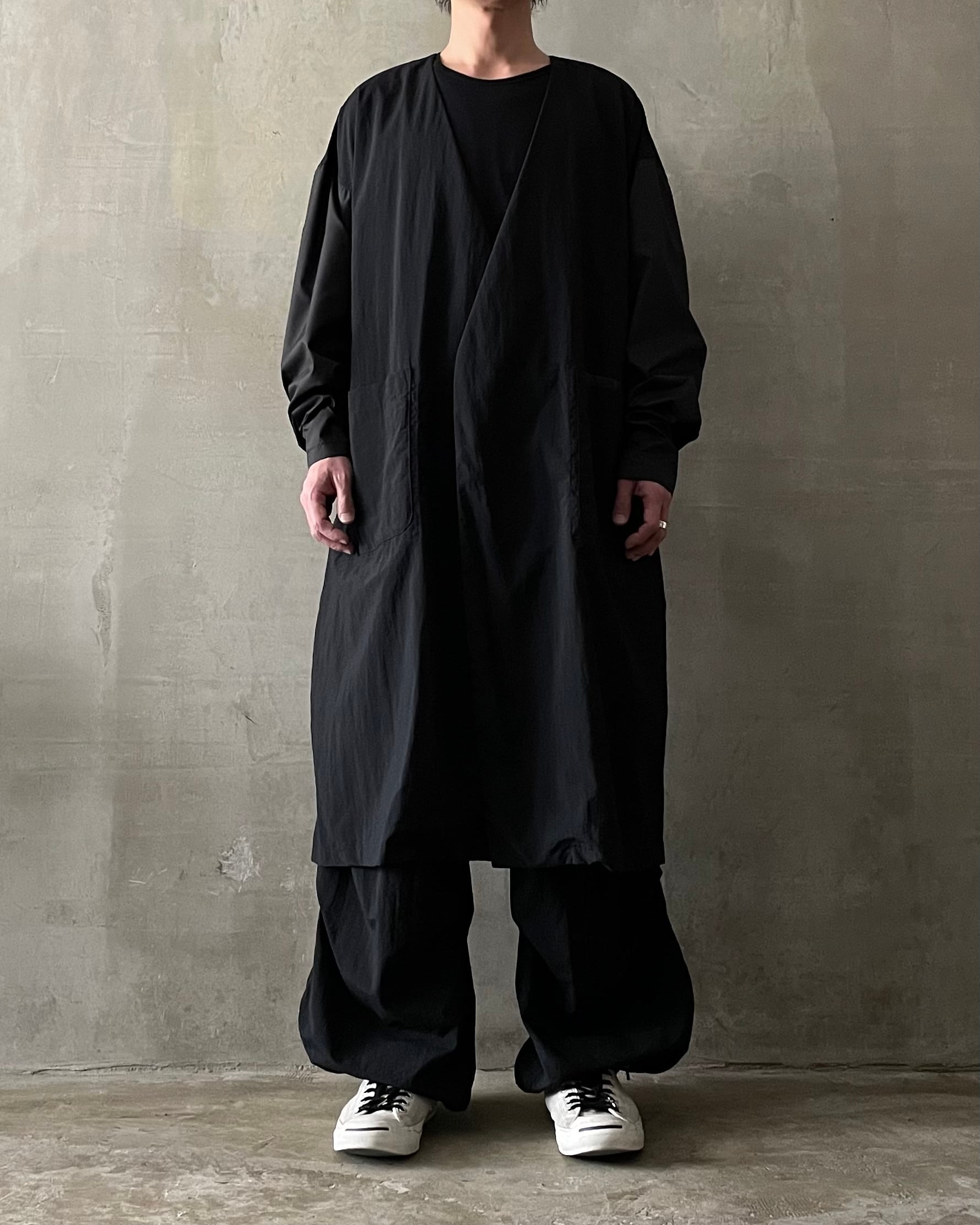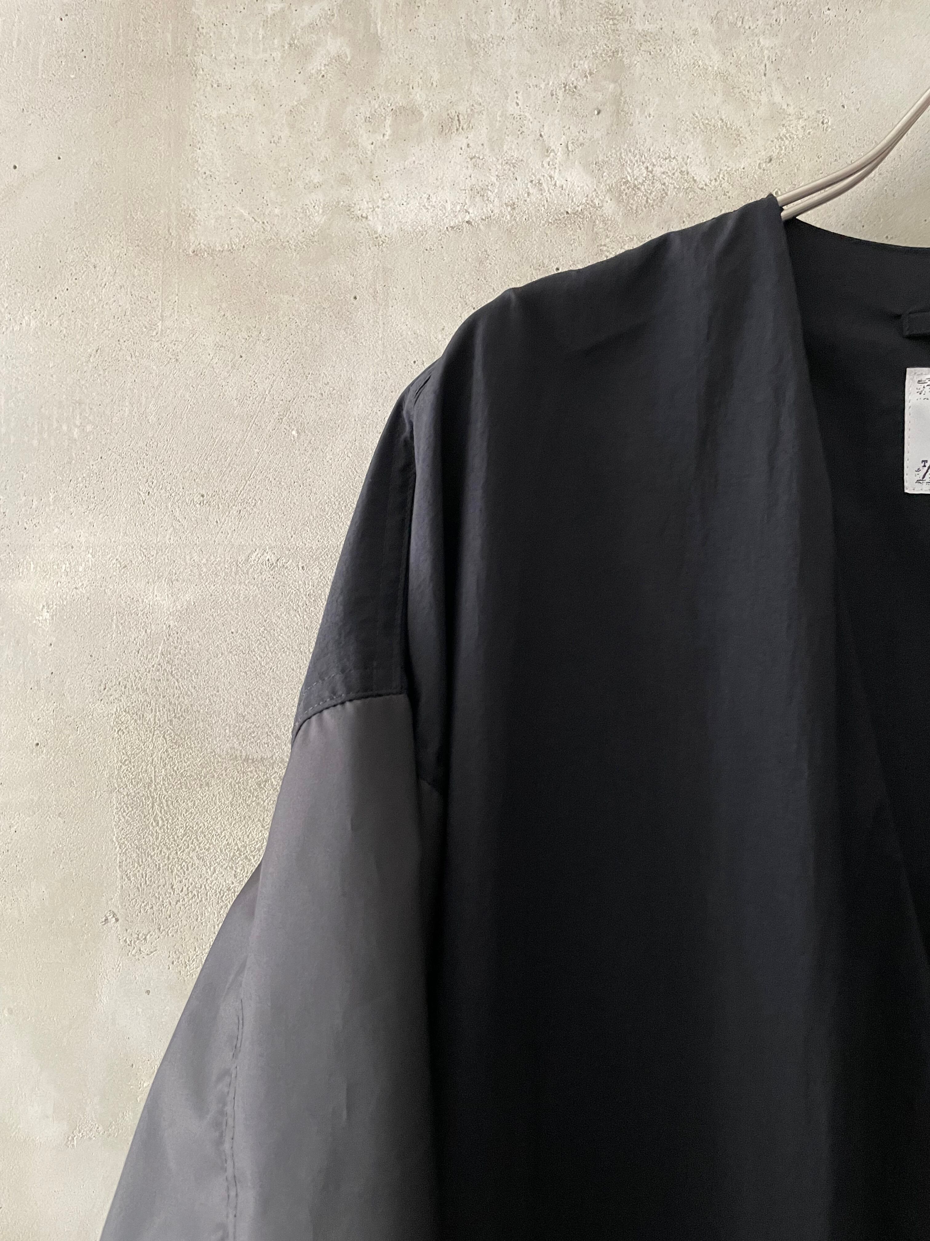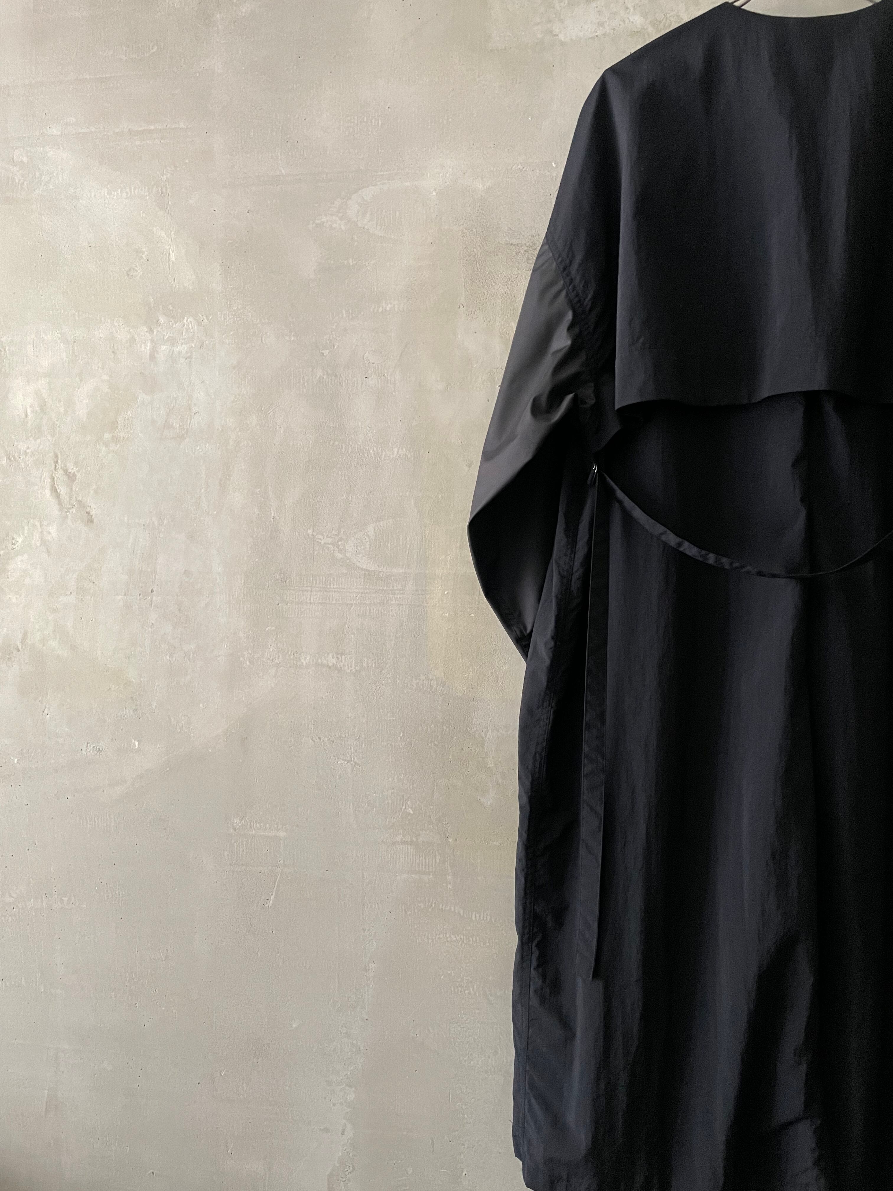 T/f Lv6 water repellent lightweight nylon back strap collarless coat - combined black