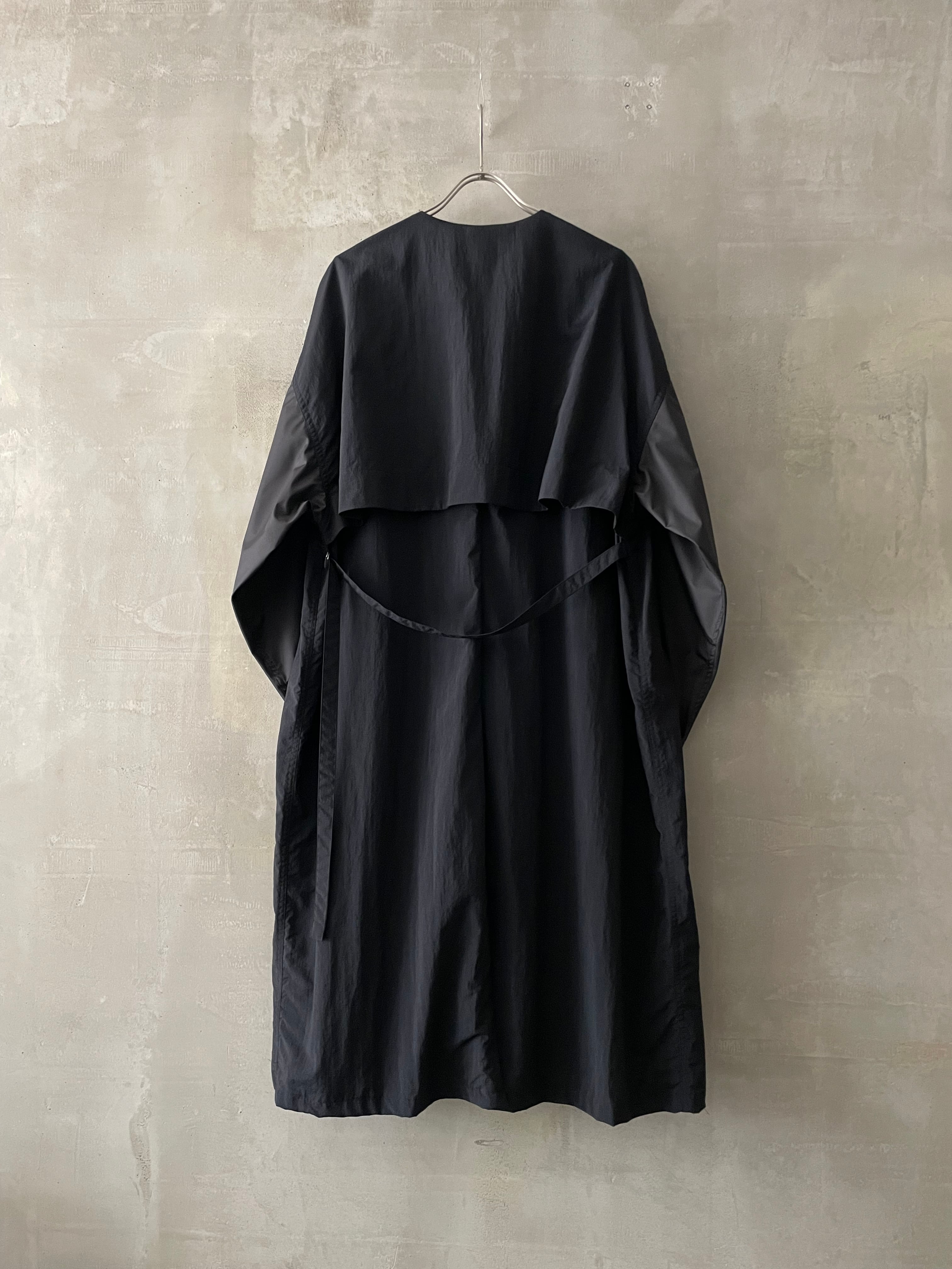 T/f Lv6 water repellent lightweight nylon back strap collarless coat