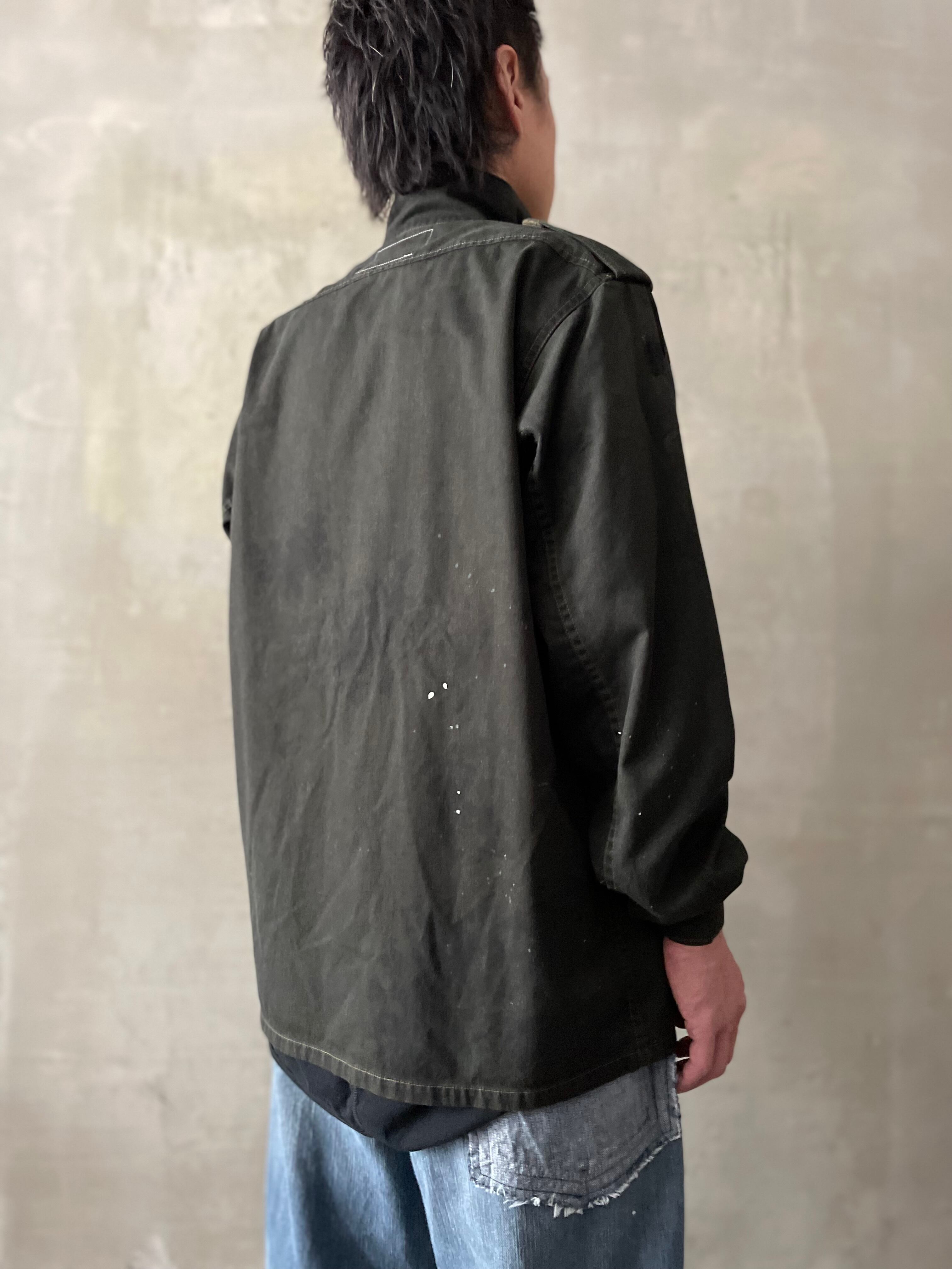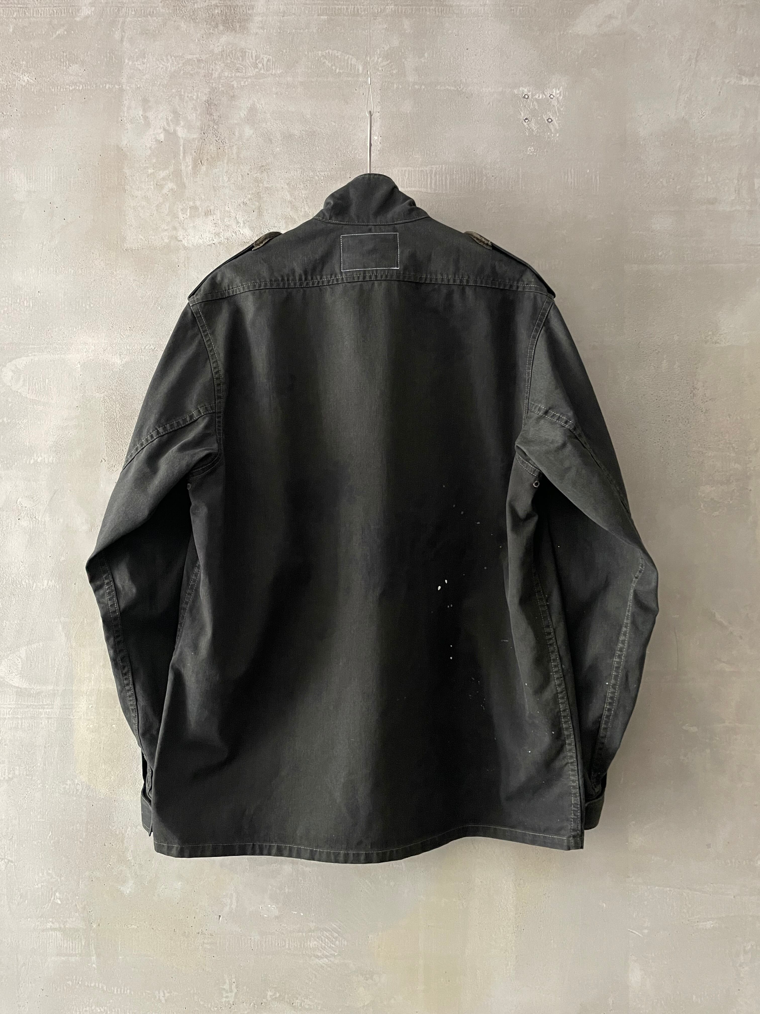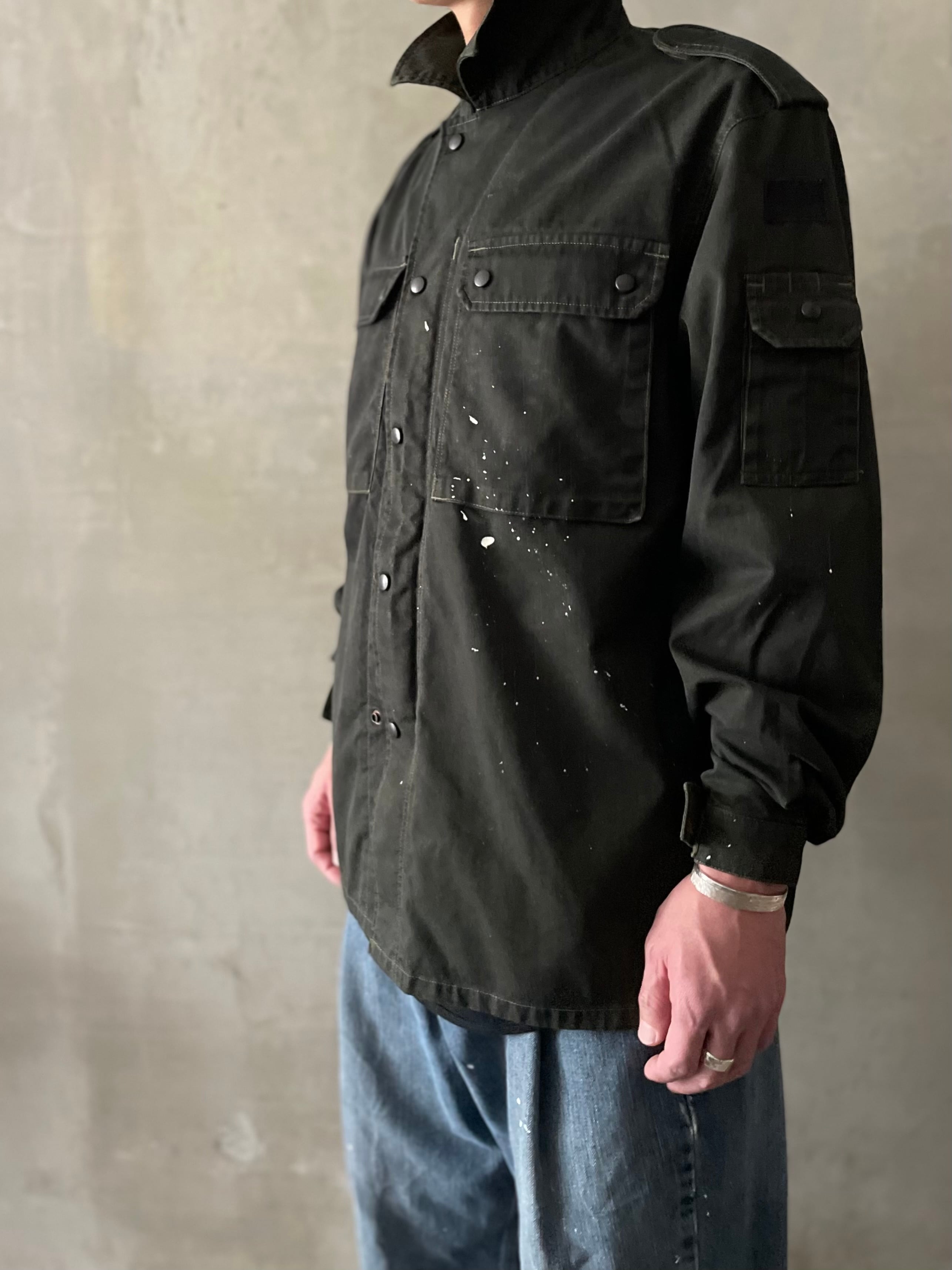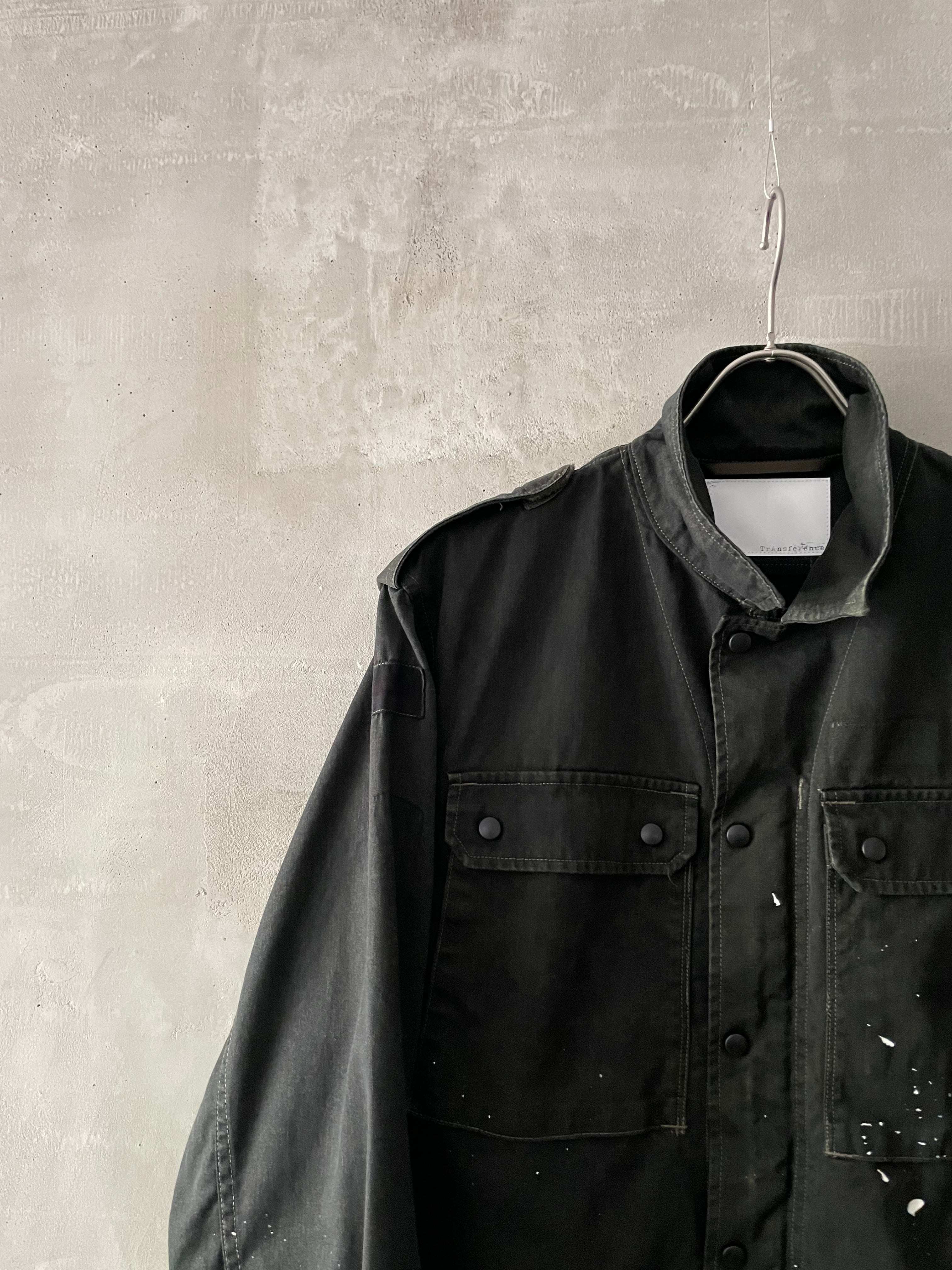 TrAnsference flecktarn camo shirt blouson - imperfection black garment dyed effect / monochrome dripping