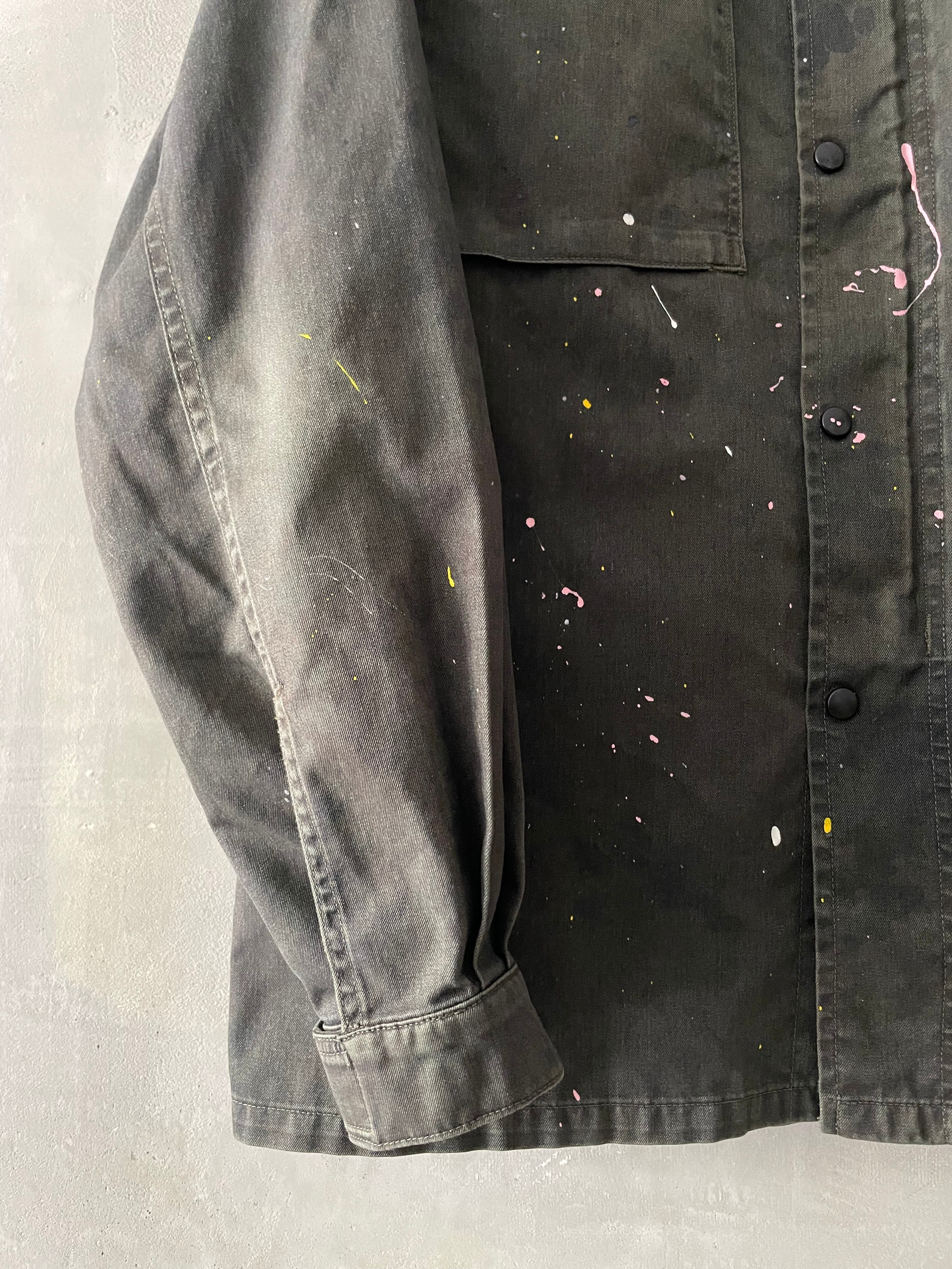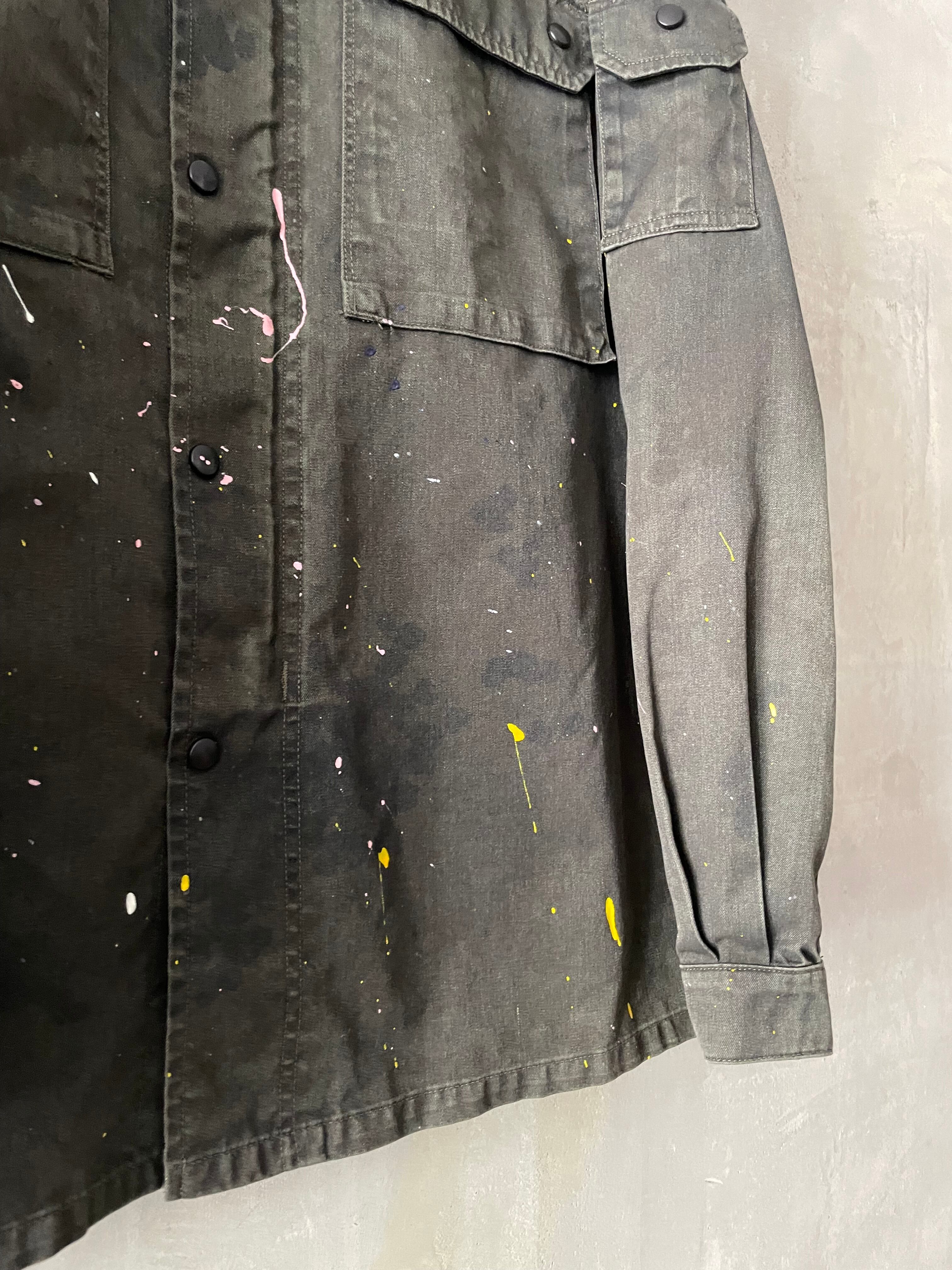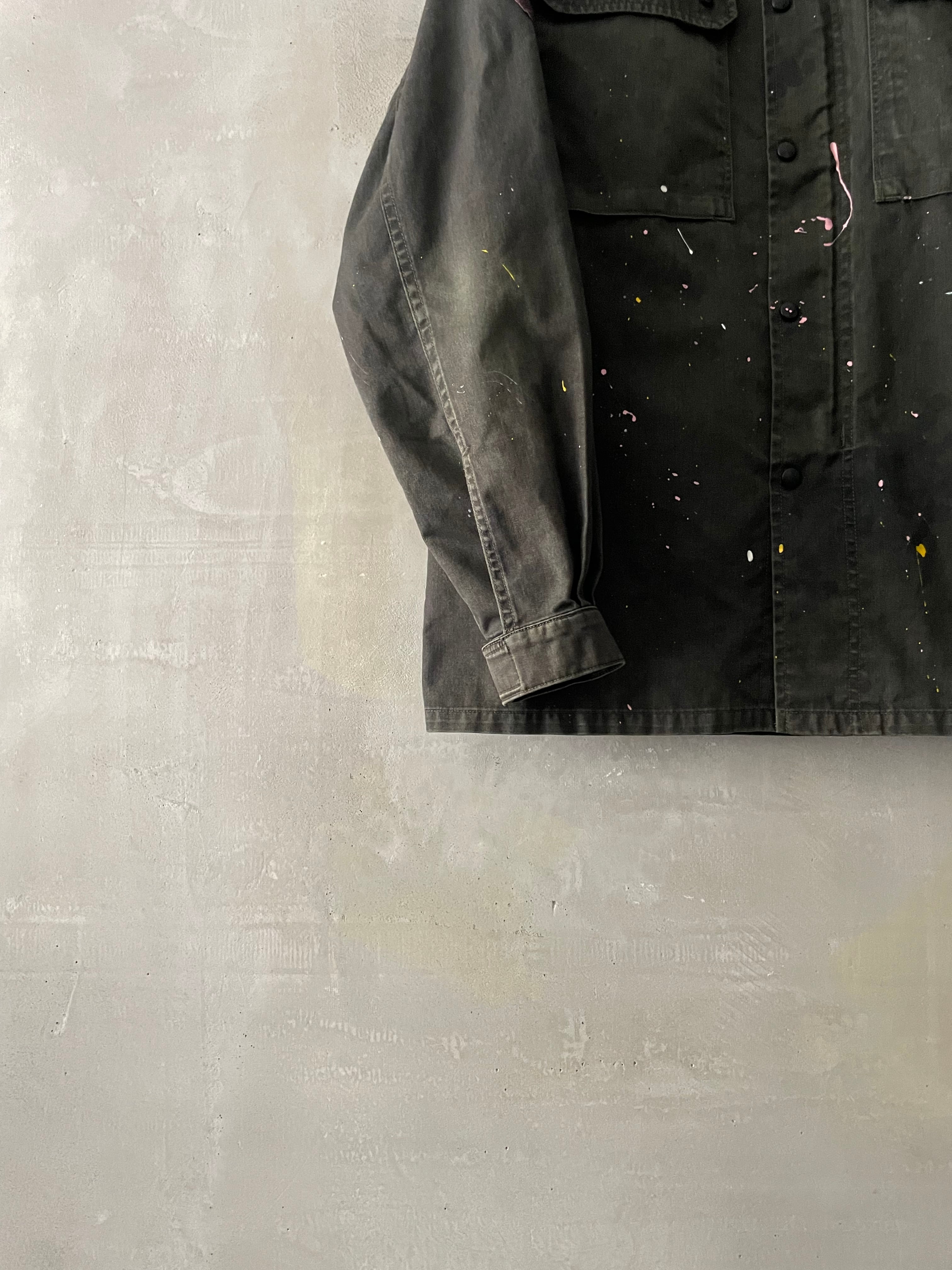 TrAnsference flecktarn camo shirt blouson - dark forest garment dyed effect / flowers dripping