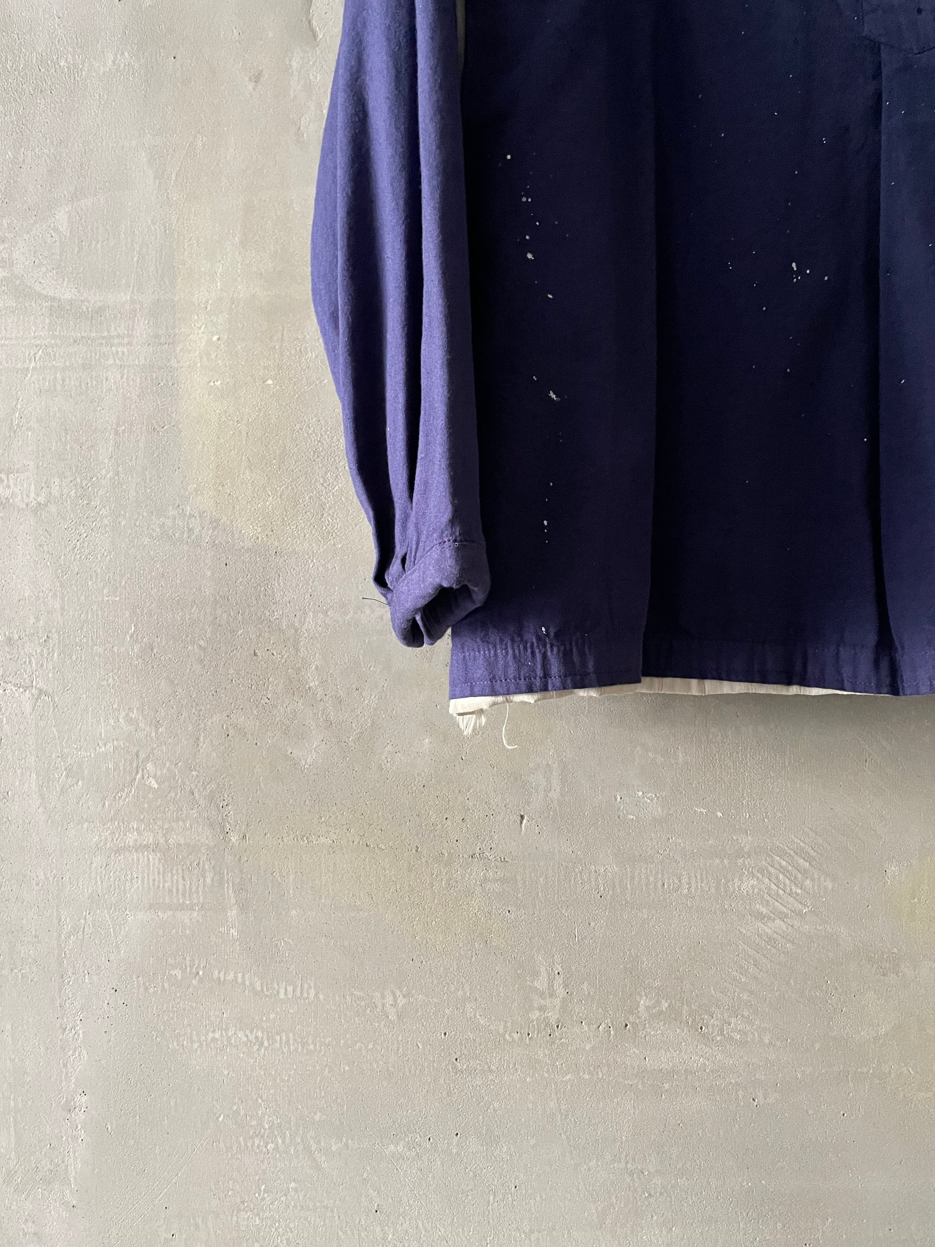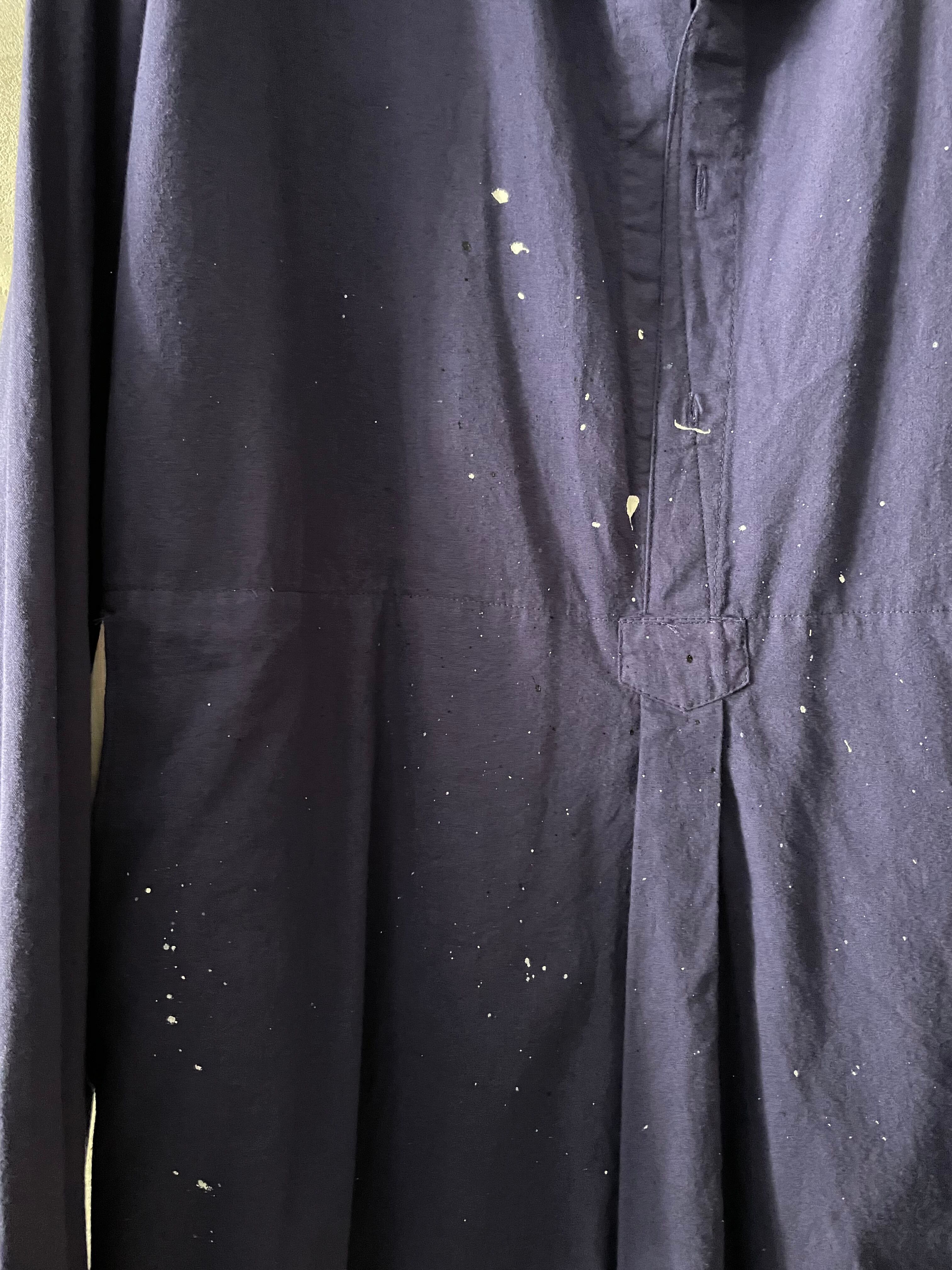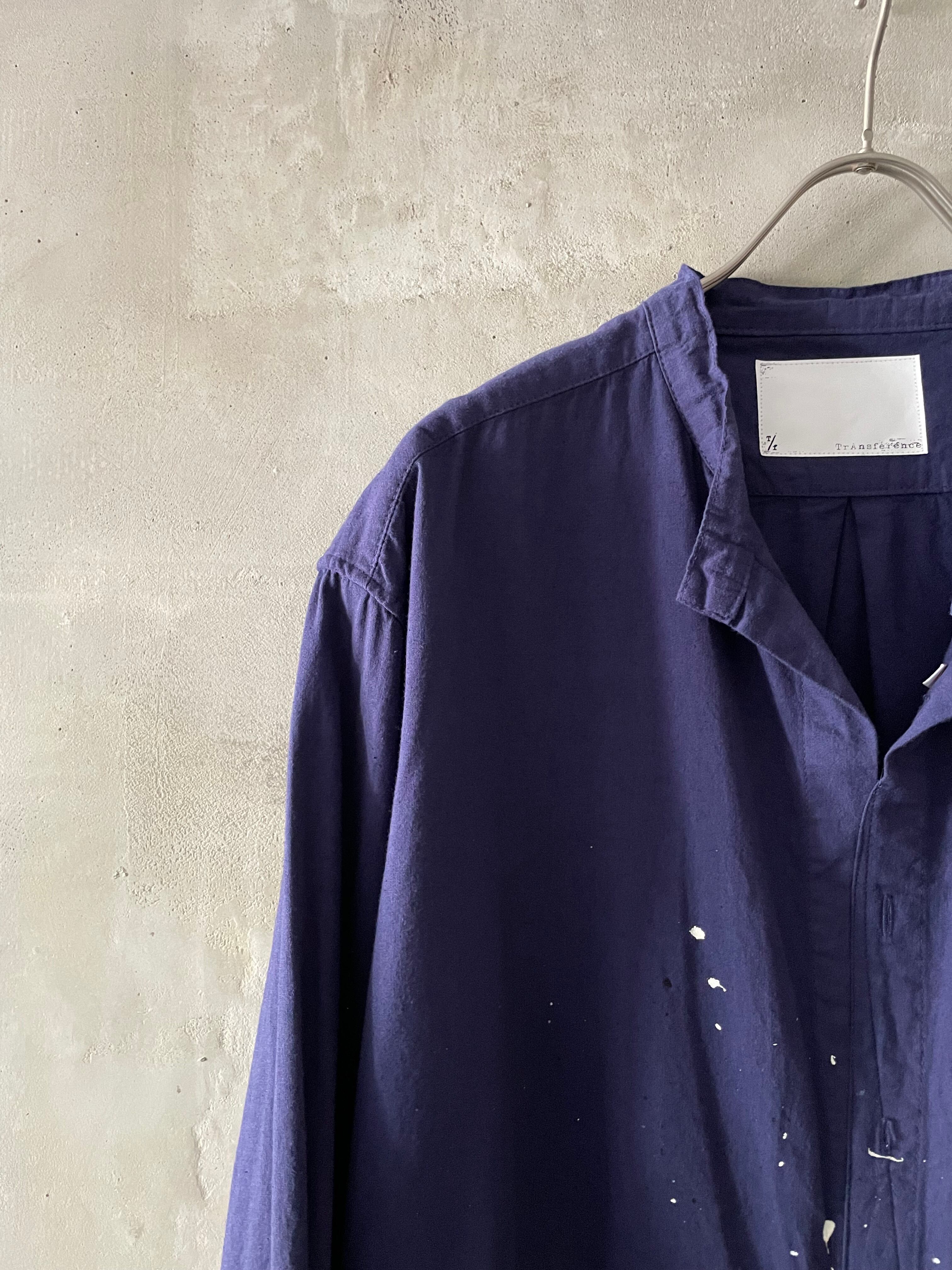 TrAnsference band collar pullover shirt - midnight garment dyed / monochrome dripping