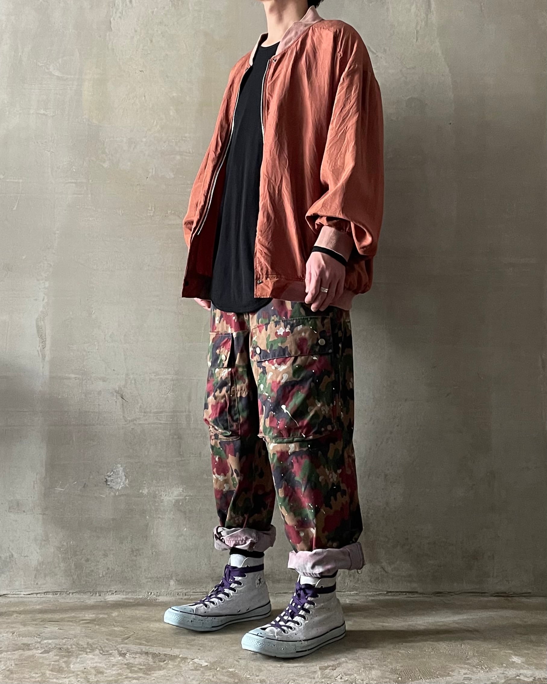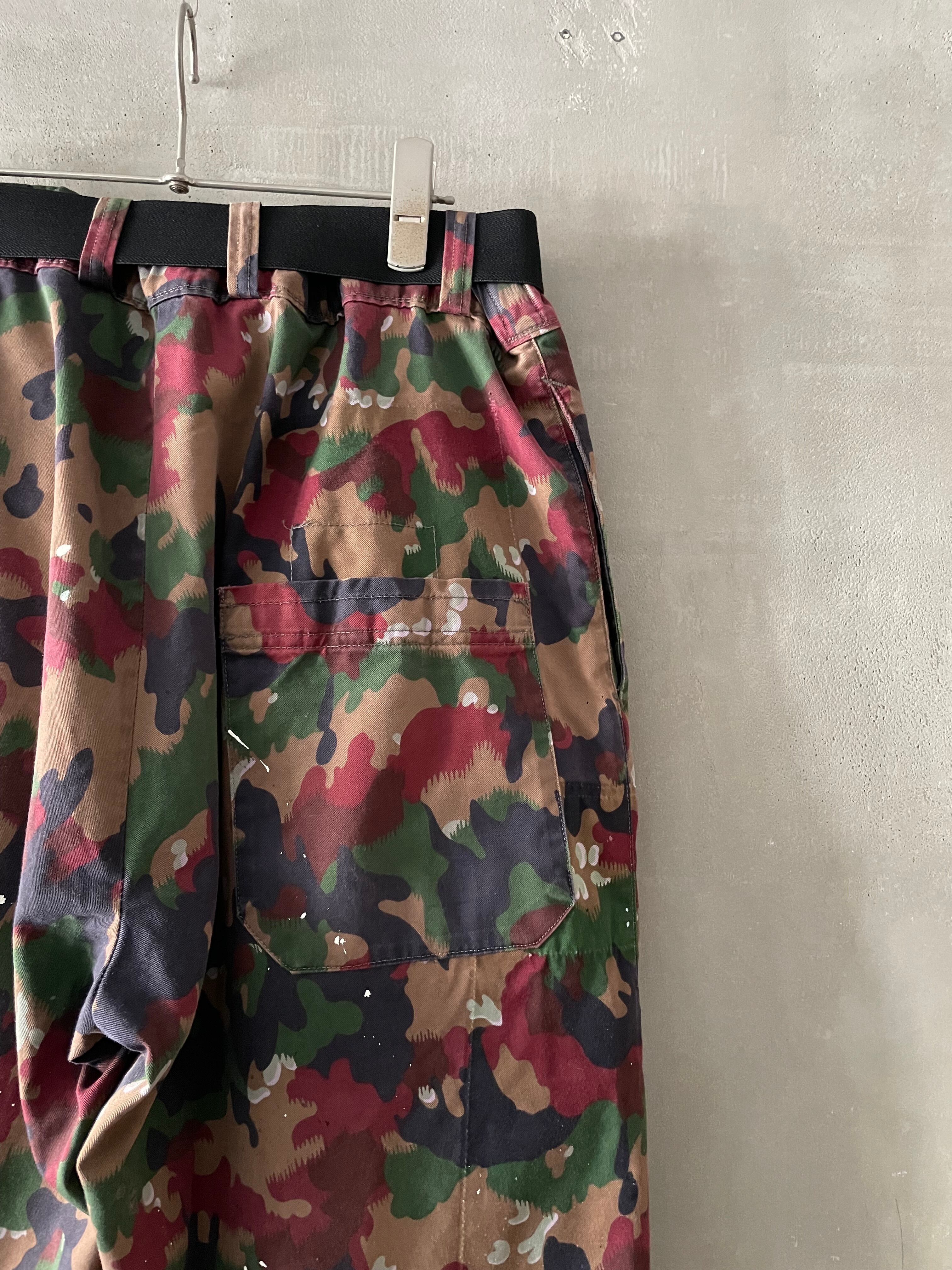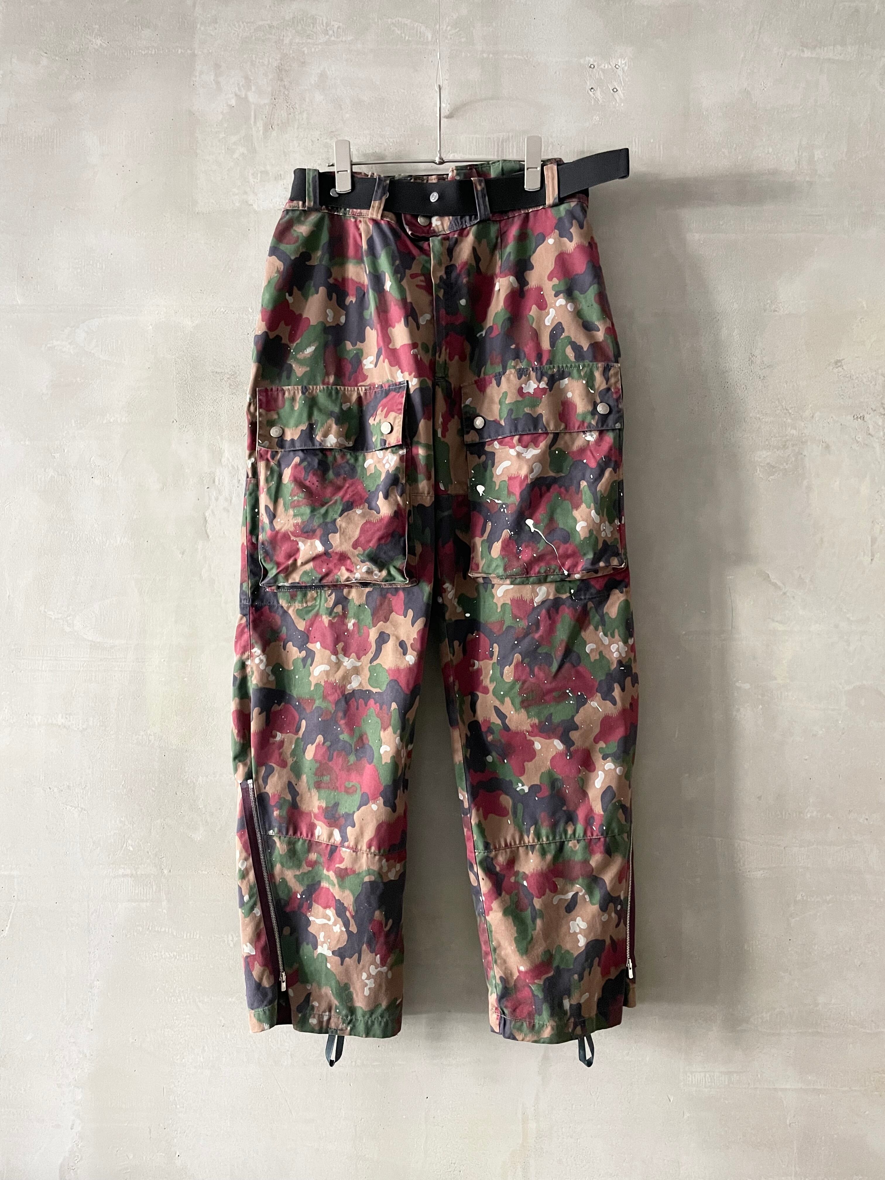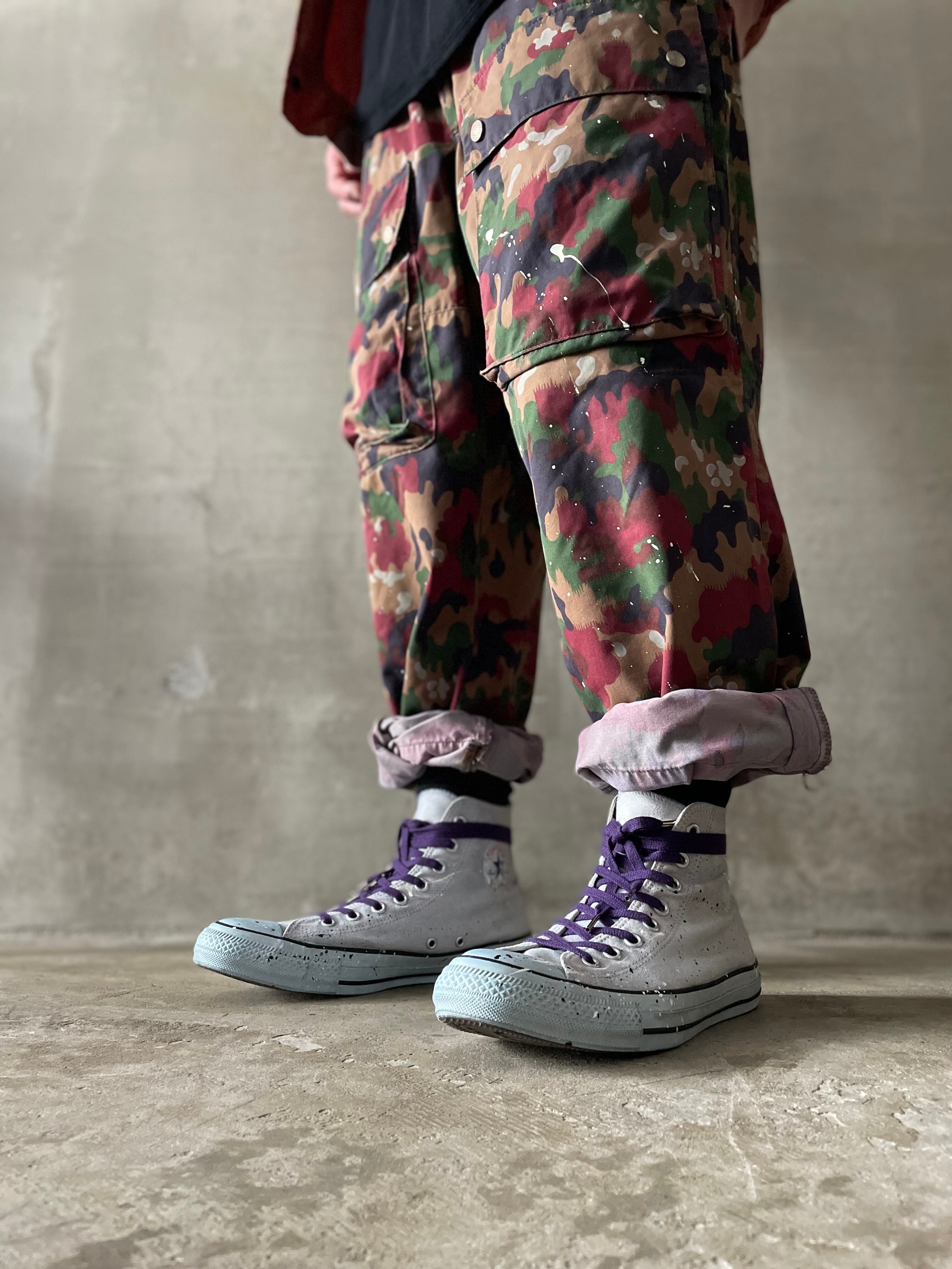 TrAnsference side zip front cargo pocket alpine camo pants - lavender garment dyed effect / monochrome dripping