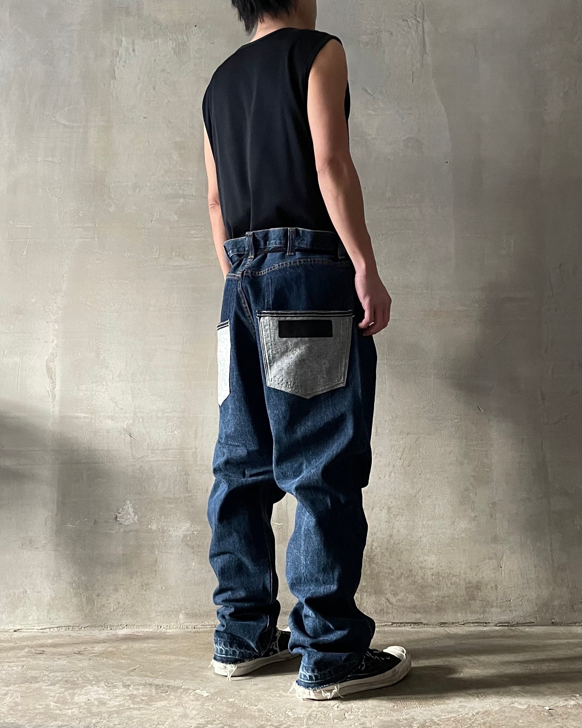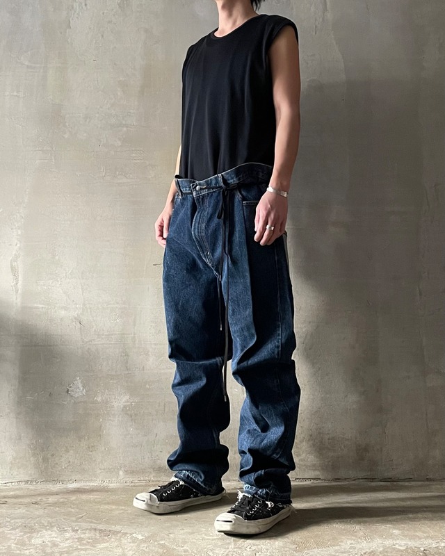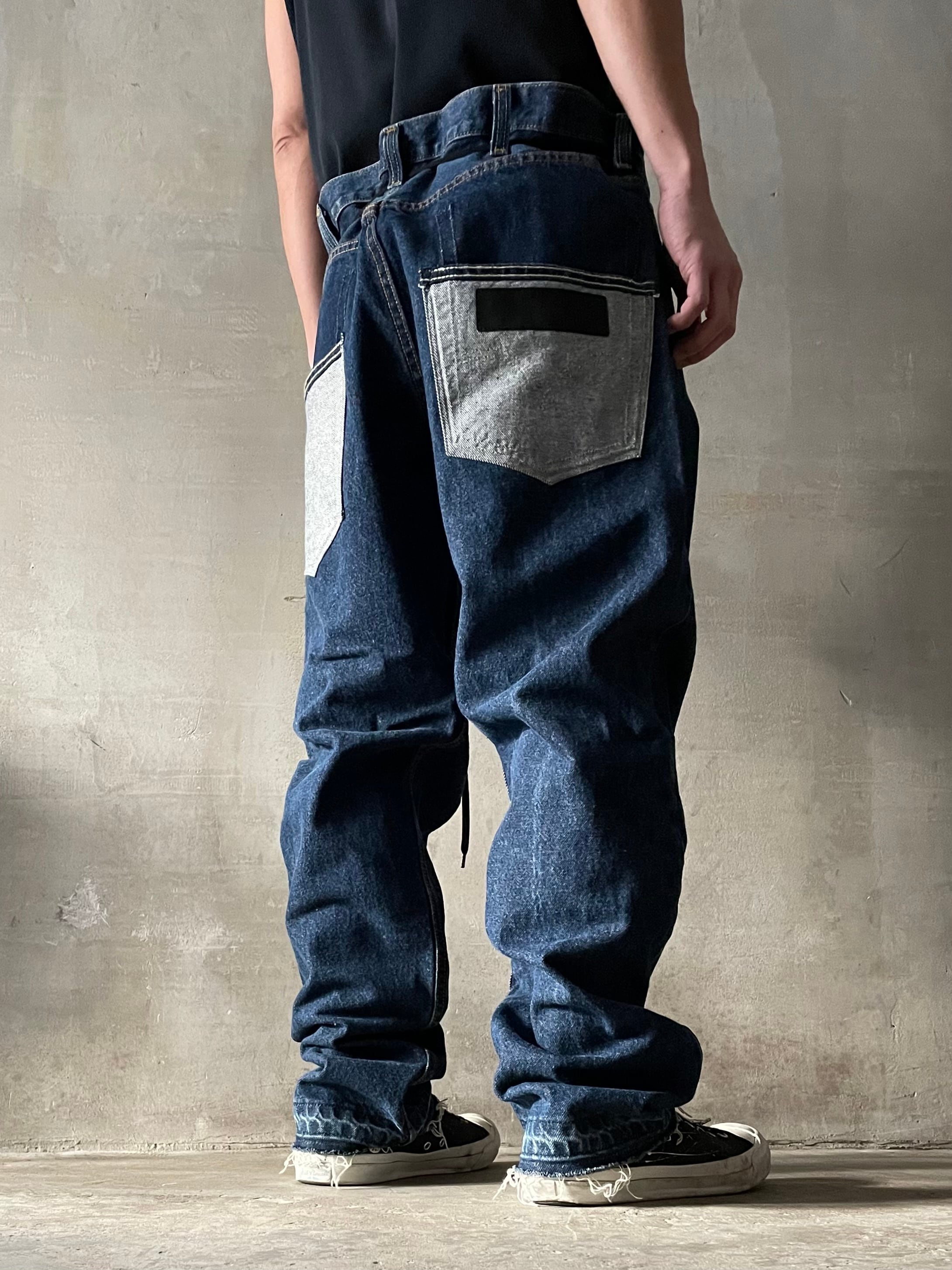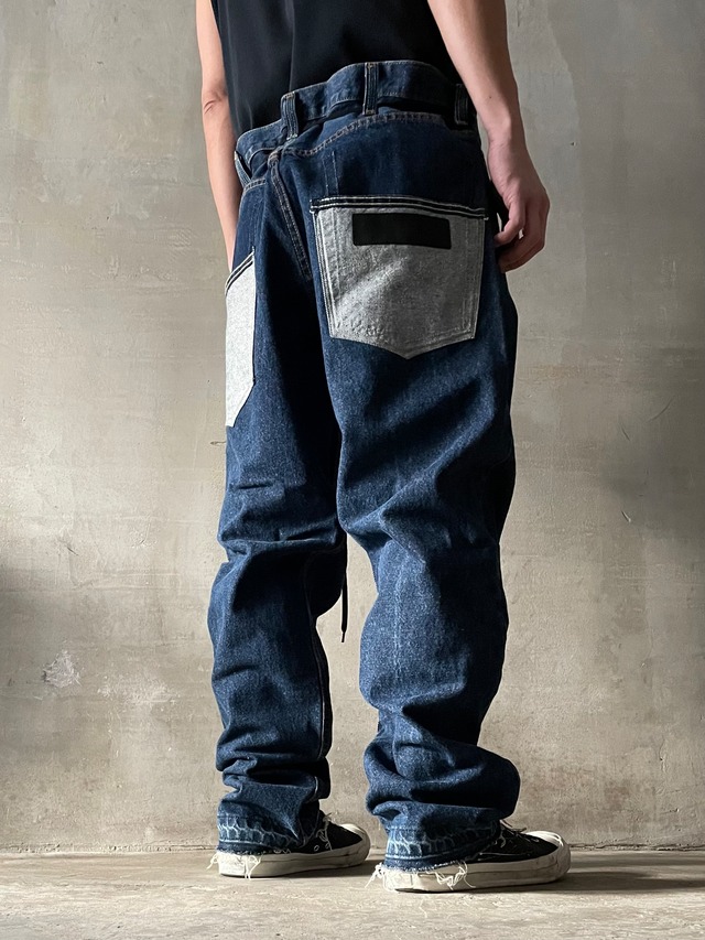 TrAnsference darts tapered tack baggy denim pants