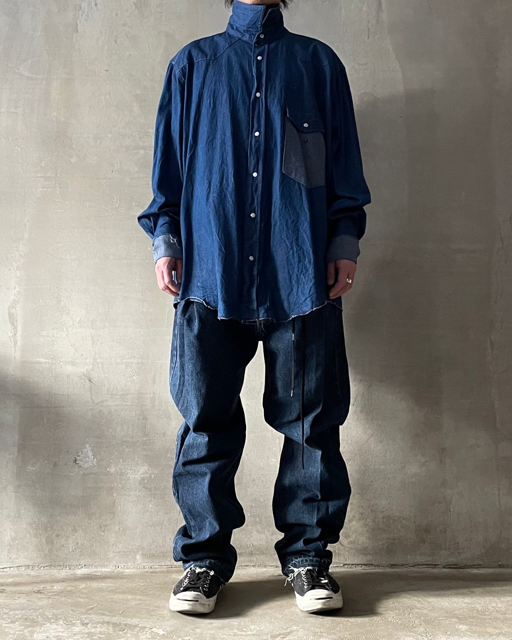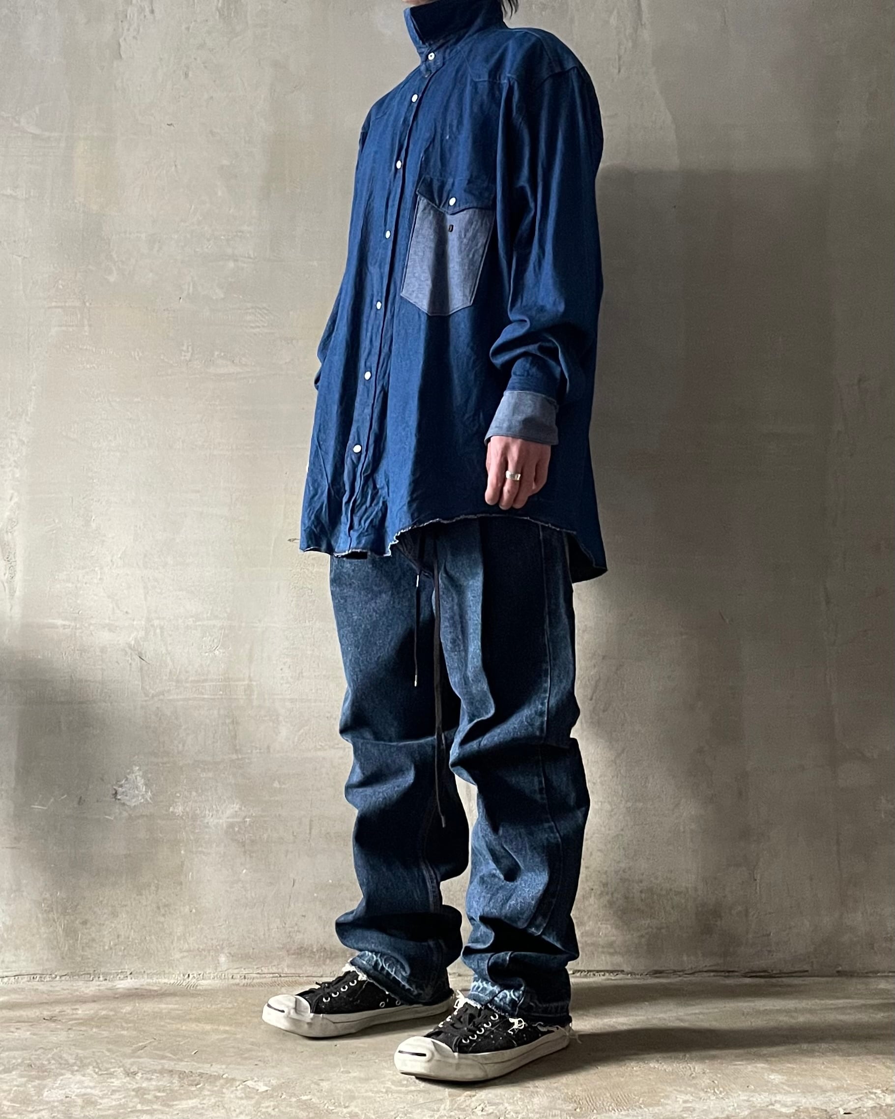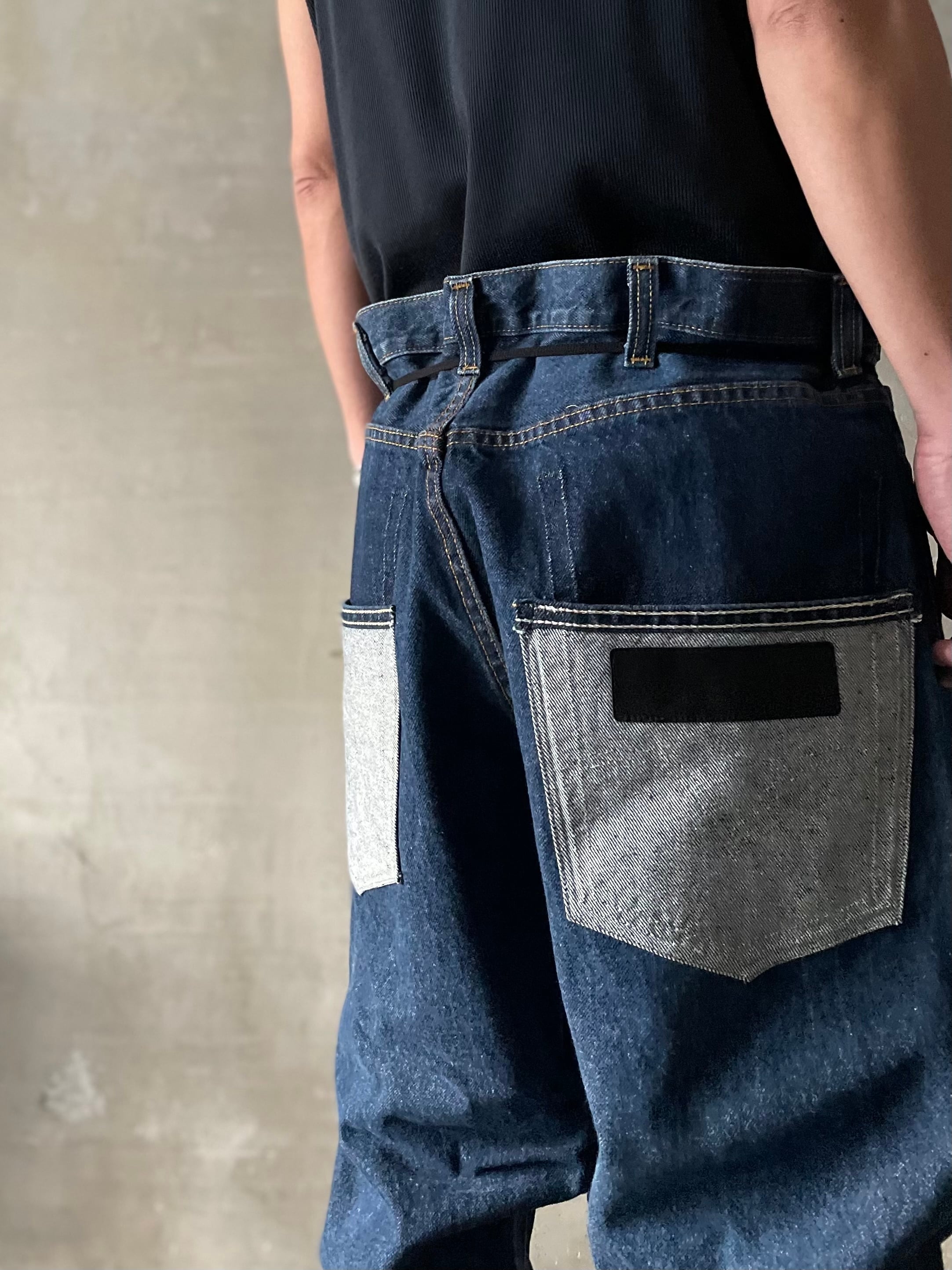 TrAnsference darts tapered tack baggy denim pants