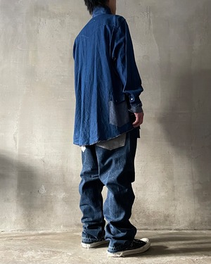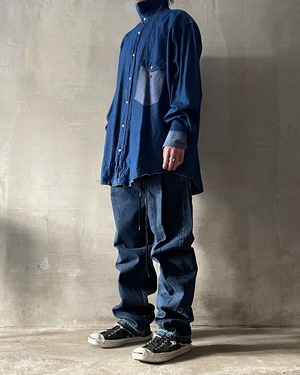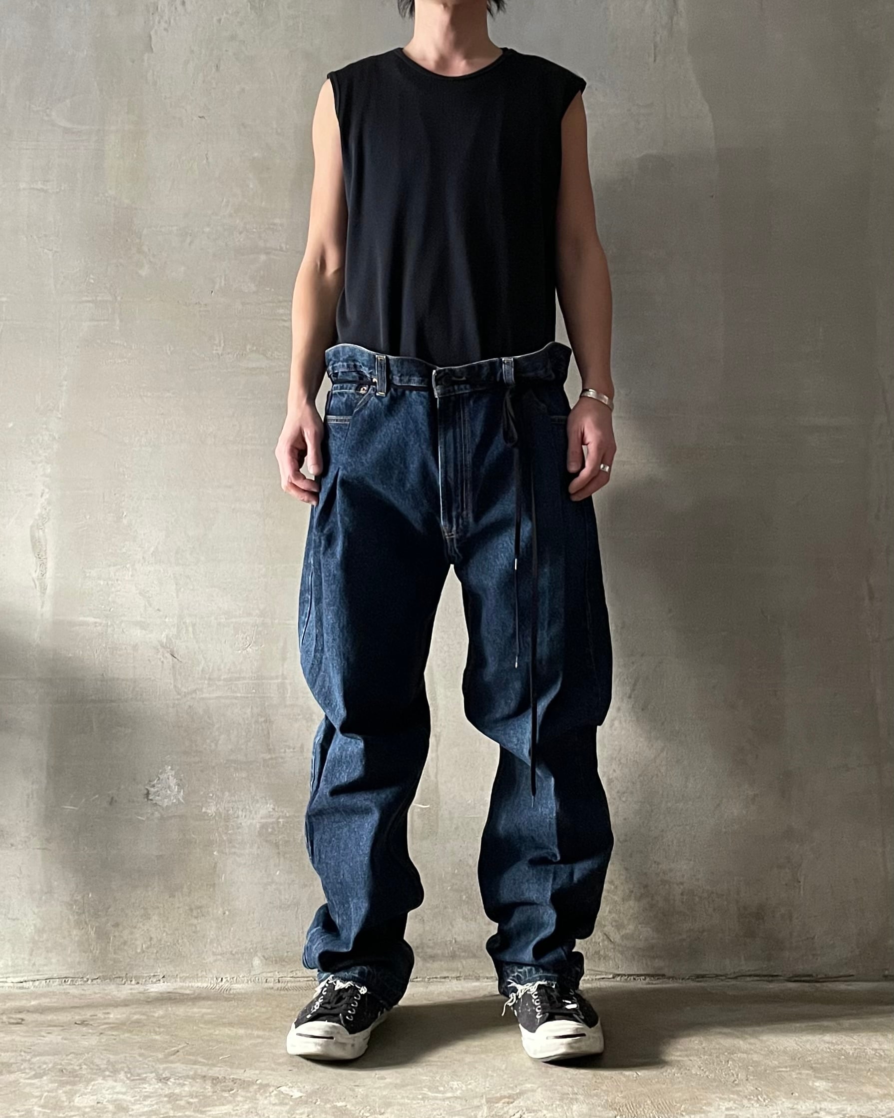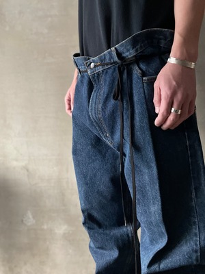 TrAnsference darts tapered tack baggy denim pants - indigo
