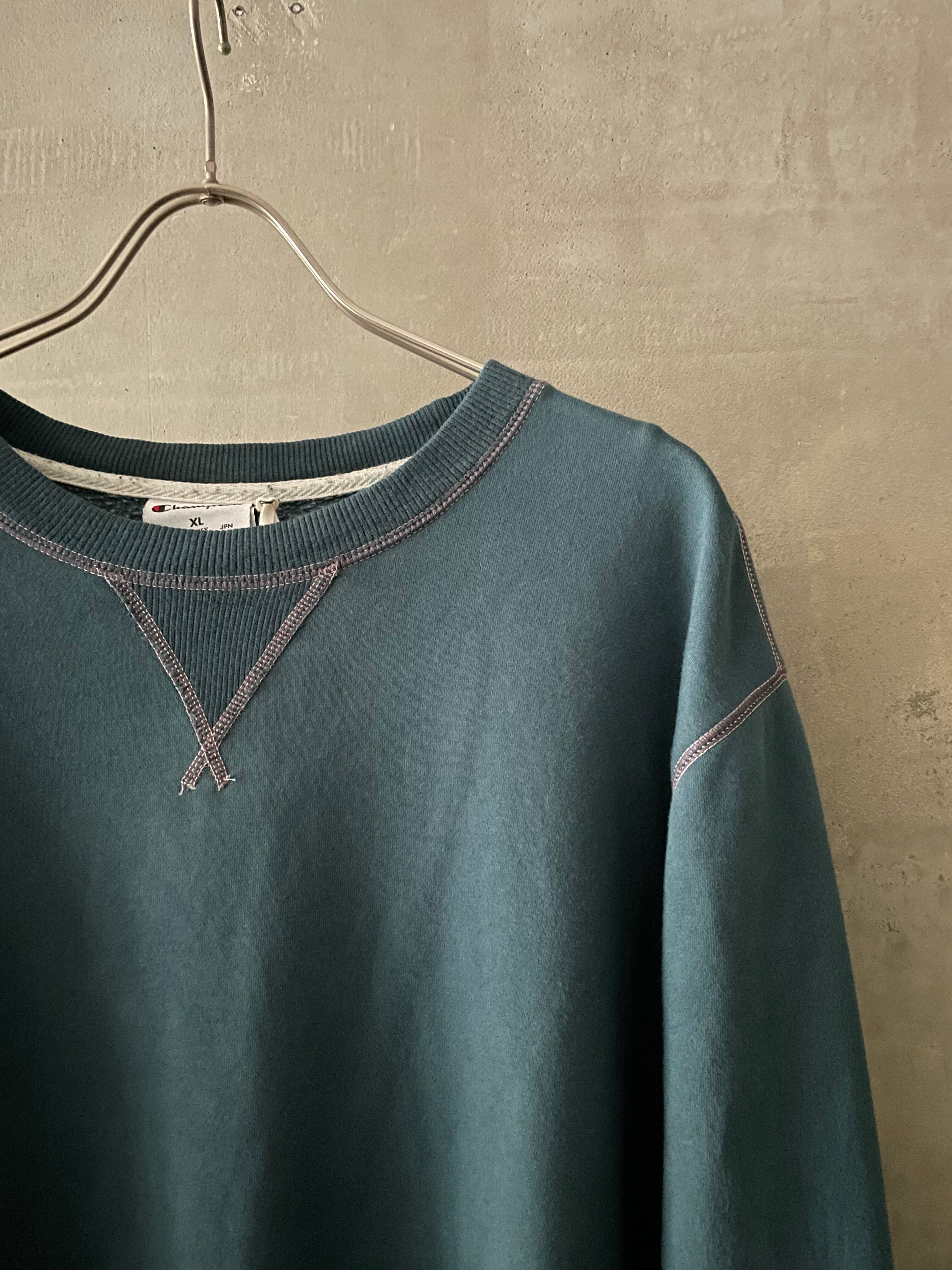 pre-fix V-gusset crew neck sweatshirt - teal garment dyed