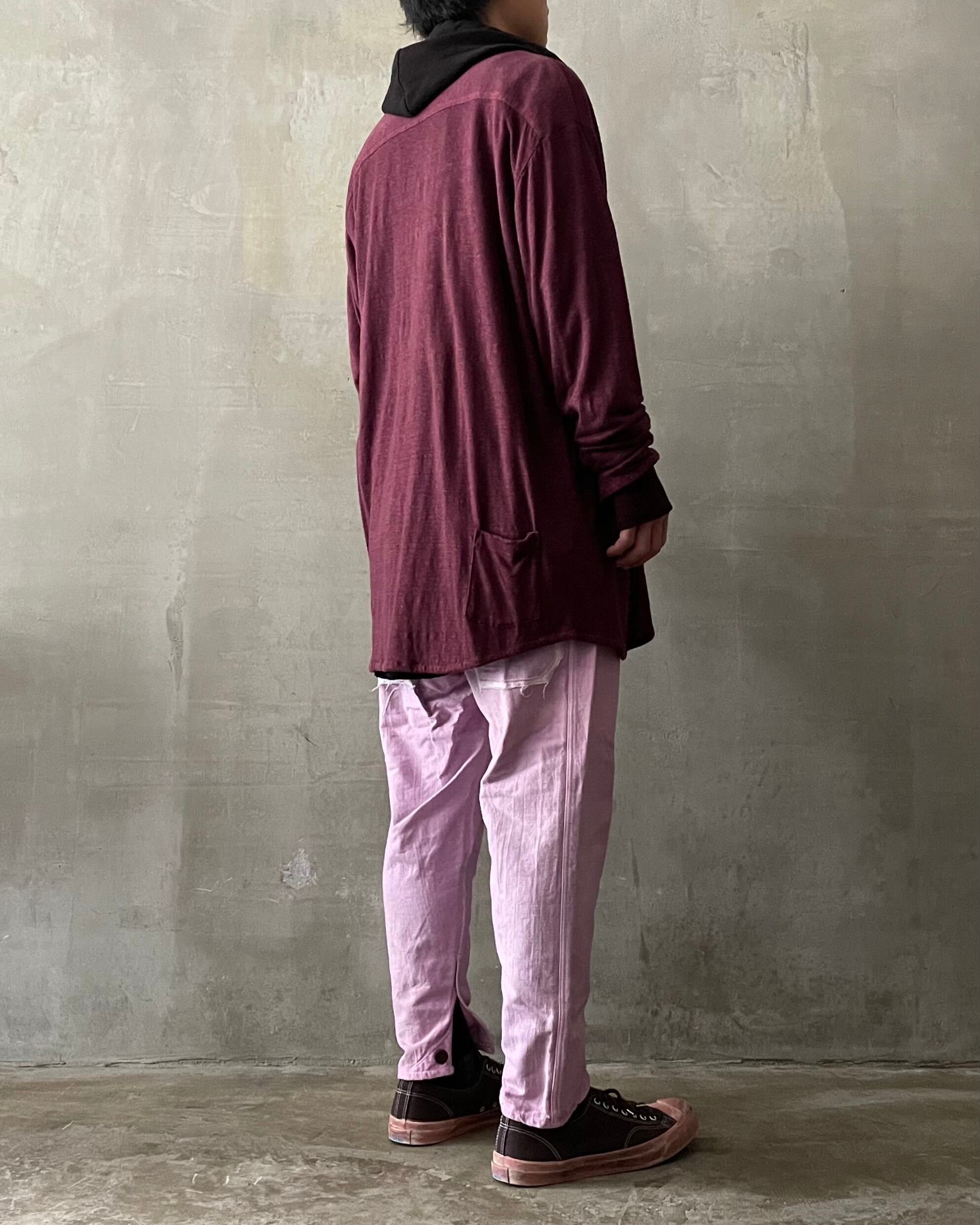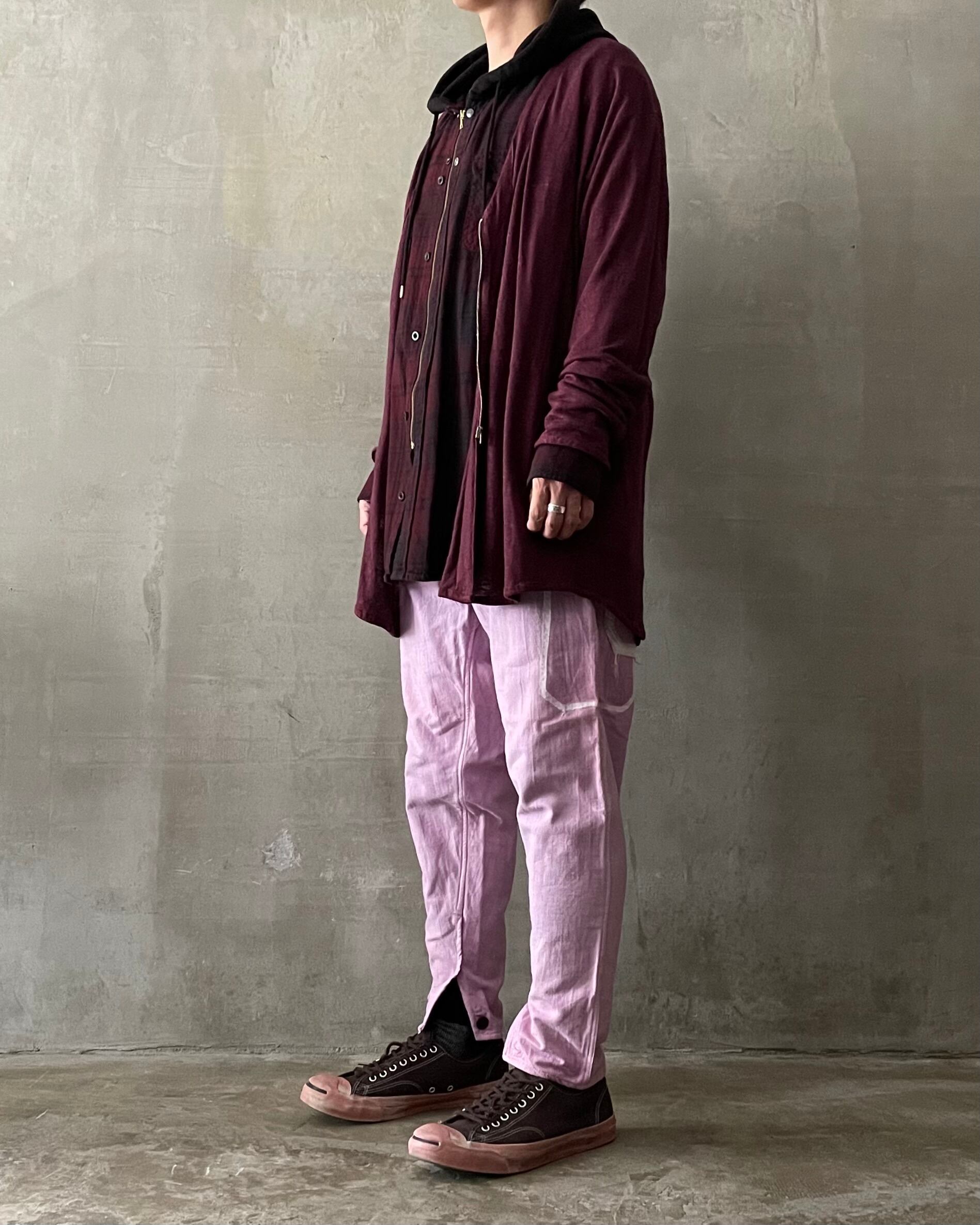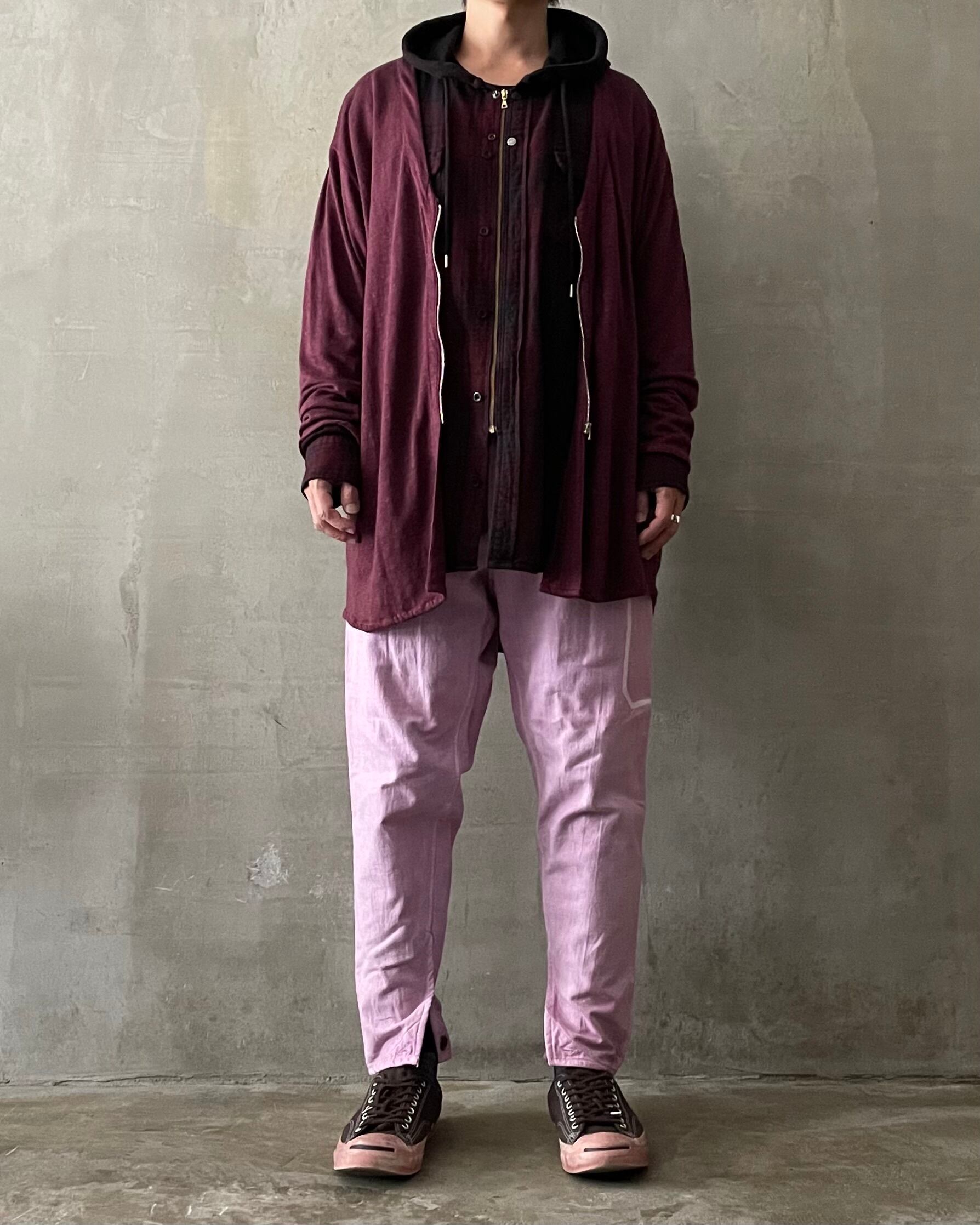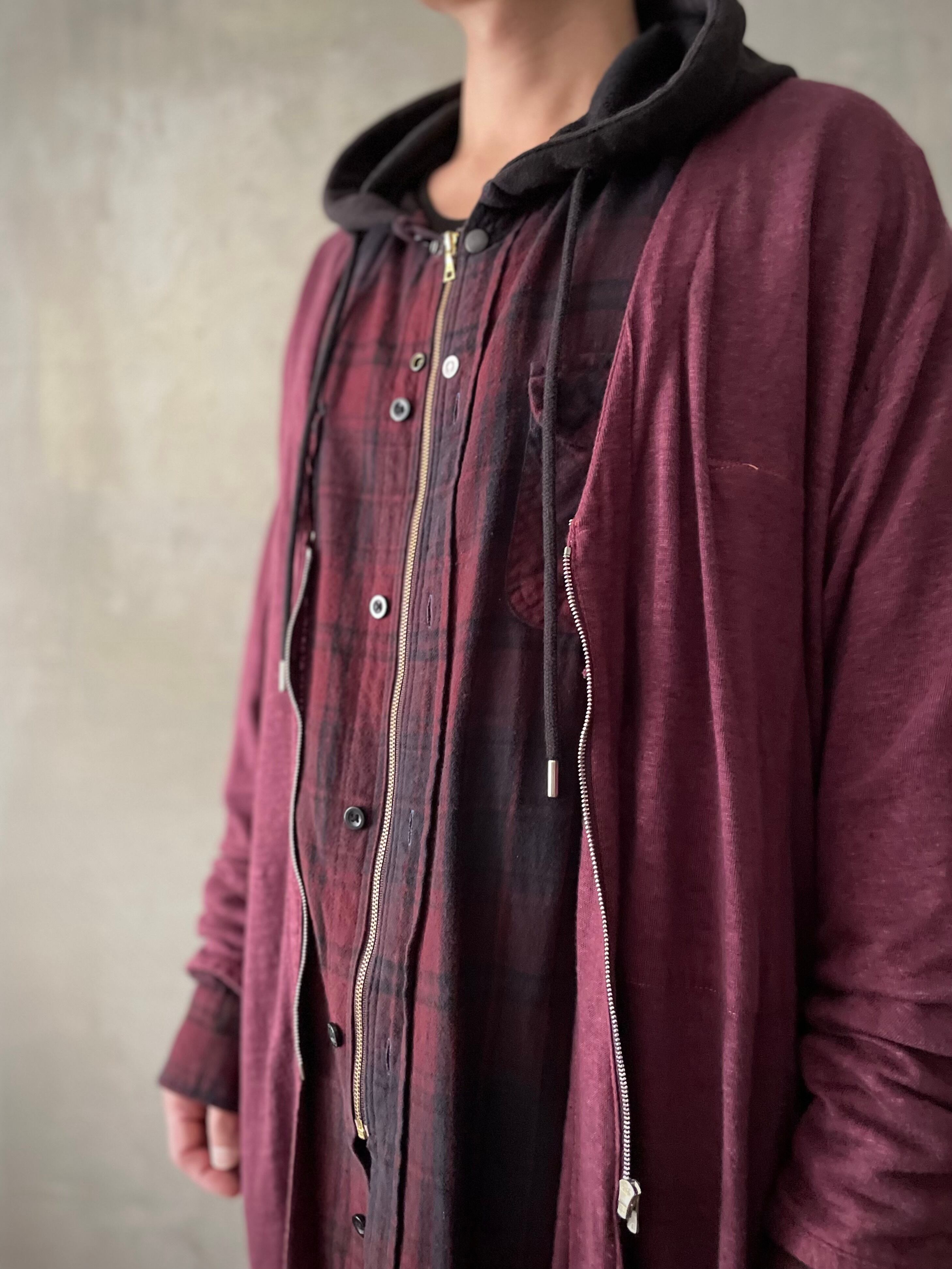 TrAnsference front zip hooded flannel check shirt - dark plum garment dyed effect